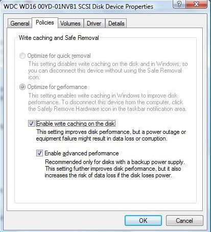 It's that second checkbox: "Enable Advanced Performance"--if I get to the HD properties any other way I either see that checkbox grayed out, or just not there at all. What I did was to check that box, reboot, and...my HD performance got better. I've been running several hours across multiple games that were choppy like a bad HD would be, and I'm pleased to say the problem's stopped.