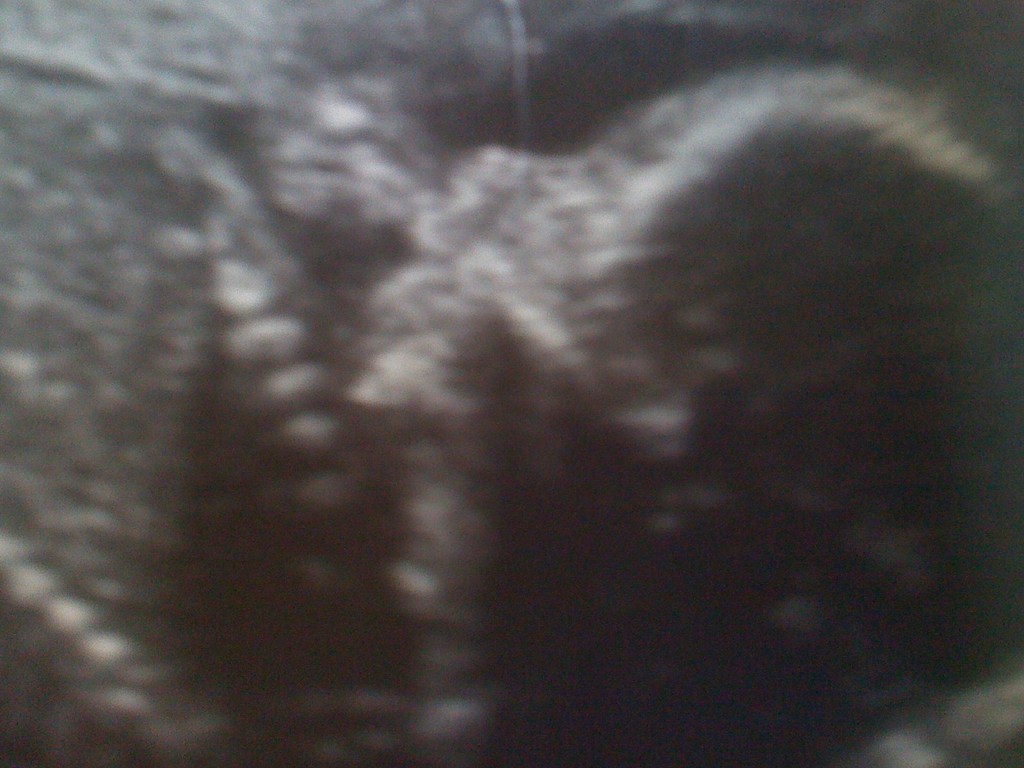 Heres ya one to freak ya out vinia. just went to the doc the 28th to find out Im having a boy, and this is one of its head lol. (I wont show the "its a boy" one >_>It always freaks me out cuz they dont look human lol. I'll post one when Im 'bout due and I get my 3-D ultrasound. Now THAT is scarey!!