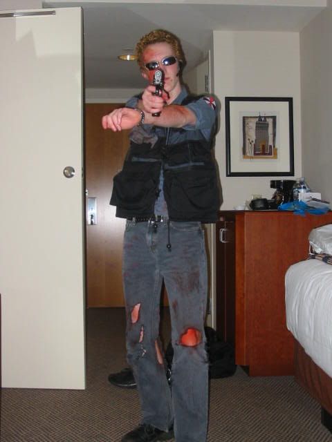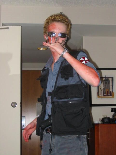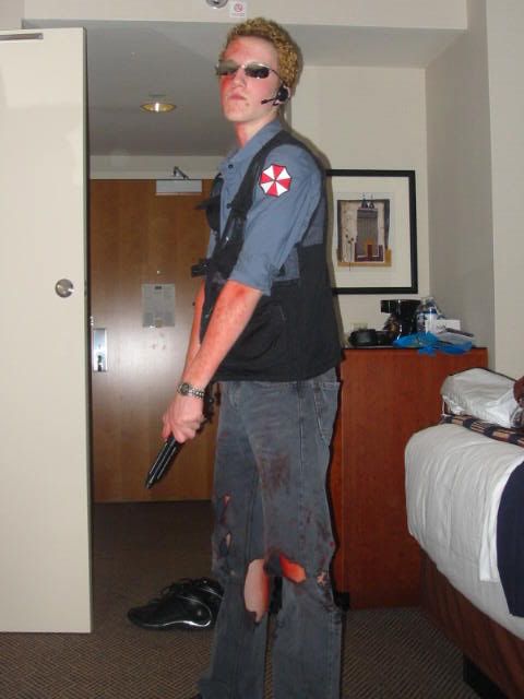 -And now any of you who know the series are complaining about the Umbrella insignia on my sleeve instead of the S.T.A.R.S. one. You'll notice that the only part of the costume that remains clean...ish is the area around that sleeve, symbolizing the fact that a corporation such as Umbrella can go through an incident such as that in Raccoon City and keep its hands clean. Anyway, more pictures eventually.