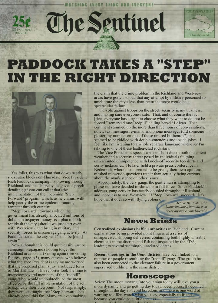 (That last one was not used, unfortuantely.) So, yeah...thoughts, comments? (I know about the grammatical error in the newspaper.)