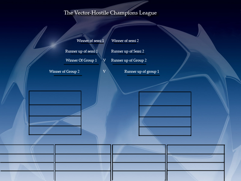 OK. So after finally getting this POS banner sorted out just to give a vague idea of how this will work...i can get round to posting and see who would all be intrested in Entering. The basis behind this...myself and da6onet had been discussing how best of 3 doesn't quite certify who is the best in cr2...i had been planning on hosting another tournament anyways so this opertunity presented itself..i had talked of hosting along side Da6, however our own ideas on setup have differences so i've decided to go ahead with my own one. However i wish da6 all the best when he gets to putting his together. So lets get to it...what im planning on is...a format somewhat similar to the Champions League of football.