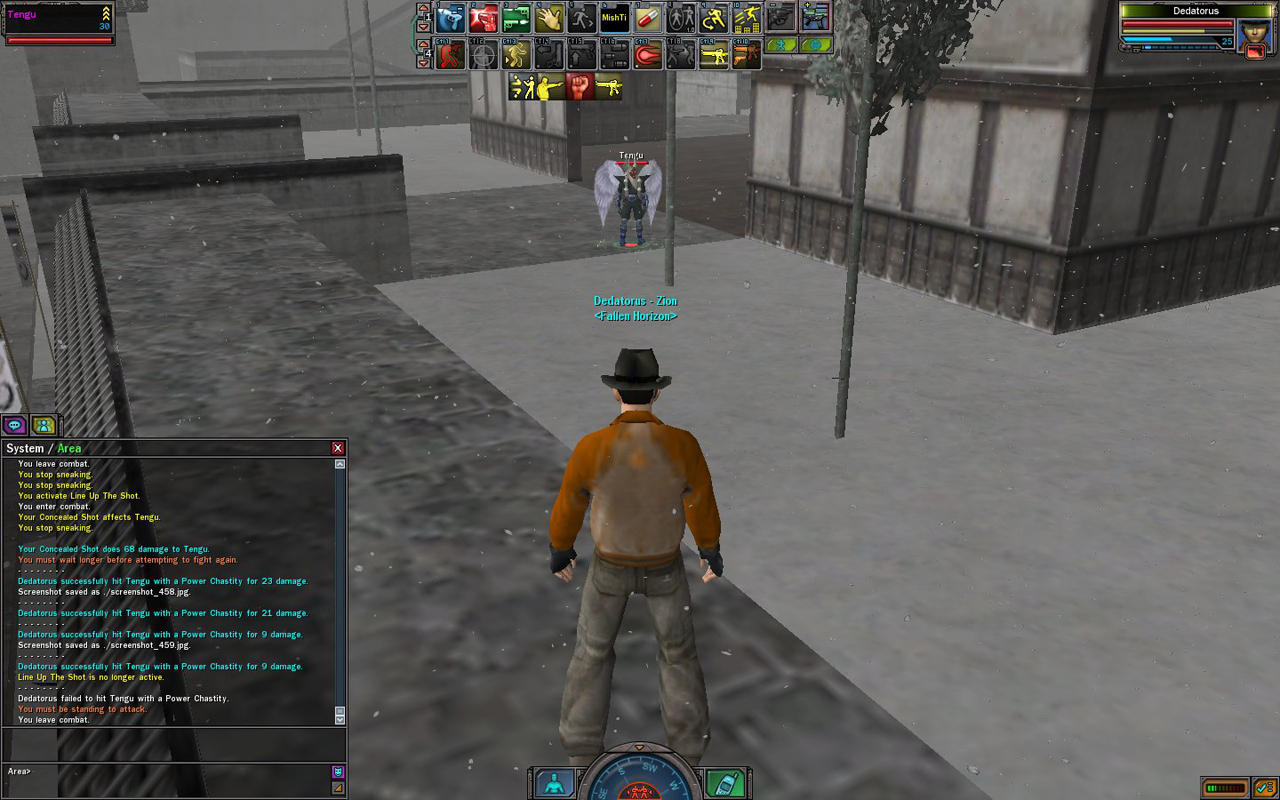 I have noticed that already month ago on another character but now that I hit 25 on Recursion I thought I'd pay Tengu a little visit, where I encountered that bug again. Situation: Load = Sniper (conceal, Concealed Shot, Line Up the Shot) + Pistols (Pistol Aerial, Pistol Slide) Action: () ... Optional Action (Firearms skill + )Conceal + Line Up the Shot + Conceal Shot + Power Chastity attacks Outcome: Dramatically decreased damage output instead of dramatically increased one. Normal damage with (full) combo: 200-250 with Concealed shot and 70+ damage with power Chastity Bugged damage with (full) combo: 30-70 with Concealed shot and 8-25 damage with power Chastity Normal damage with power Chastity: 25-40 damage The bugged damage returns to normal after Line up the Shot is gone. Evidence in photo (full combo):  I should have reported this month ago, really -_-