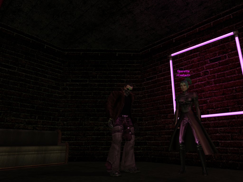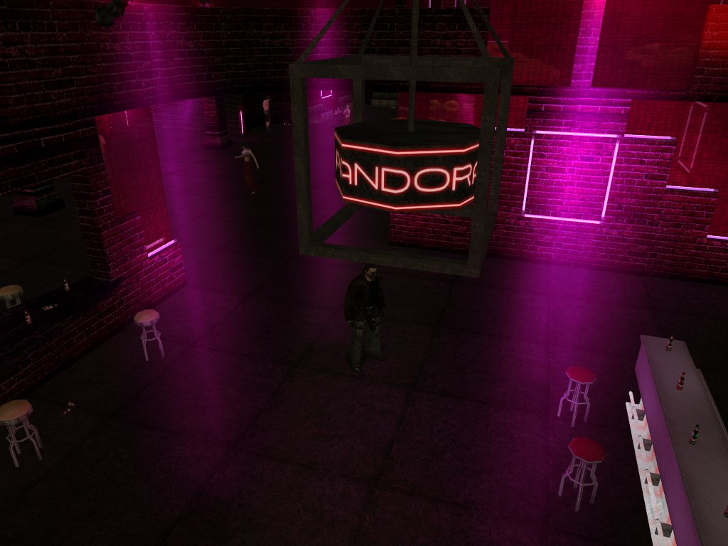 I had one last location to hit...Club Pandora. I was to meet someone here; a contact. Maybe she wouldknow a name or a location, at least that's what she said on the phone. She had been in the business for some time, running music-deals in Akasaka, and she was neutral to The Truce...this was right up my alley. I wouldn't have to worry about Zion's barging in on this...this self-proclaimed police force, heh... couldn't even hold the last Sleepwalker behind bars much less me if the deal came to it. The Club was quiet for a Sunday, guess the pillheads were out cold. Then I saw her standing in a little alcove waiting for me...guess I was late...it all comes down to timing doesn't it? *CENSORED*! My contact knows many faces and everyone in Club Pandora knows her. I presented her with the story about the Code-Spirits and she crept up the corner like The Assassin himself was coming for her. I calmed her down and eventually she told me of some creepy guy that would seem like he was not himself at all, like he was being controlled in a way. He's known street handle was Esarhaddon, and it seems he is the one calling the shots in International; at least I now got a name...3s4rh4dd0n. Time to head out...to Hell...for all it's worth.