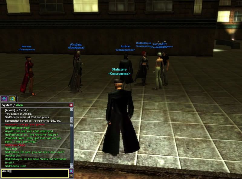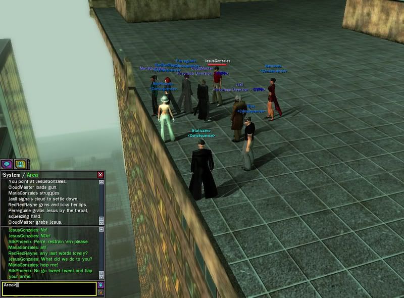 One thing that has occurred to me, due to the fact that I am a recent returnee to the game is how this event would look to new players or Merovingian Operatives who have only recently come aboard. Personally, while I think this was horribly handled event, I'm able to accept it for what it is. The thing is this, I've managed in my month back to level to thirty, and as such, I don't mind being the occasional CQ point for the sake of fun or rp. People have seen me flag up surrounded by 50's just for the pure fun of getting to take a shot now and again. BUT, again, were I a new player who had just come around, been made aware of a party via the forums, stood around for hours then been force-flagged and later mocked by the overwhelming number of pwnjoo machine players who were there, it would seriously make me consider where my money was being spent. New players are skeptical enough, things like this give them a reason to uninstall and cancel. I'm not trying to make that sound like a whine, it was just something that had occurred to me.
