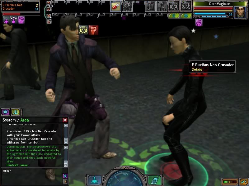 Earlier today four members including myself of a machinist faction raided a zion zombie party in mansen park. This is not bragging nor is it an invite for FLAMEBAIT. So don't do either. This is a discussion on wethor it is right or wrong to do this. I have played several MMO's including WoW, GuildWars, MuDs, and messed around with a few othes. In all of these Ninja Looting was seen as wrong. However unlike those worlds ((with the exception that I will get to in a second)), The Matrix Online exists in a contest state of war ((especially on this servor)) and we are not supposed to be chummy chum's with the other party. However your not my org or my faction and 99% of you have don't seem to mind taken pot shots at me during in an LET event ((and a lot of you anyother time)). So how does that change anything when its not an LET event. World of Warcraft, your enemies are clearly defined they look evil/good and you look the opposite. You attack them, and they attack you. There are incident's when they are 40 lvls below you and you just don't touch them and there are raid's where anything and EVERYTHING is for grabs. Discuss. Respectully FengShou/DarkMagician