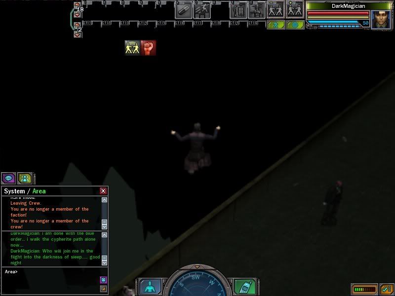Well I am almoast done lvling my character on vector. FengShou. I wanted to say thanks to following people and factions for helping me out. Iamthesuperbeast- For being the first person to gank me for no good reason and being the first on my to do/ignore list ReviledRestoration-Good people and good friends. Even for evil cypherites. *hides the mask* Infamous/Carebears- These are my people. Helped me out from the get go and most of them have made their 50 prescence felt. Hopefully I can do as good as they did. LiquidHyuzu- Faction that is helping me out now and who I am trying to do what I can. AngelOfVeritas- My friend, nothing more needs to be said. Thanks. I would give you my to do list. But since that includes everyone from genevieve to campusqueen.....It is gonna take a while to clear out. Feng