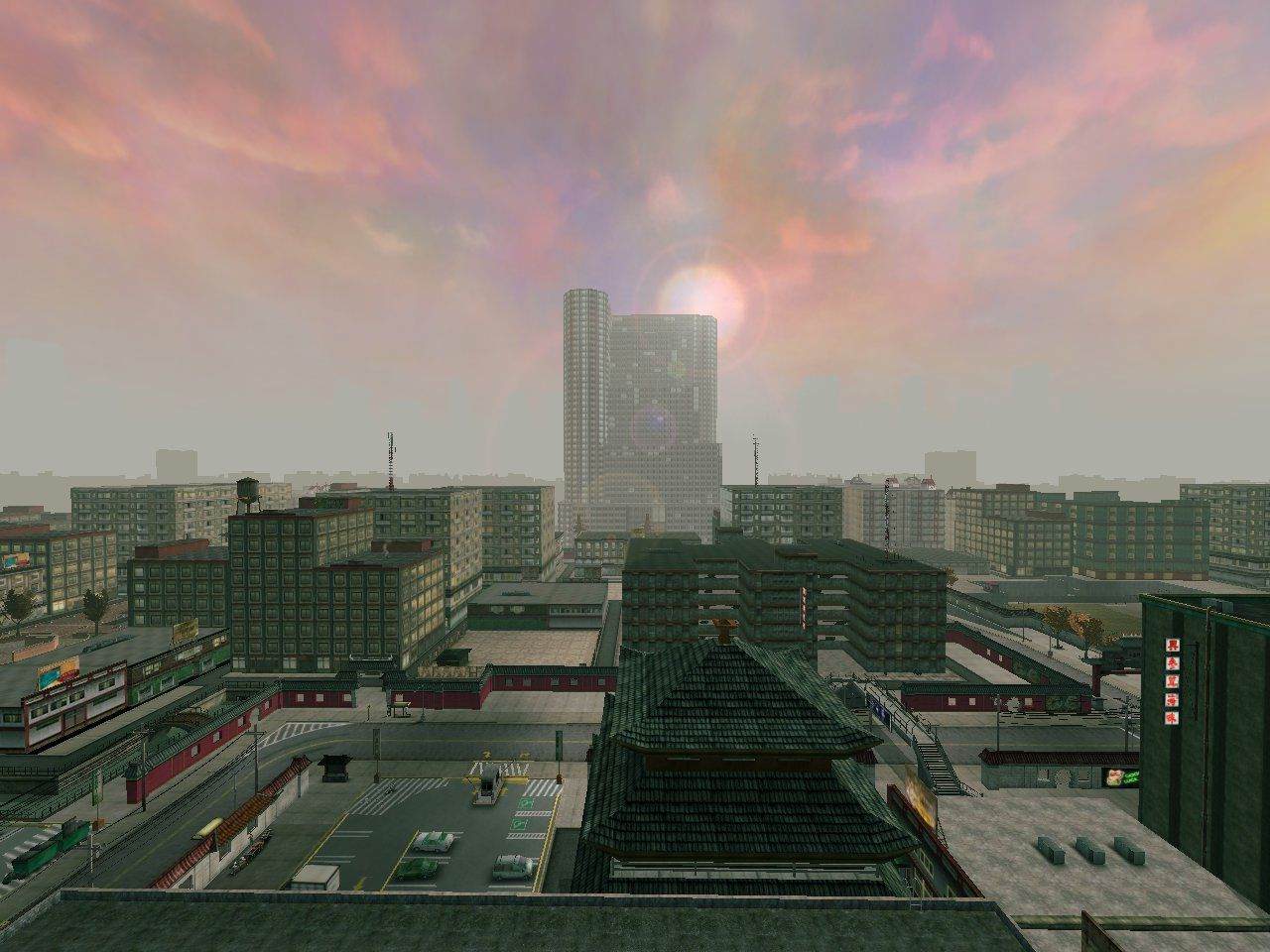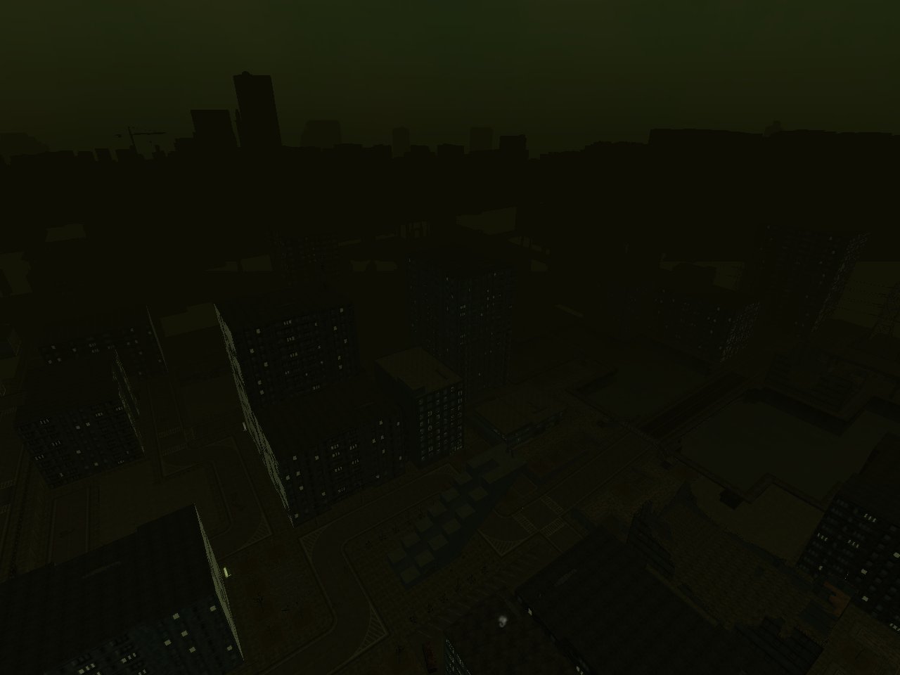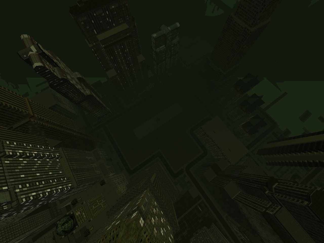 Intro: The bar for art derived from screenshots has been raised by Aquatium with his motion captures and by the other fantastic sigs and graphics posted lately. We've seen a lot of character action and street-level scenes, so in an effort to broaden the horizons and rise above the commonplace, I've taken to the skies of the Megacity to bring you some cityscapes and skylines. I hope you like them, as there are more in the works and your comments are most welcome. If you have a favorite tourist attraction in the city, point it out to me and I'll get some birds' eye views.
