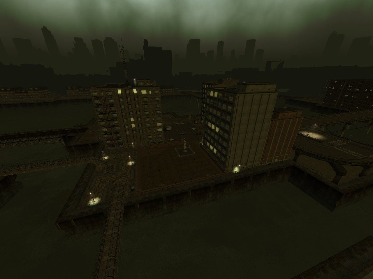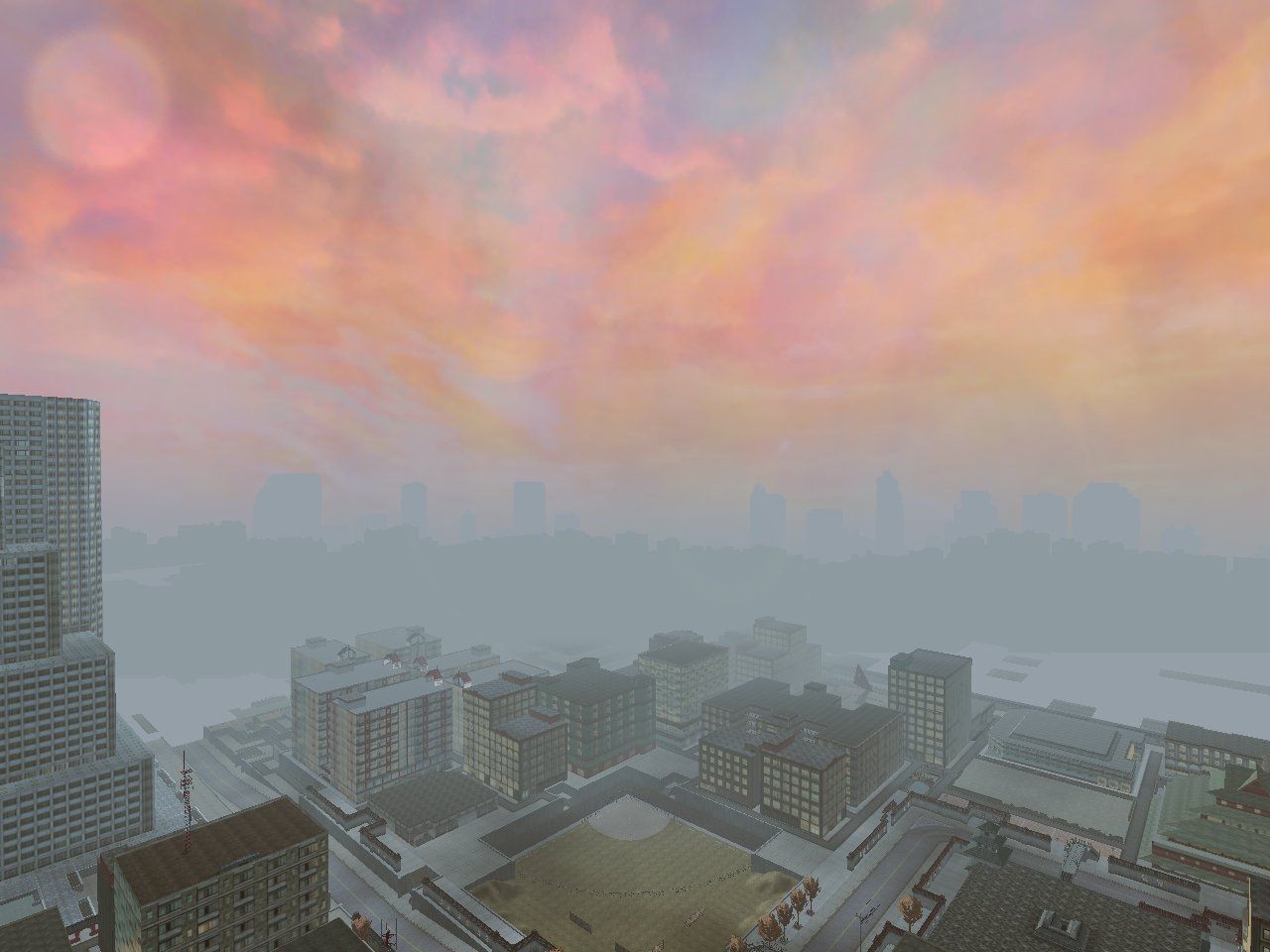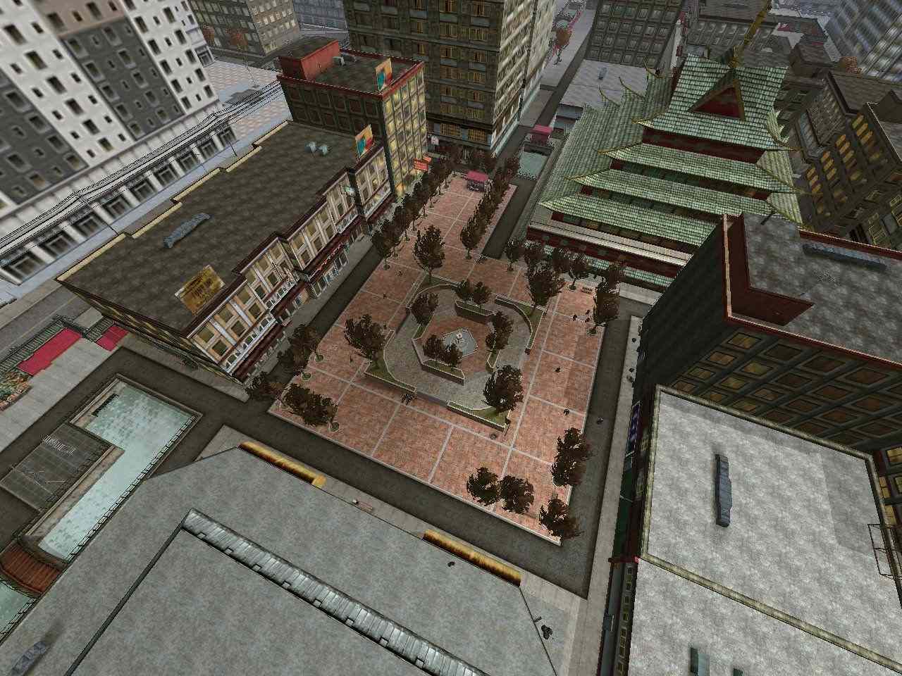 Intro: The bar for art derived from screenshots has been raised by Aquatium with his motion captures and by the other fantastic sigs and graphics posted lately. We've seen a lot of character action and street-level scenes, so in an effort to broaden the horizons and rise above the commonplace, I've taken to the skies of the Megacity to bring you some cityscapes and skylines. I hope you like them, as there are more in the works and your comments are most welcome. If you have a favorite tourist attraction in the city, point it out to me and I'll get some birds' eye views.
