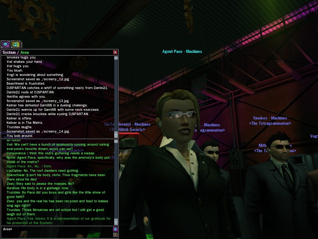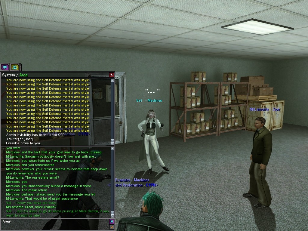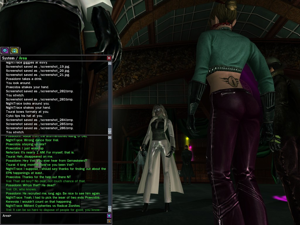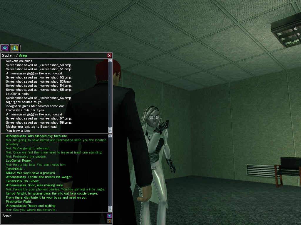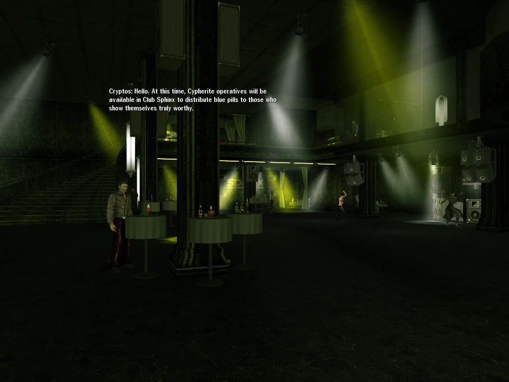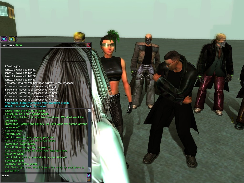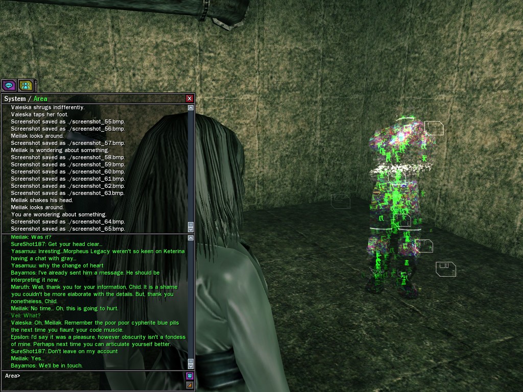 Those cheat codes Anome stole are bad news, dearies, so far be it from us to sit around while he and his cronies uncork who knows what kind of rude wake-up call on our dear old simulation. When our spy network reported an access by someone believed to have been one of Anome's pals, we jumped at the chance to get in on the action.
