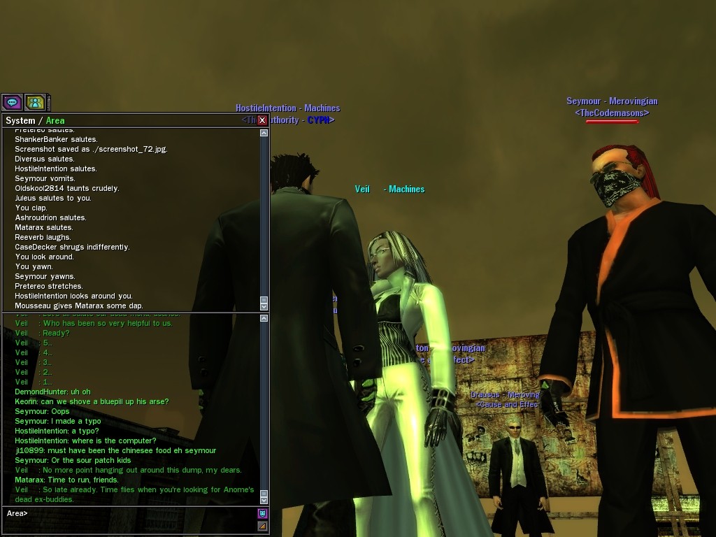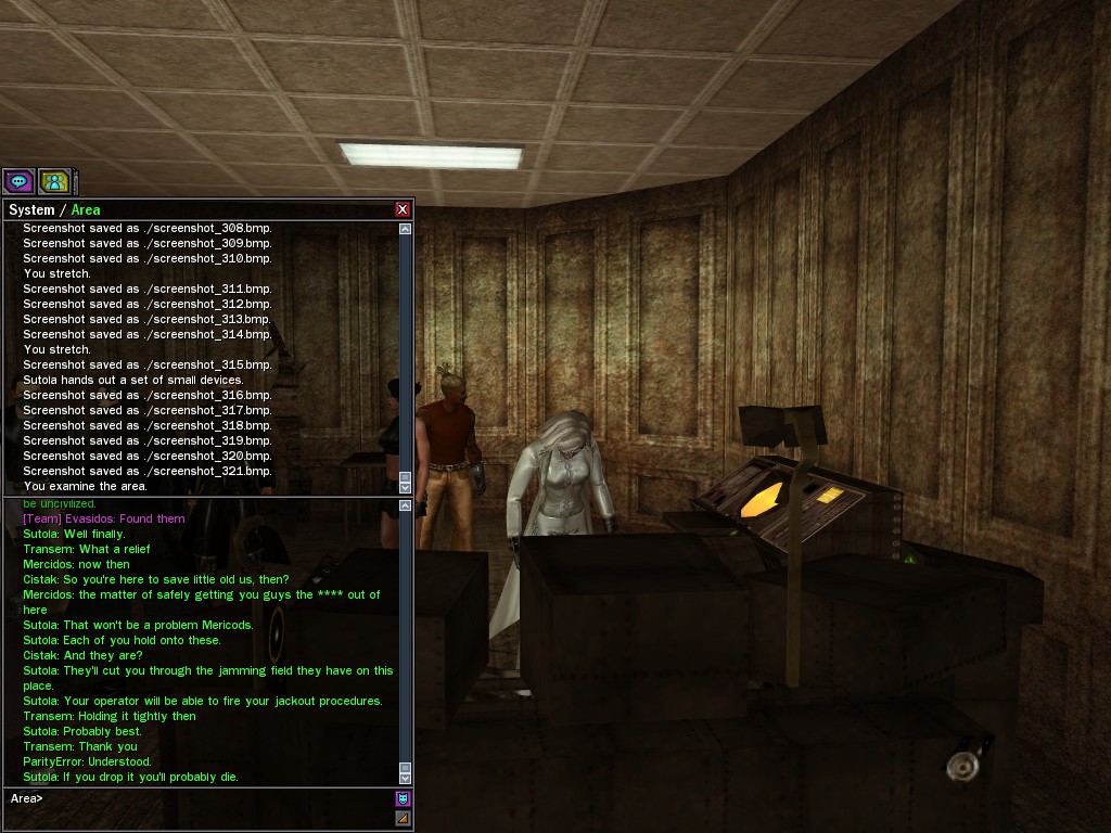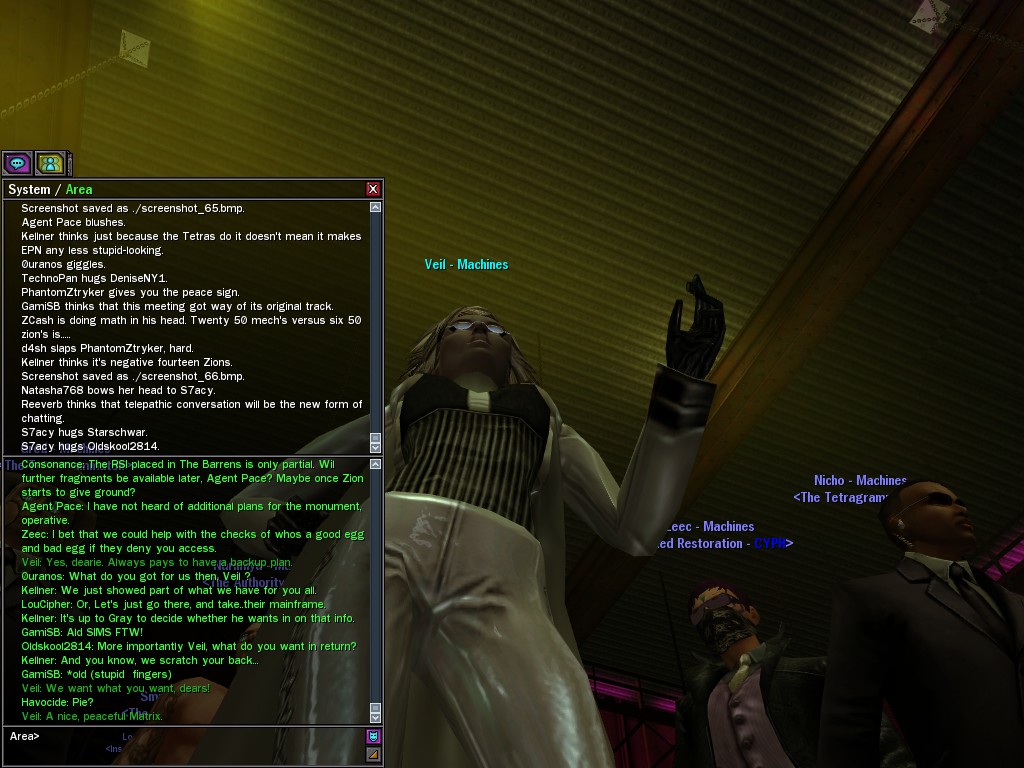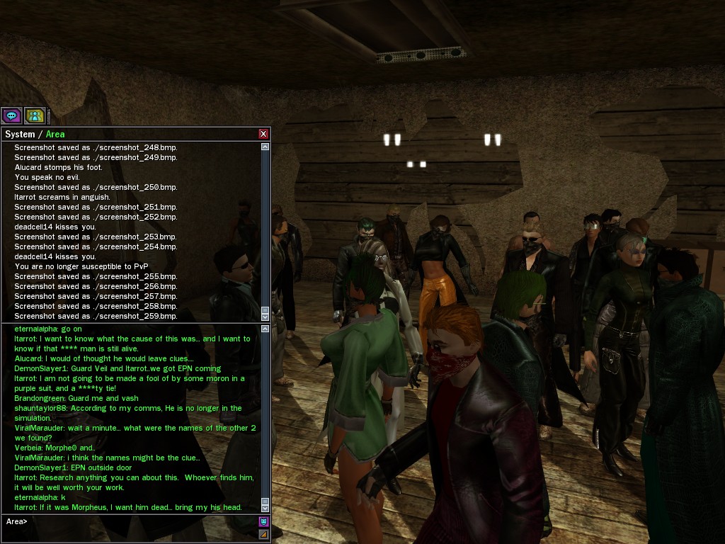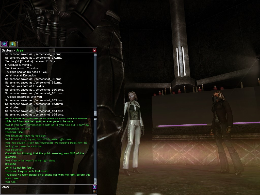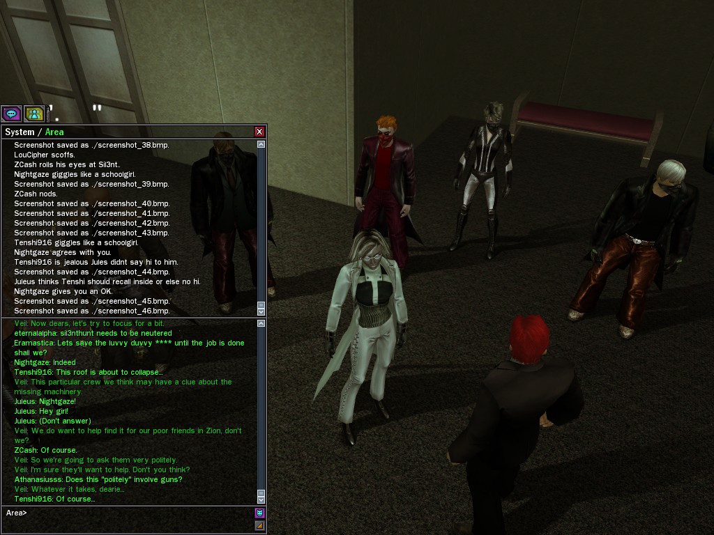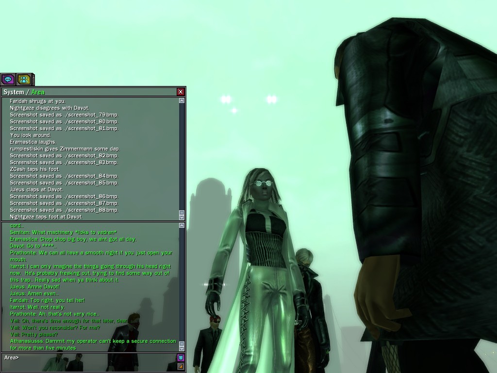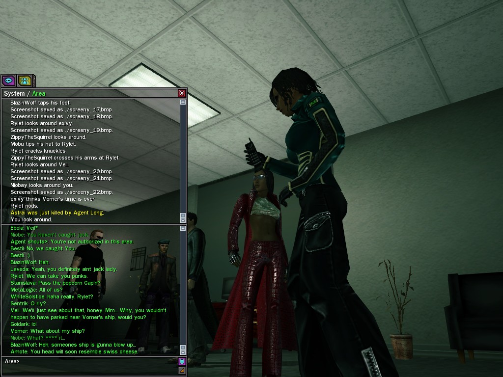 Those cheat codes Anome stole are bad news, dearies, so far be it from us to sit around while he and his cronies uncork who knows what kind of rude wake-up call on our dear old simulation. When our spy network reported an access by someone believed to have been one of Anome's pals, we jumped at the chance to get in on the action.