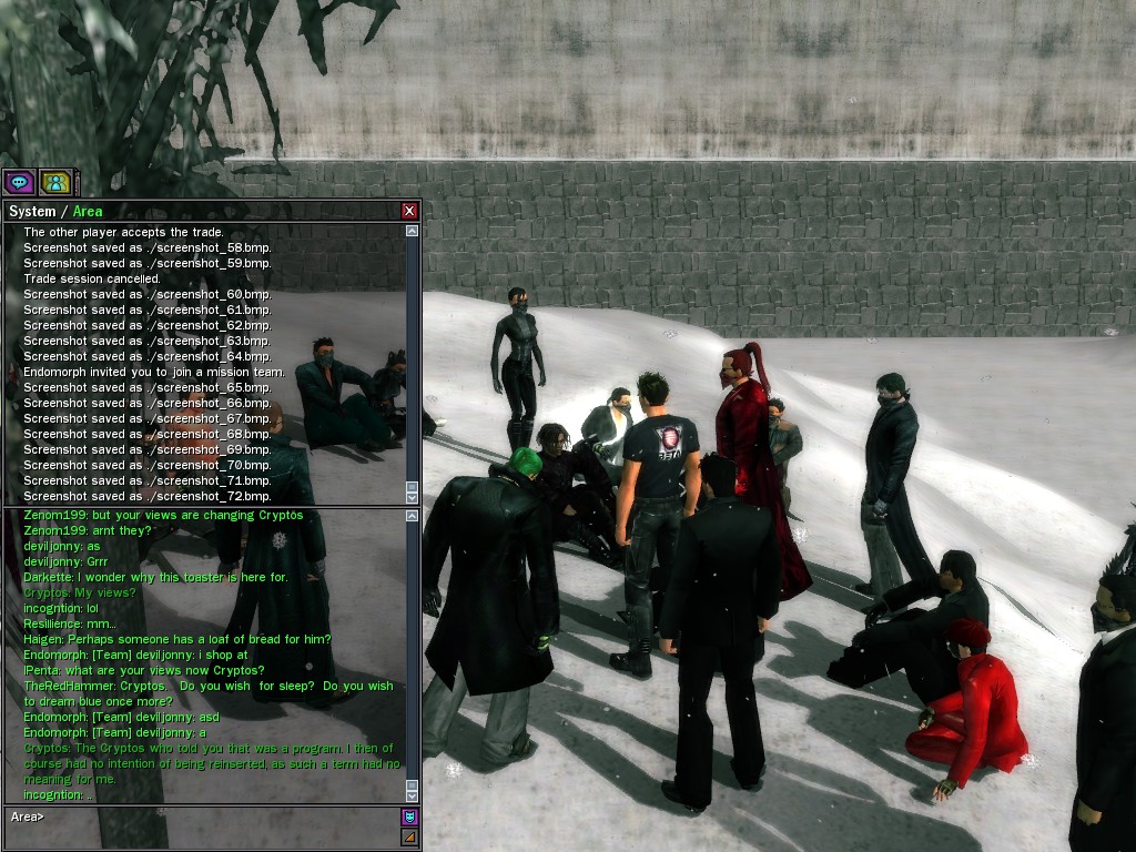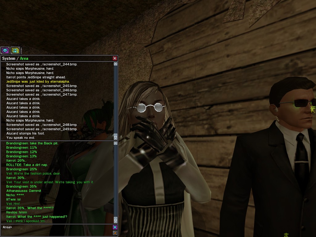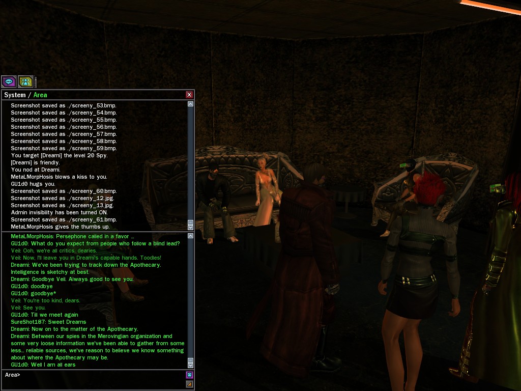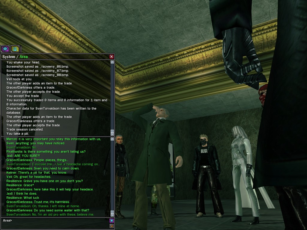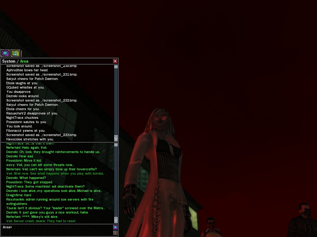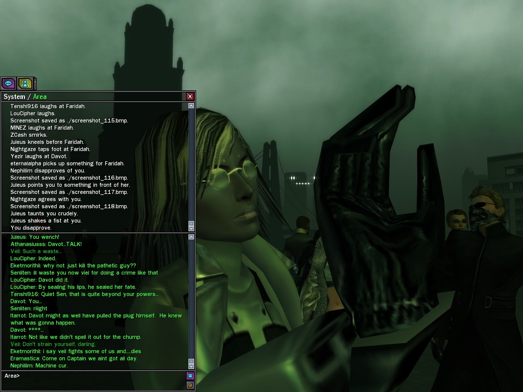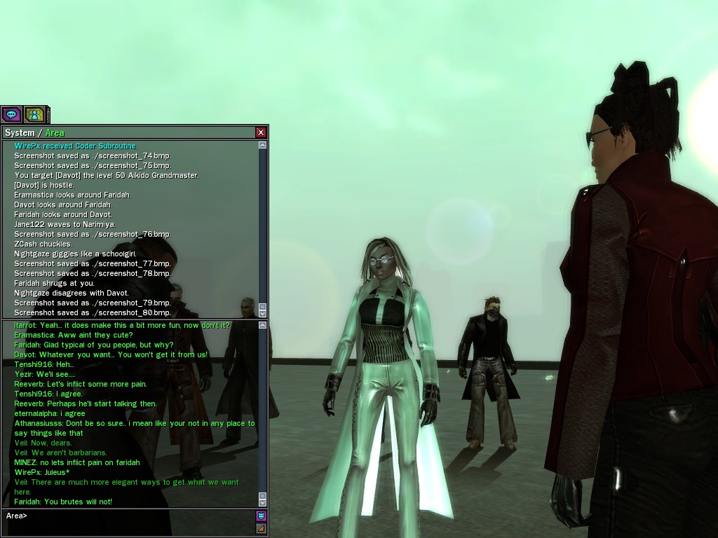 Those cheat codes Anome stole are bad news, dearies, so far be it from us to sit around while he and his cronies uncork who knows what kind of rude wake-up call on our dear old simulation. When our spy network reported an access by someone believed to have been one of Anome's pals, we jumped at the chance to get in on the action.