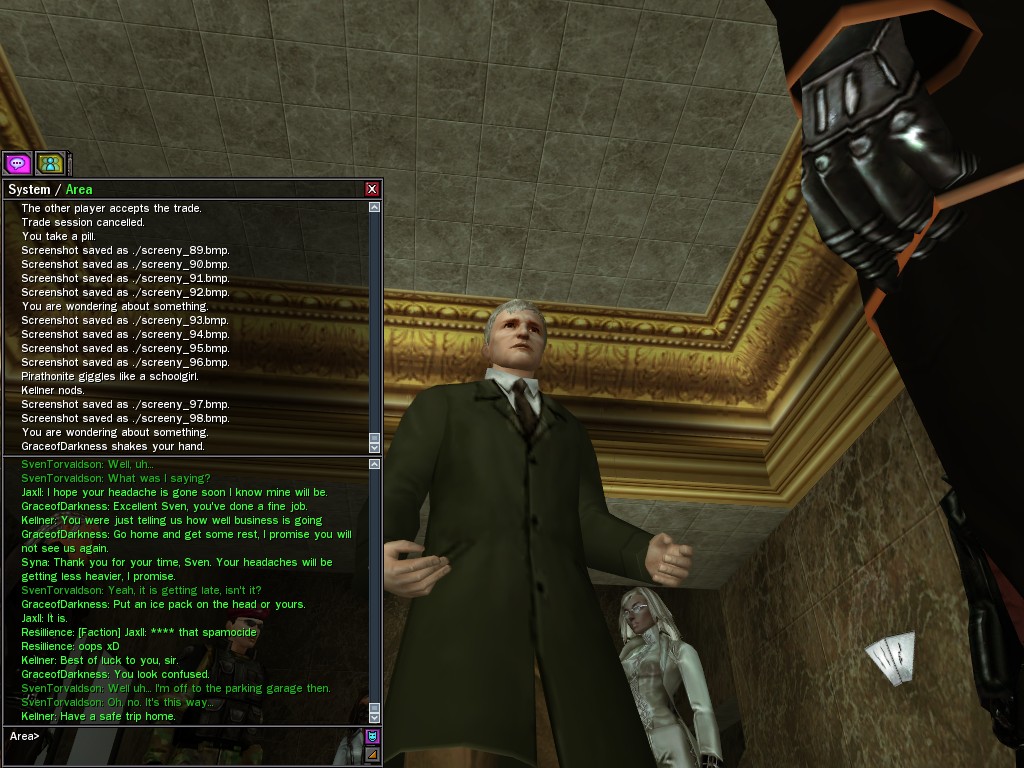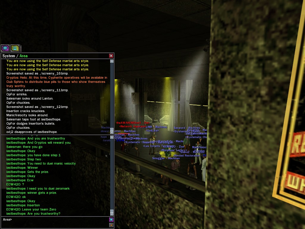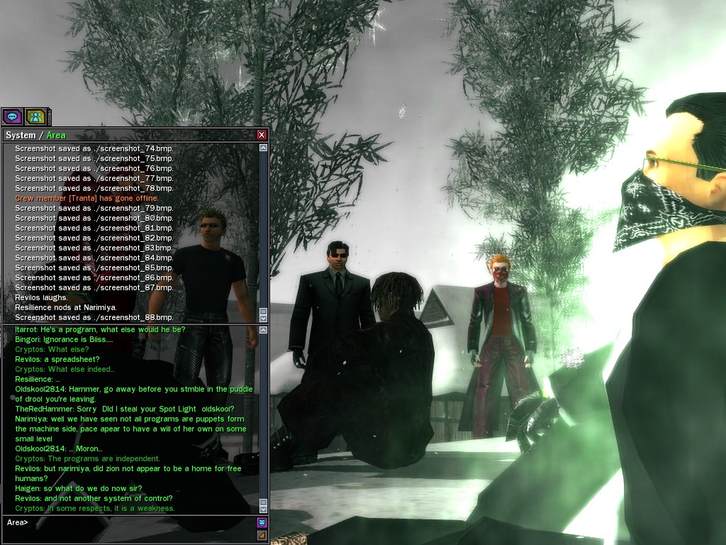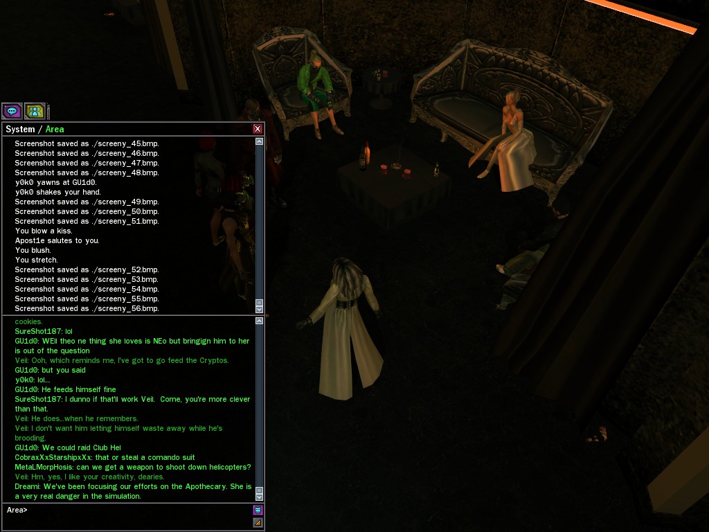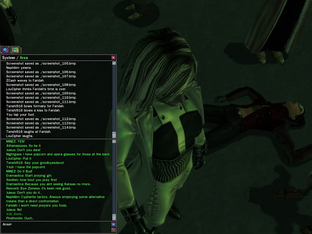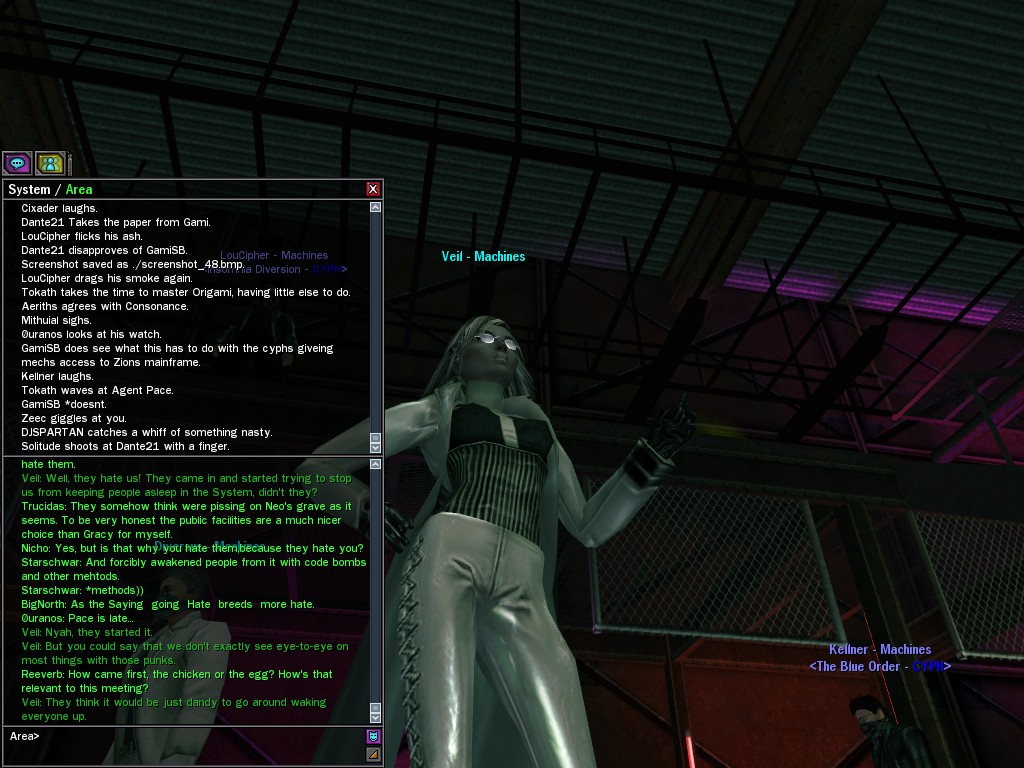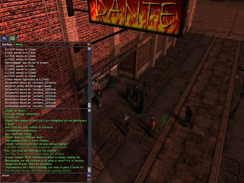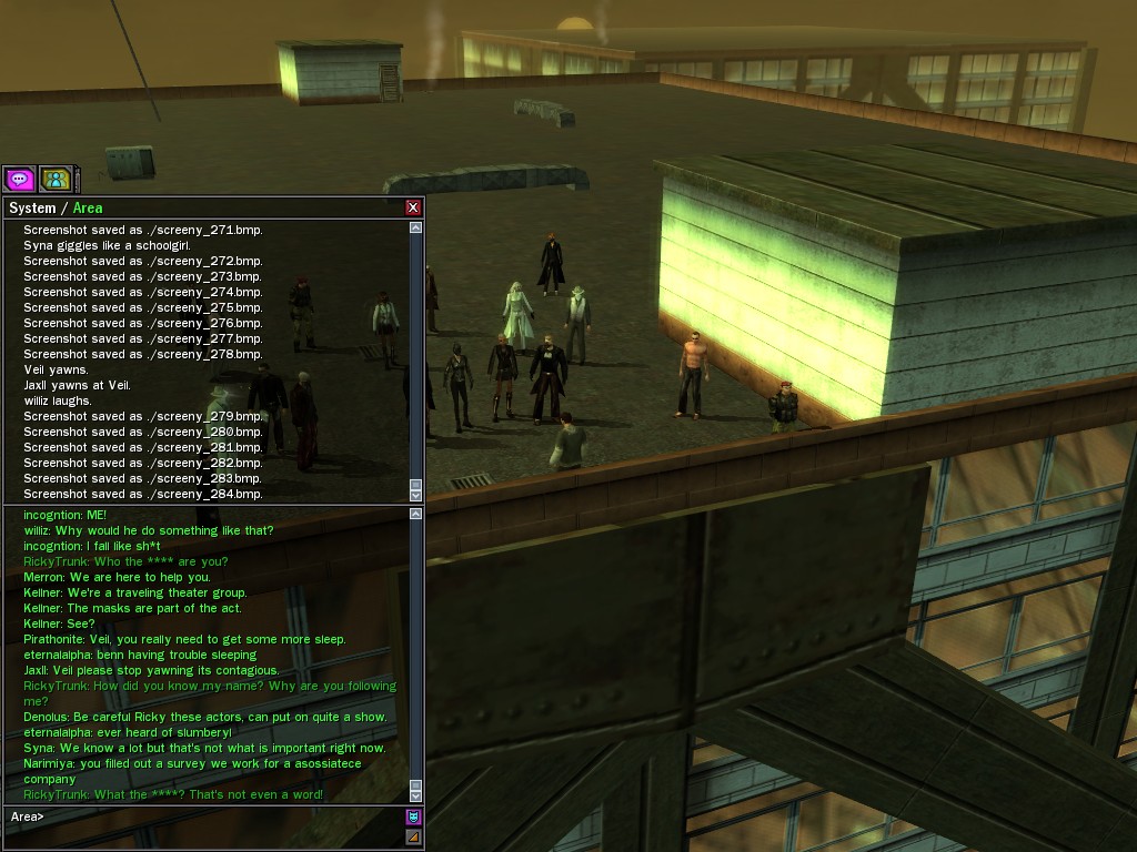 Those cheat codes Anome stole are bad news, dearies, so far be it from us to sit around while he and his cronies uncork who knows what kind of rude wake-up call on our dear old simulation. When our spy network reported an access by someone believed to have been one of Anome's pals, we jumped at the chance to get in on the action.