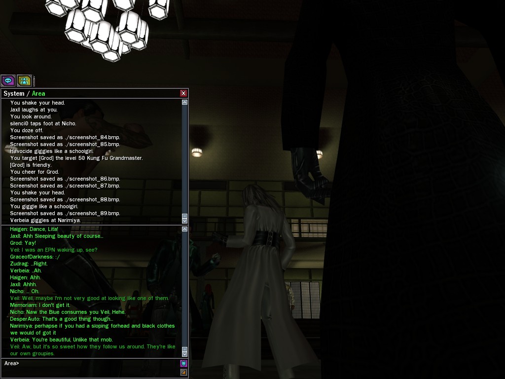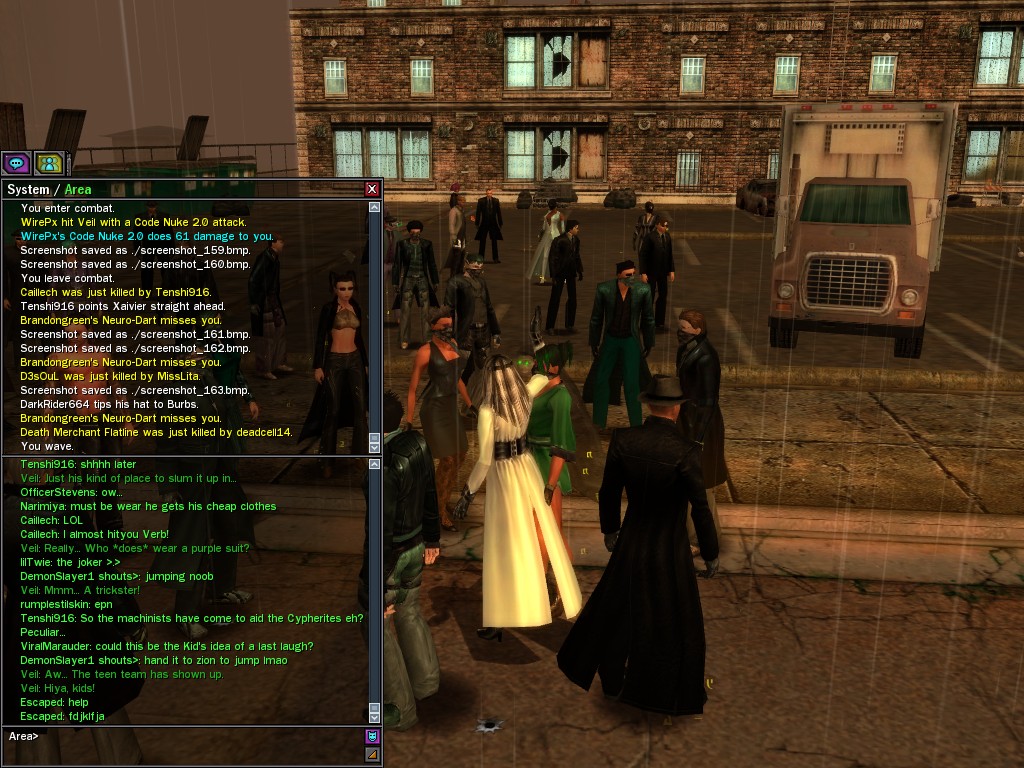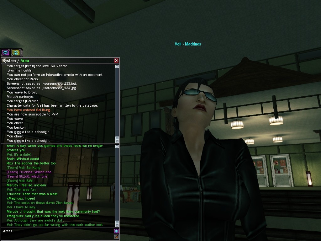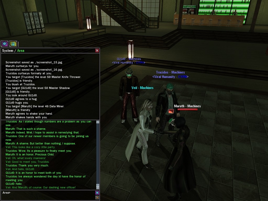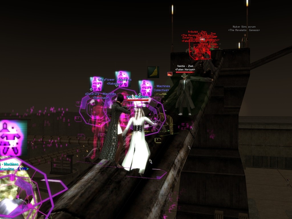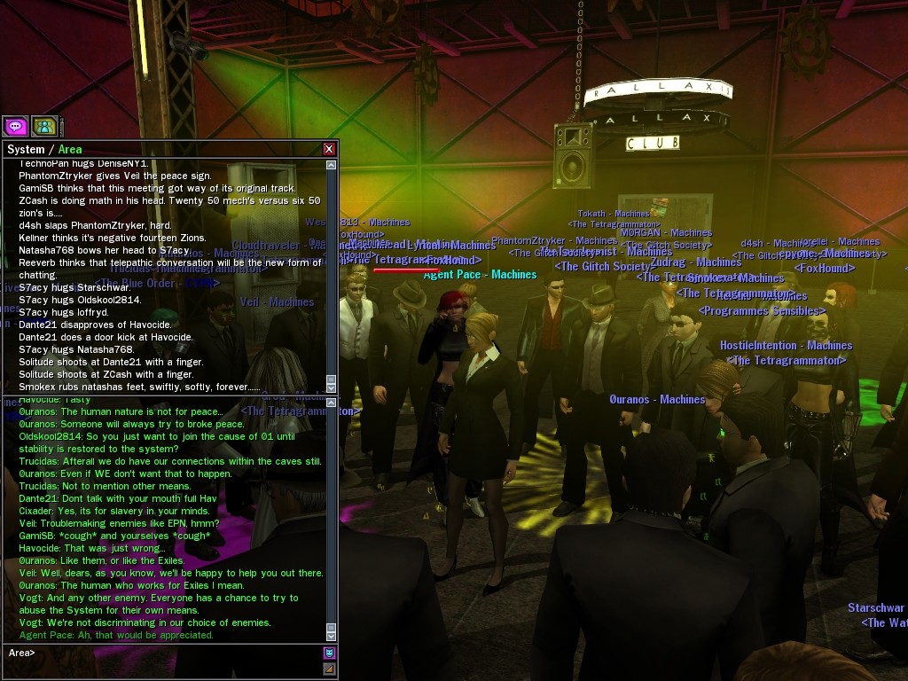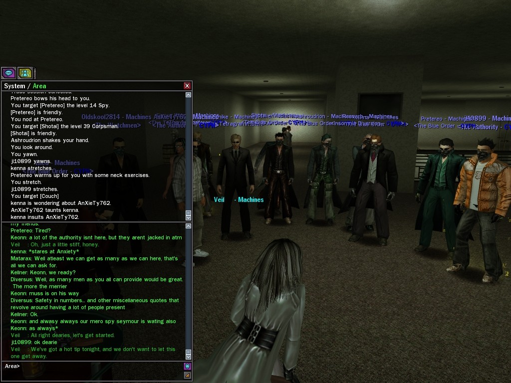 Well, dearies! A few of us were lucky enough to have a night out on the town with our new liaison officer, Maruth! And what a time we had, clearing those pesky EPNs off the public telephones! We just won't stand for this kind of disturbing the peace in our town, no sir! Some dull Zionites showed up, but we played a little joke on them to give them the slip. It was a close call, though--they almost bored us to death! Have fun with Maruth, sweeties! 'Til next time, xoxox Veil