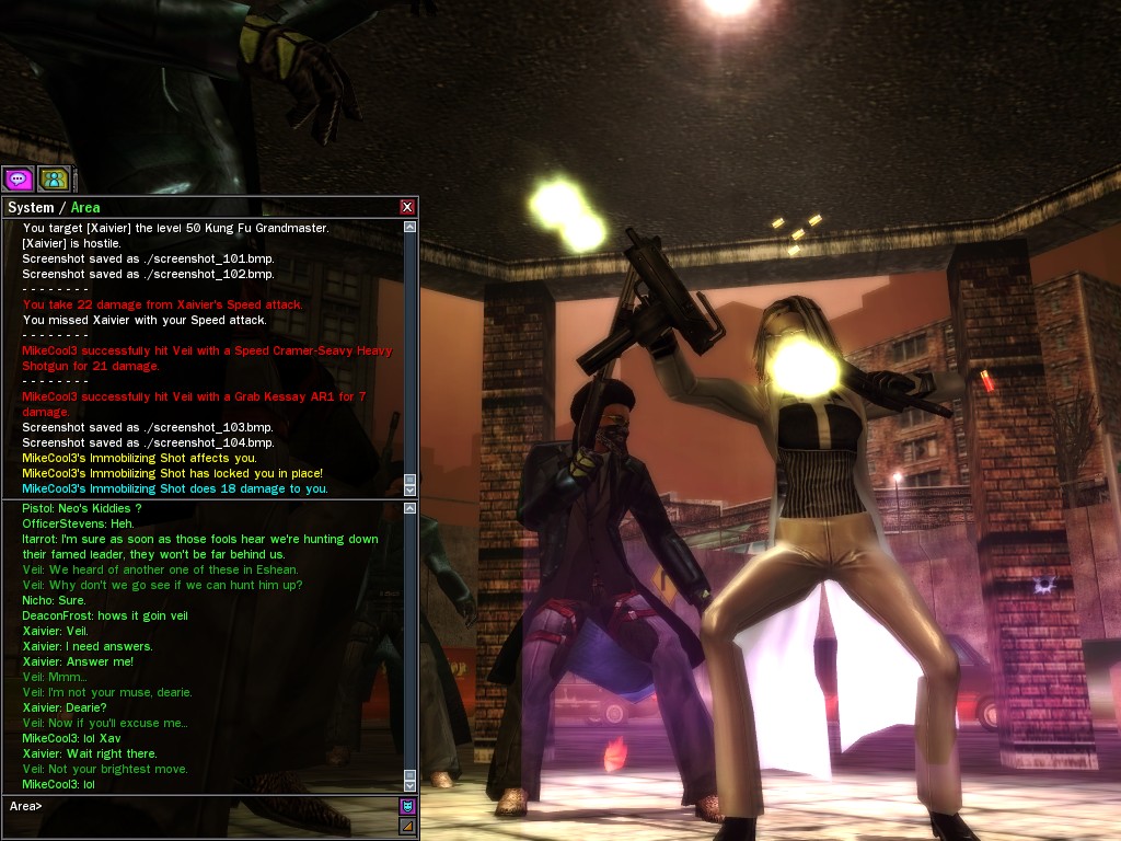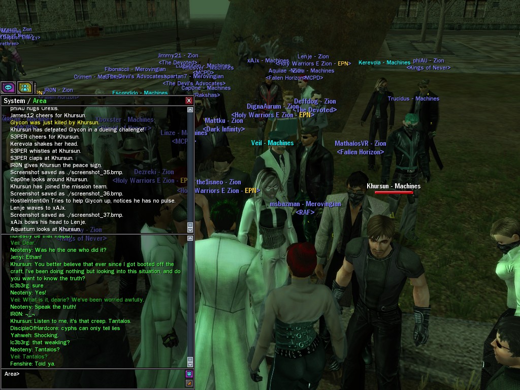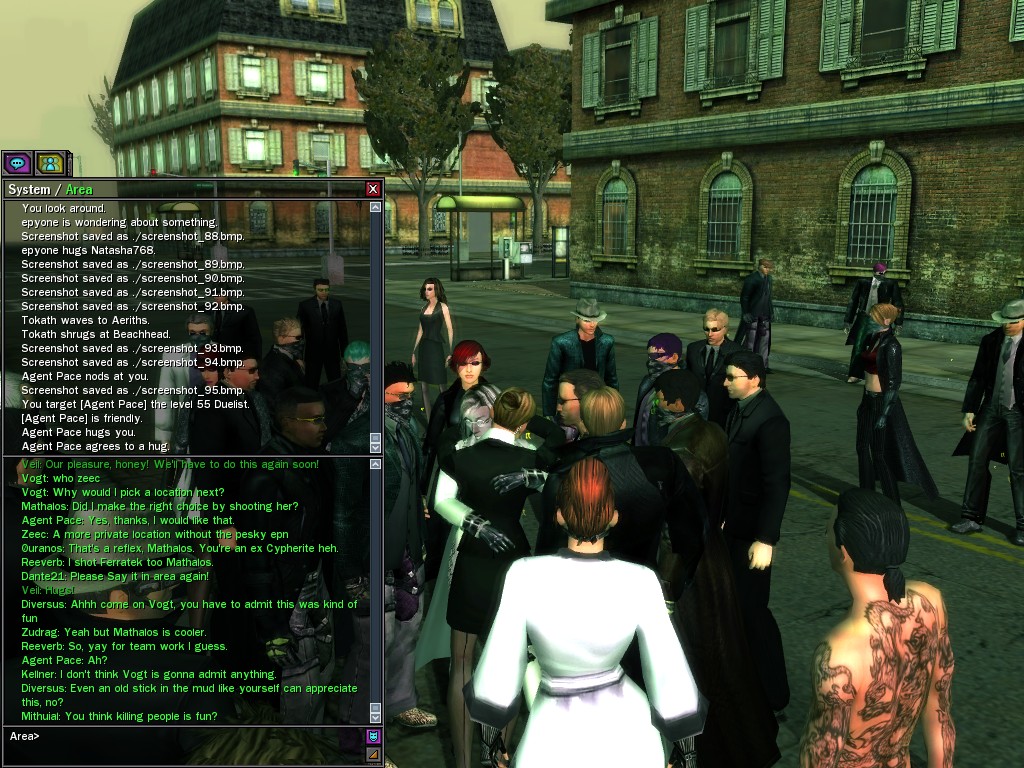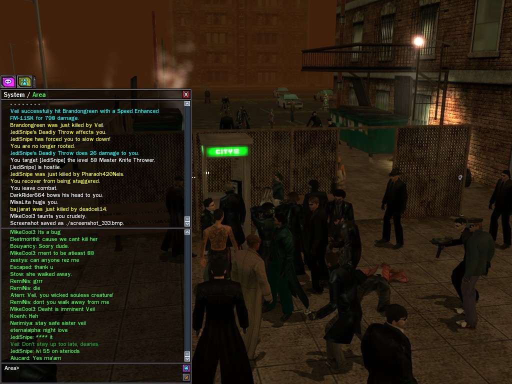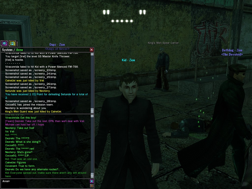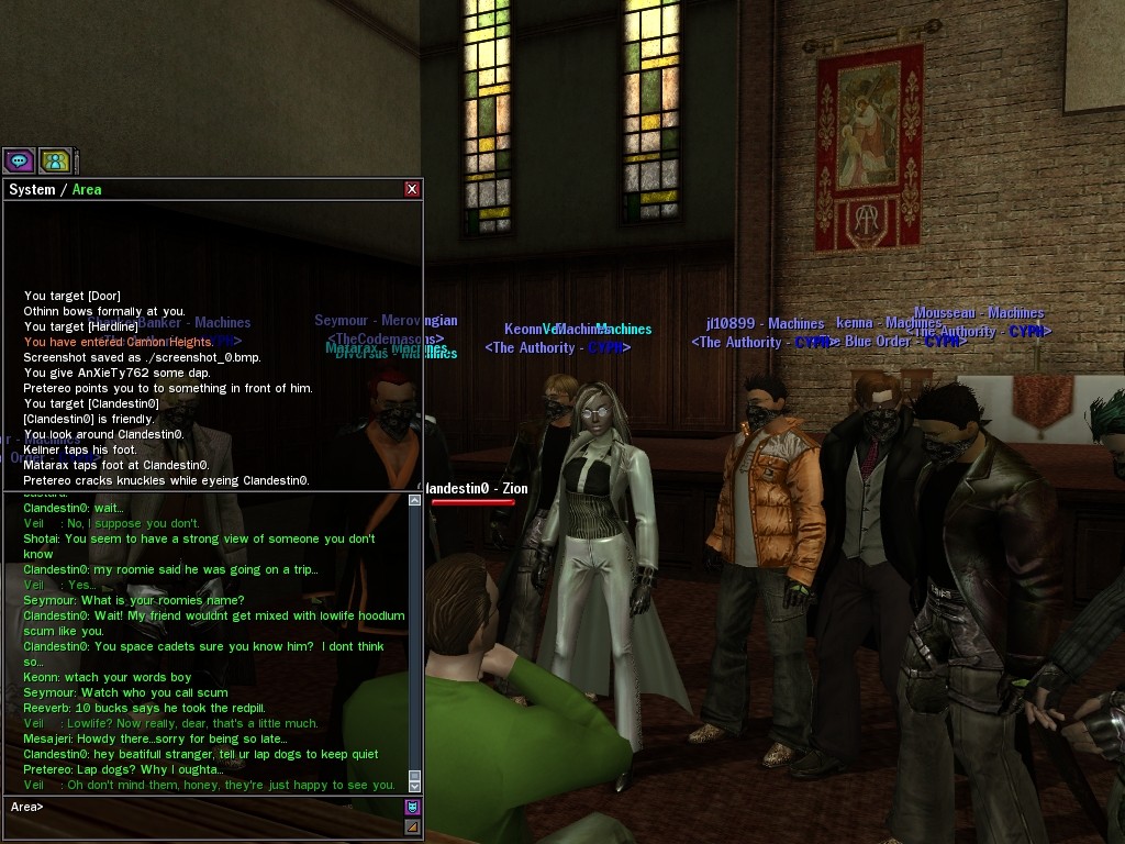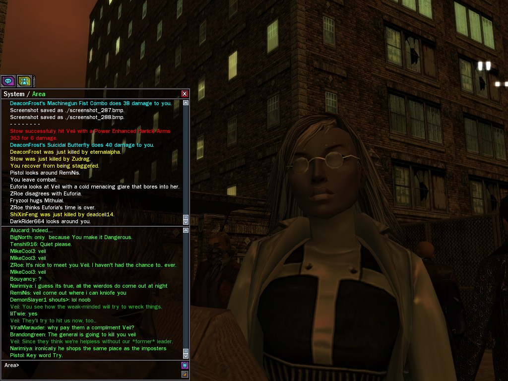 Well, dearies! A few of us were lucky enough to have a night out on the town with our new liaison officer, Maruth! And what a time we had, clearing those pesky EPNs off the public telephones! We just won't stand for this kind of disturbing the peace in our town, no sir! Some dull Zionites showed up, but we played a little joke on them to give them the slip. It was a close call, though--they almost bored us to death! Have fun with Maruth, sweeties! 'Til next time, xoxox Veil