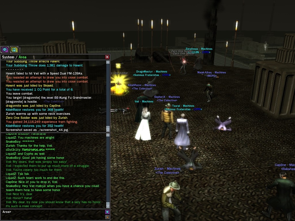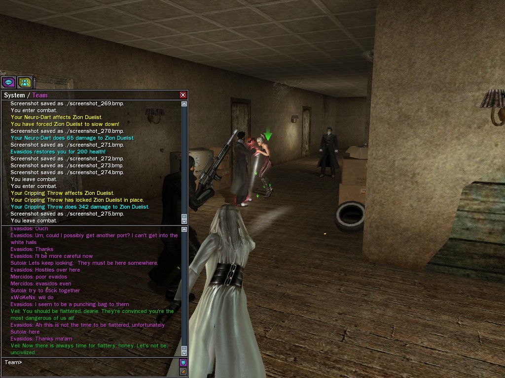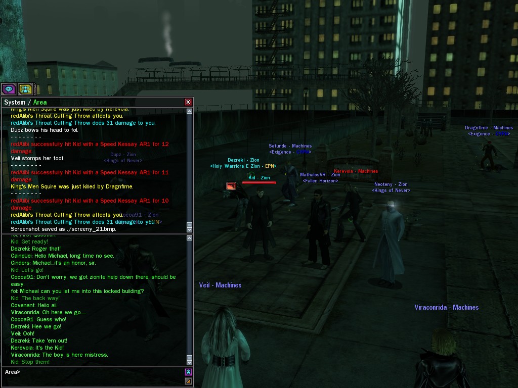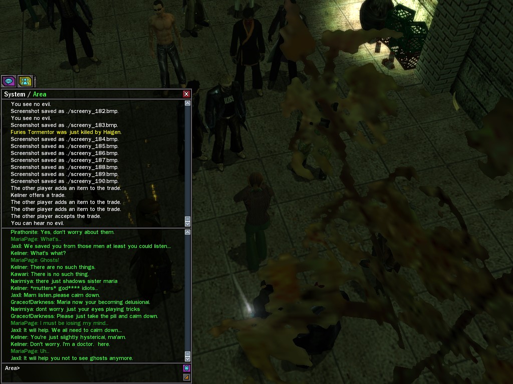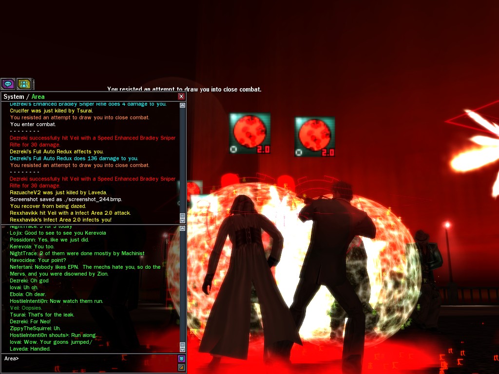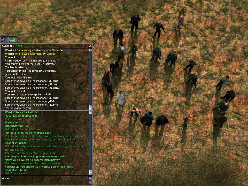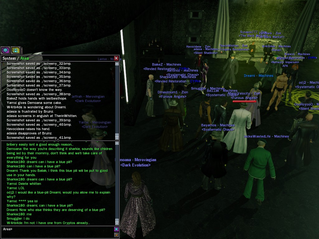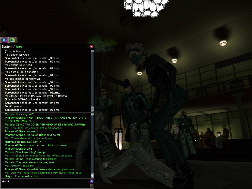 Well, dearies! A few of us were lucky enough to have a night out on the town with our new liaison officer, Maruth! And what a time we had, clearing those pesky EPNs off the public telephones! We just won't stand for this kind of disturbing the peace in our town, no sir! Some dull Zionites showed up, but we played a little joke on them to give them the slip. It was a close call, though--they almost bored us to death! Have fun with Maruth, sweeties! 'Til next time, xoxox Veil