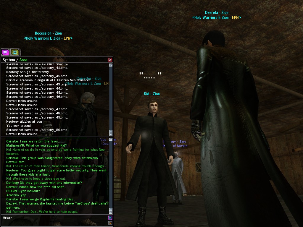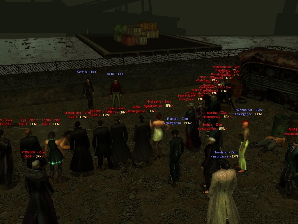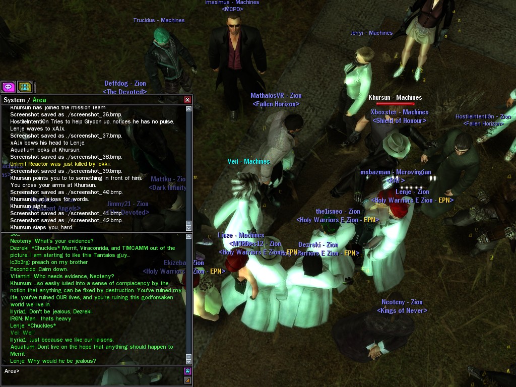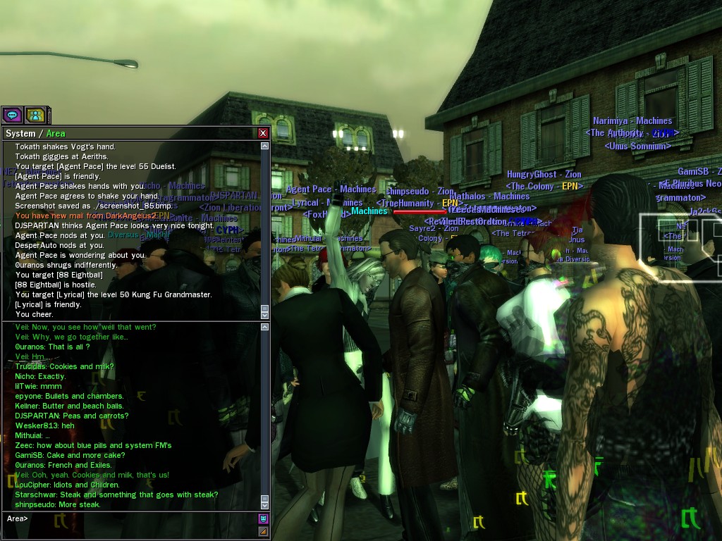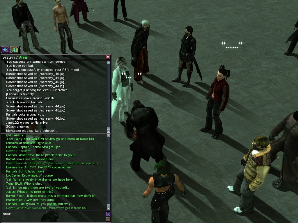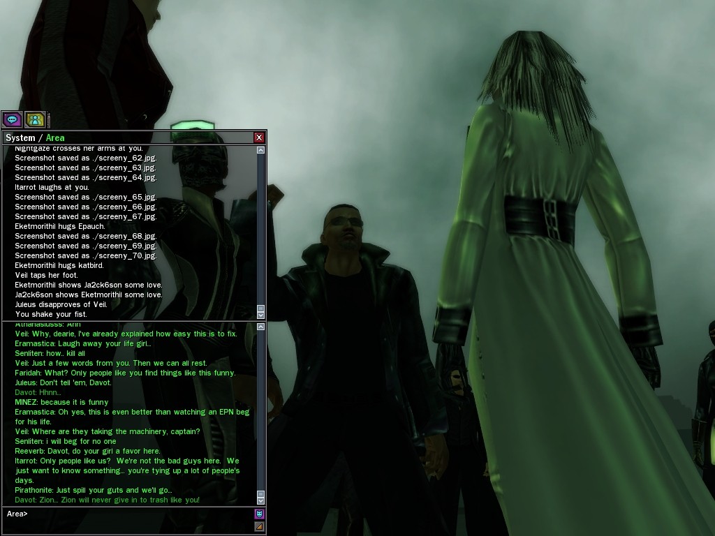 After snacking on some small fry, Evasidos, Mercidos, and I just happened to stumble across a big drum-beating held by those annoying EPN people down by the wharves. Their cute little new officer was there, and everything! Now, we certainly couldn't pass up a chance like that to put in a word or two, and I think we succeeded in livening up their evening a wee bit.