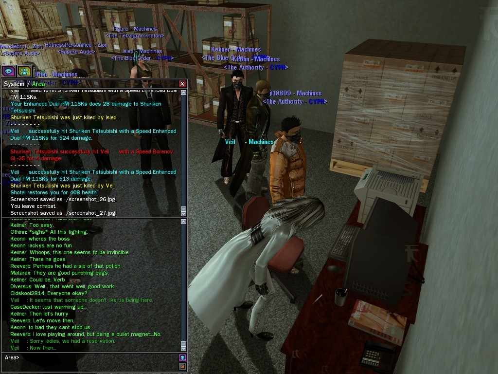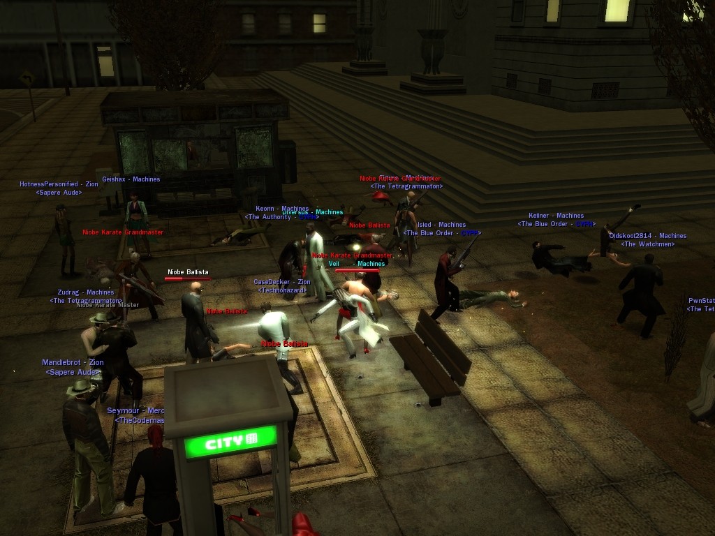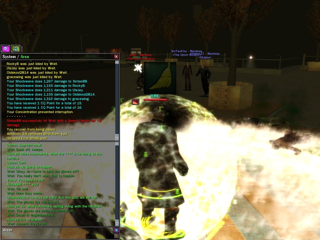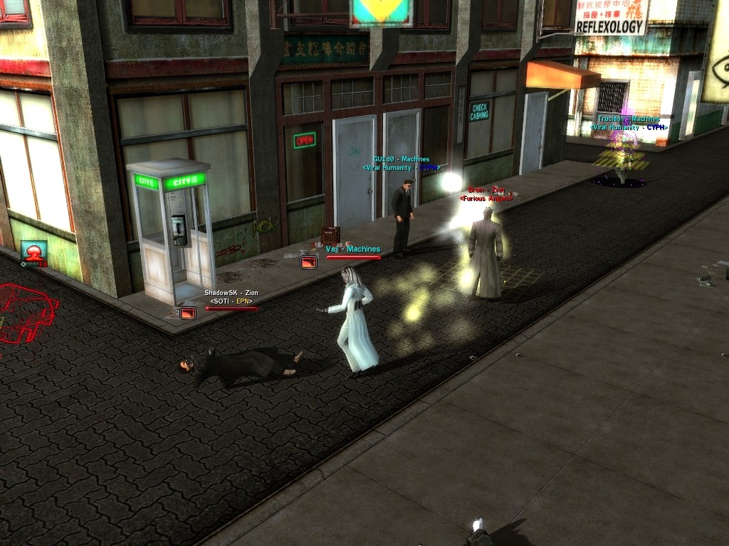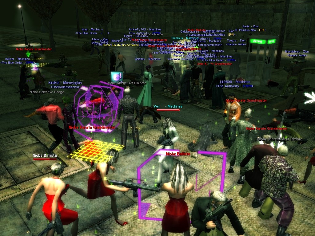 My dears, Anome's man, Weit, showed up in Downtown just the other day, mucking about with hardlines. He was able to rewire a few before operatives could stop him, and when that happened, immediately afterwards a whole truckload of his men would port in through the line, clearing out the whole area. Fortunately, we got wise to him, and pretty soon he found that he didn't quite have the leisure he needed to rewire the phone booths. He ran off in frustration, leaving a trail of high-powered soldiers across northwestern Downtown. Not to worry, though! They were soon cleared up. And I'm sure we'll get Weit pretty soon, too, unless he wises up (which seems awfully unlikely). Kisses! Veil