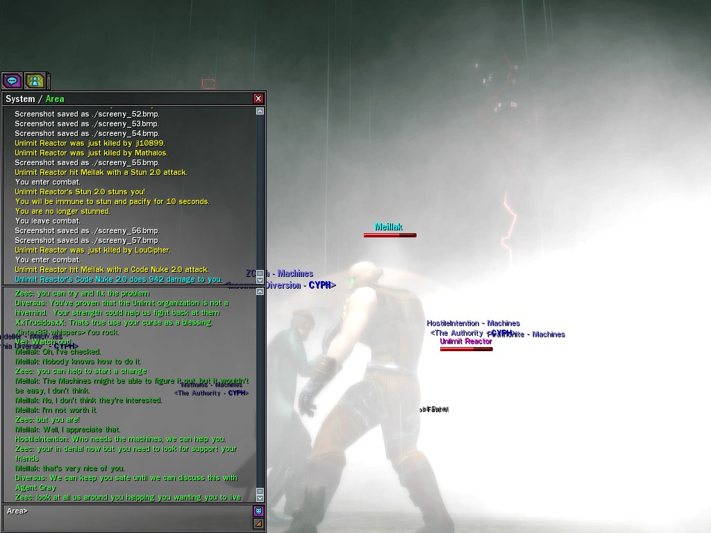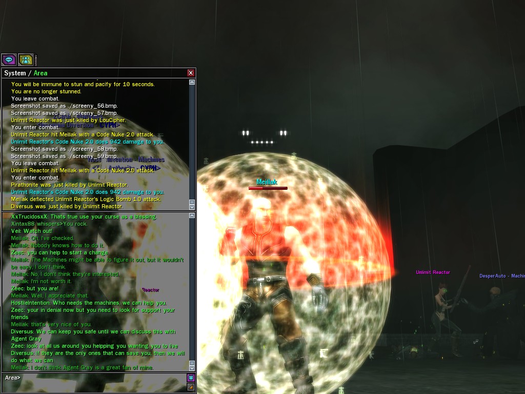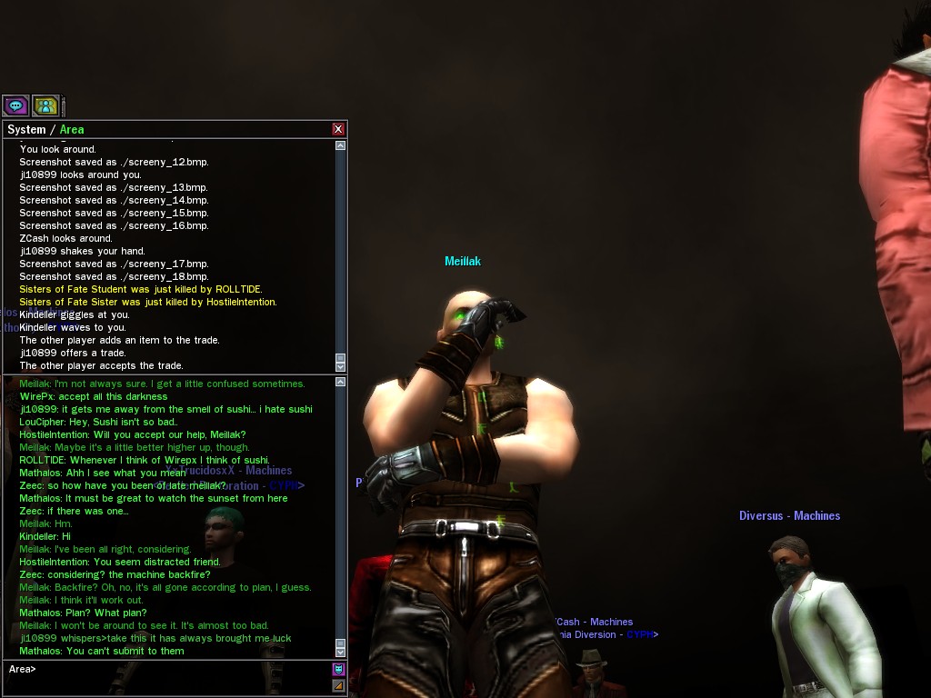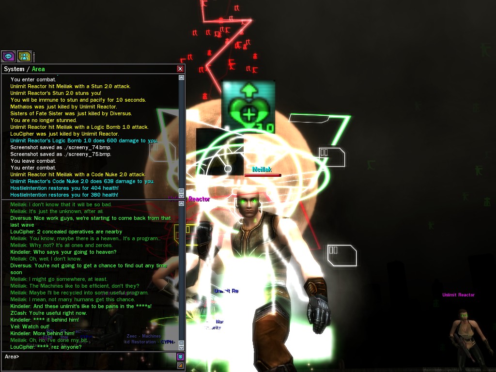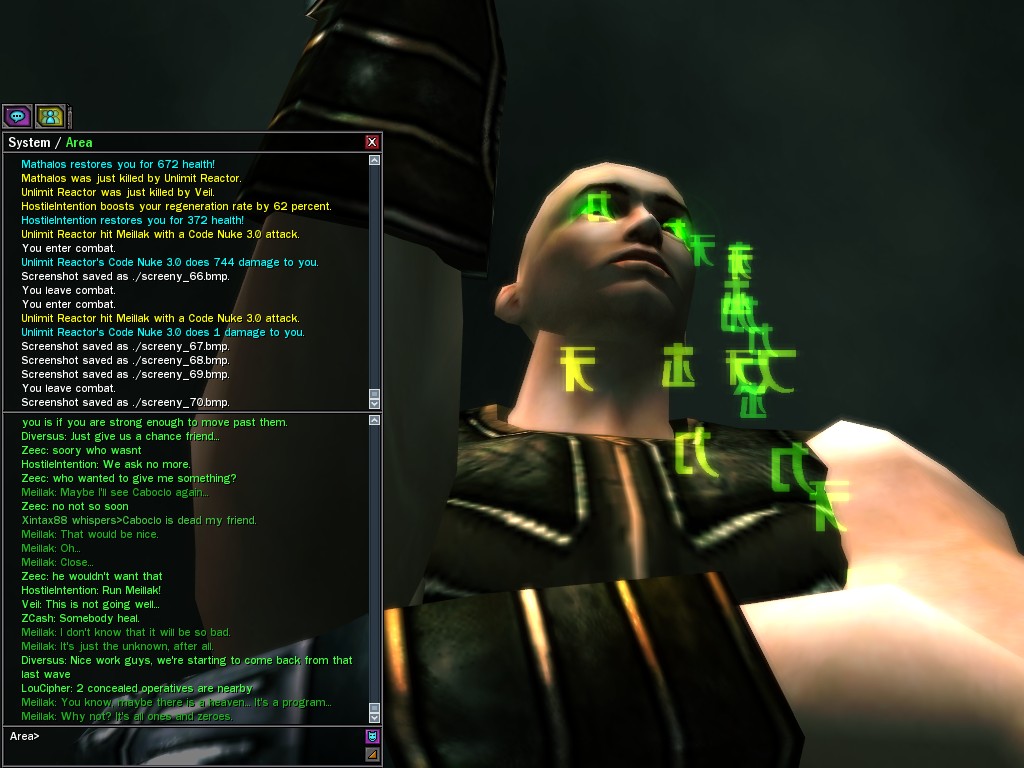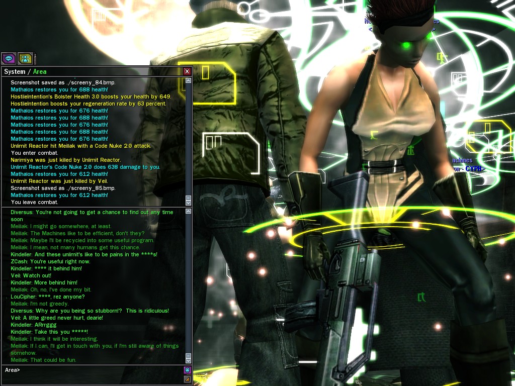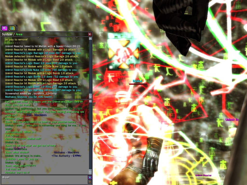 We only met Meillak a few times, but he proved to us that not every member of Unlimit had their mind corrupted along with their body. We didn't know it at first, but there's no question now that Meillak has been helping us fight Anome by giving us pieces of Anome's life before he was awoken--pieces written by Caboclo, Meillak's friend who Anome punished in a terrible way. Eventually, Unlimit figured out what Meillak was up to. I don't think this surprised him. Meillak's hacking of Machine programs--which have hidden, redundant data-gathering routines for just such an occasion--allowed the Machines to track the hacks back to Meillak himself. We intercepted this data and went to meet Meillak first, to try to save him from both Unlimit and the Machines. It didn't work. There was an army of Unlimits right behind us, and Meillak didn't want to go. He sounded...he sounded tired. He said many things that we didn't understand, dearies, about what he thought would happen. He said that the Unlimit were doomed, and would die, and that he would rather go now, at their hands. He seems to have planned it somehow--planned all of this. He said it was his choice, and then, right before the end, he said that we would all have to make a choice...I think. He always was hard to understand. Unlimit killed Meillak, dears, I suppose like he wanted them to. He sacrificed himself... I only hope that the rest of whatever he was planning works out like he wanted. But whatever happens, we won't forget him, will we? Veil