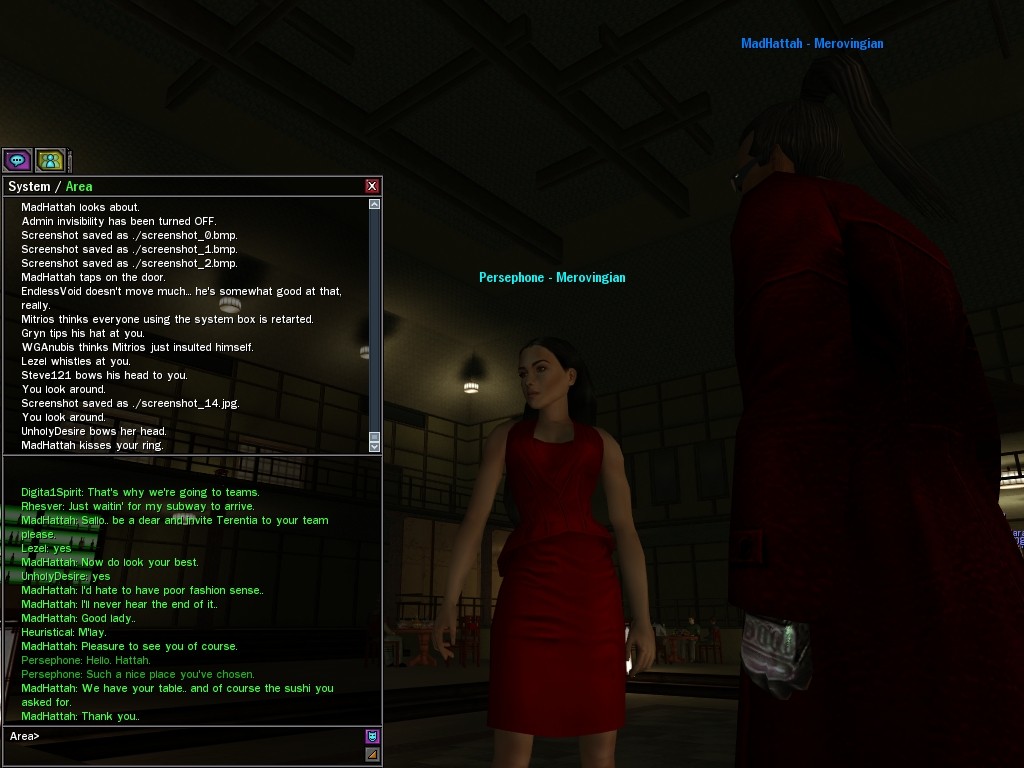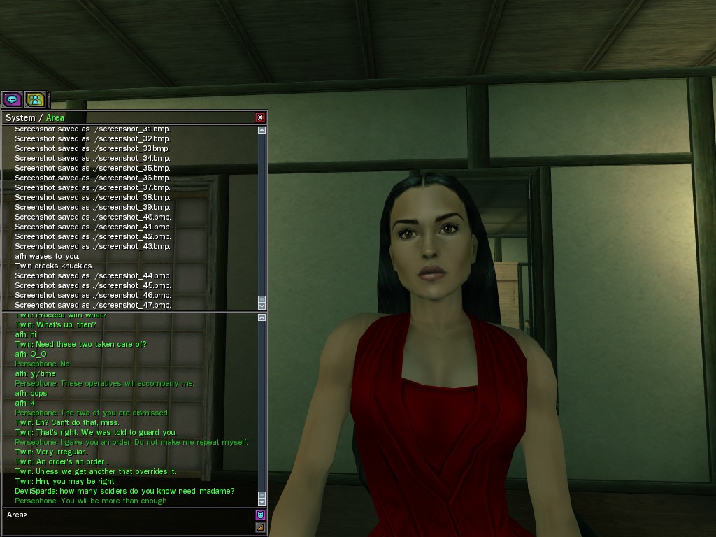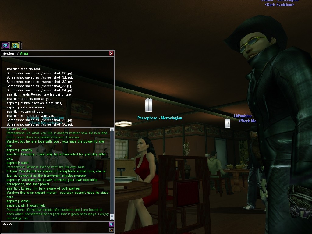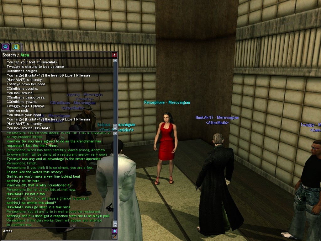 "I’m sure by now your questioning my motives and why I am working for the great Merovingian organization. Well that is unclear you see, a girl must keep some secrets. My current involvement is to make whatever Persephone wishes to be done, is done. You want to make deals; I am willing to hear you out.