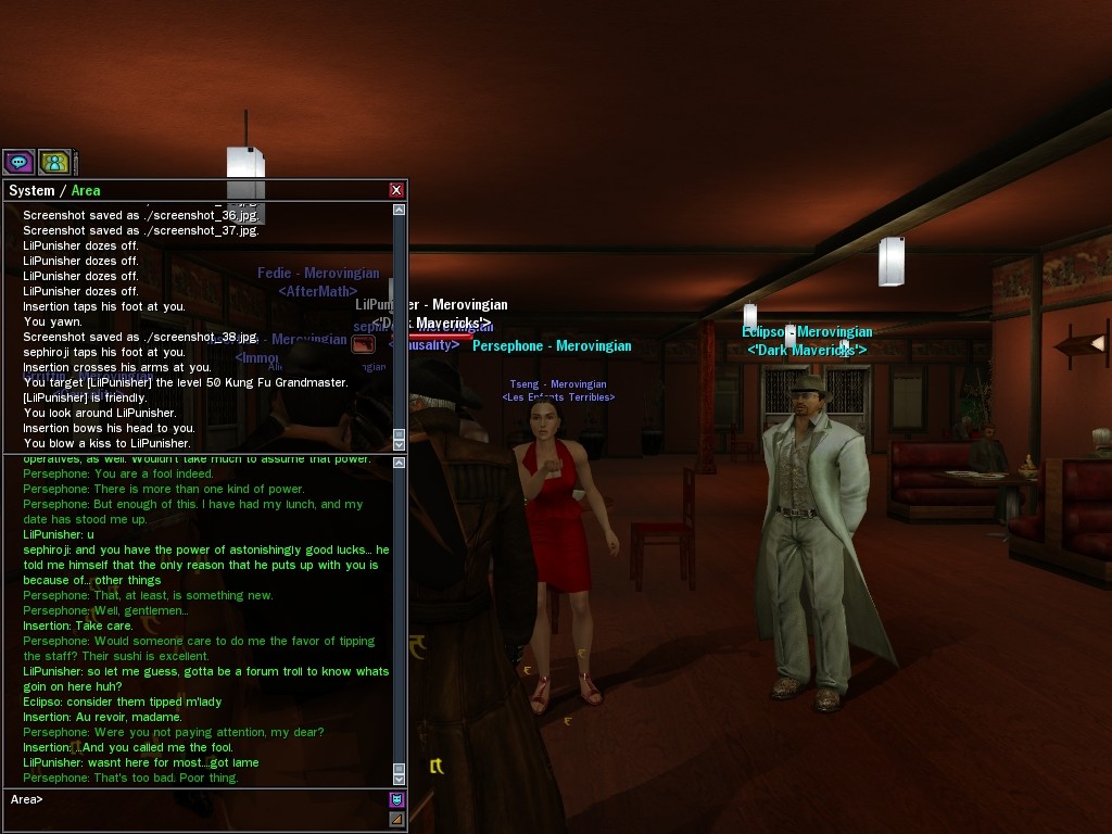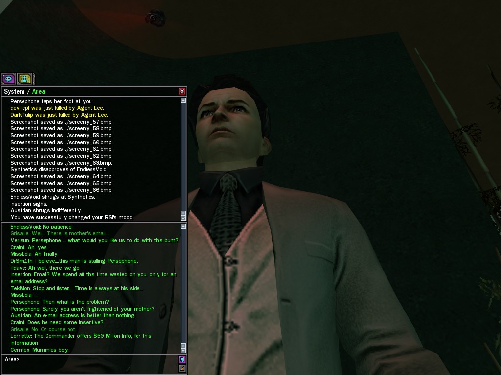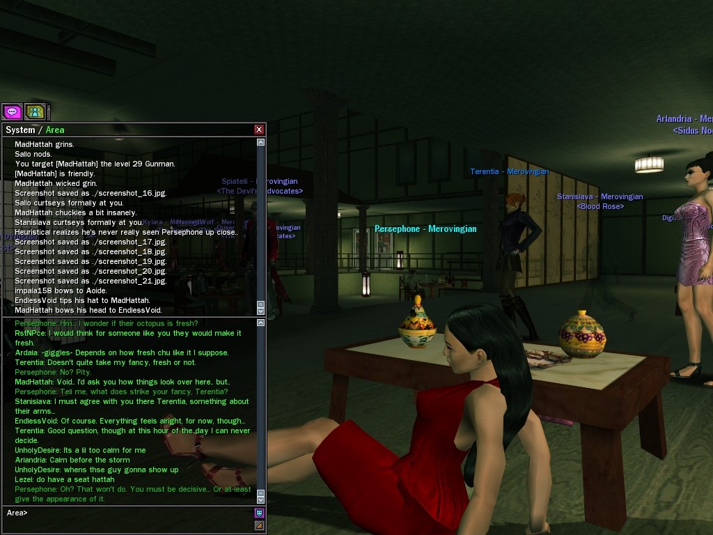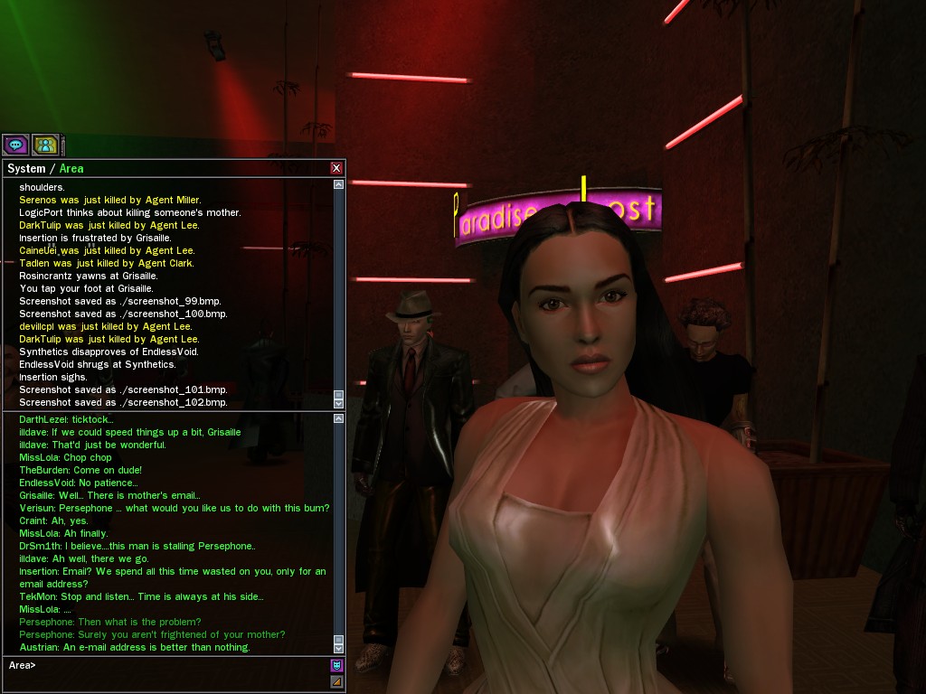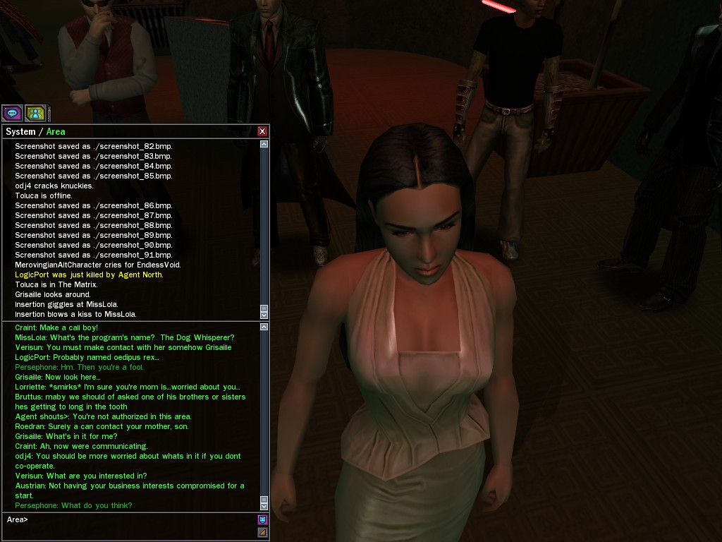 "I’m sure by now your questioning my motives and why I am working for the great Merovingian organization. Well that is unclear you see, a girl must keep some secrets. My current involvement is to make whatever Persephone wishes to be done, is done. You want to make deals; I am willing to hear you out.