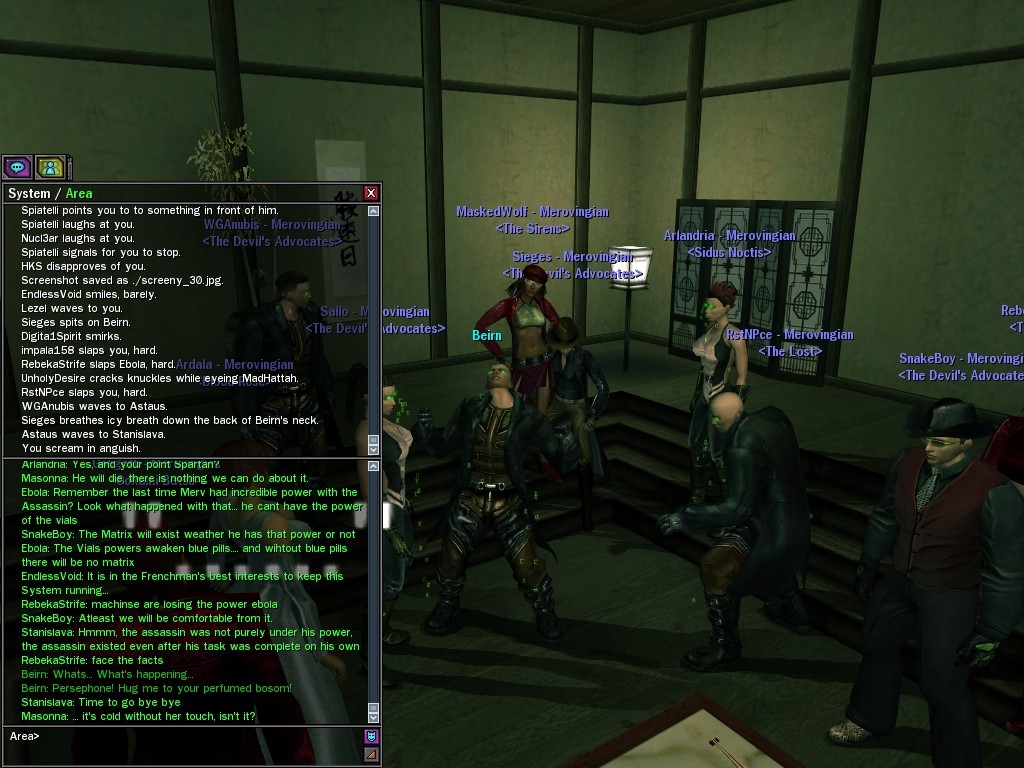 "How did I gain the trust of the Merovingian? Ahh back to Morpheus and my old former Zion friends. It would seem I have more in common with good old cypher then one would like to admit. It’s quite simple really. I had secret information pertaining to Zion, I won’t go into details. The Merovingian wanted it, so I made a deal. A very wealthy one. Boy did Zion Command blow a gasket when my betrayal was revealed. HA! What did they expect? Morpheus never trusted me; guess he was right all along. The Irony is not lost.