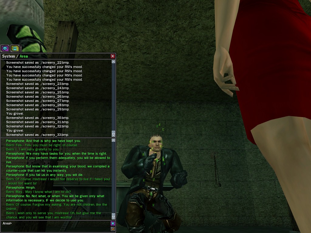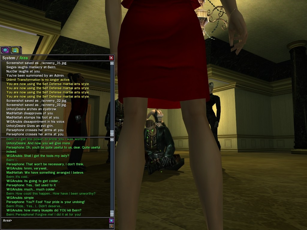"I have many more secrets, some of which could have deadly consequences should I choose to release that knowledge... No... For now I am content in learning all I can. Which brings me to my teacher and confident Persephone. I was contacted by her shortly after I made my decision to leave Zion and my farce of a life to return to the lap of luxury.