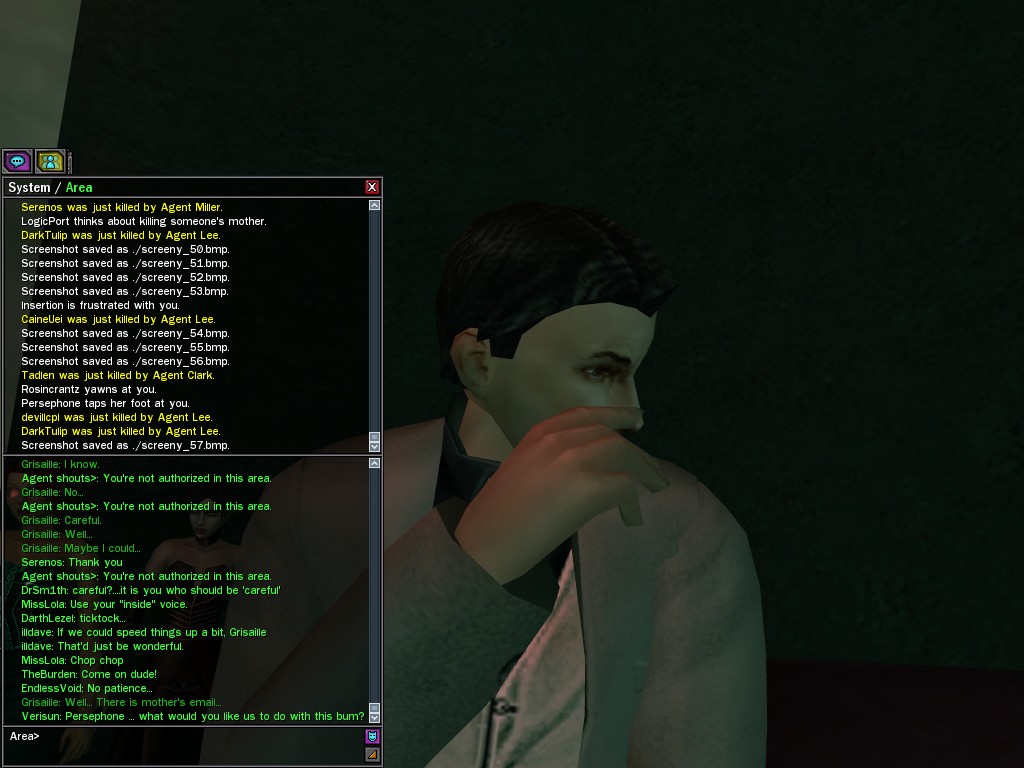 "I am always around though you may not see me. Observation and patience can go along way in this organization. Patience is a Virtue, I forget who said that wisdom but Lady Persephone mutters that all the time. The Queen of patience, and precision, one powerhouse I would not want to cross.