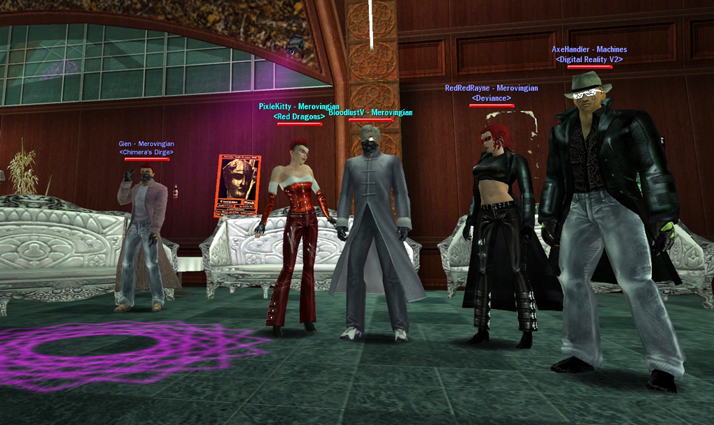 Misc Characters: Stuff that was added in over the course of MxO: Assassin, Daniel Wright, Oligarchs (Wireframe guys), Anome and his Unlimits, and other misc. characters Rarebit dropped in - might get used at points and others might get axed completely. Like I said, no "spunky" shiny pink bubble-gum girls, stuff like that. And more of a balance of Male and Female characters - not all femme-characters. I don't get love-crushes on my toons.  So, story Ideas - and all that goes with bringing back LEs, structured and scheduled LEs - because the Live Events where the life-blood of MxO. Something that did make it very different from other MMOs where you do nothing but grind away. Cinematics ... hmm, I am an animator (I have an Assoc. degree in Art & Animation) If there was Time I would try to make cinematic pieces. It would depend.