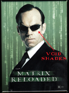 ----------------------------------------------------------------------------------------------------------------------------------------------------- Now for the other stuff:  Void Shades! They are so much better than those big fat, old-grandpa, blockers. But none come with buffs, they are only avalible as non-buffed eyewear for guys from some meager clothing vendors. That's pooey - always has been.
