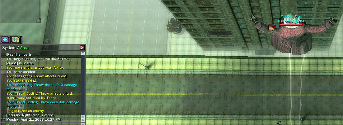 Thanks everyone who turned out! About mid-way through we jumped down to the large rooftop underneath to try and help you guys out best we could. I guess by that point most of you had given up? I gotta thank 0celet for sticking it through and continuing to attack. And we thought the level 100 Agents would help even the score for you guys as well...oh well, live and learn. Next month will be different...don't worry...