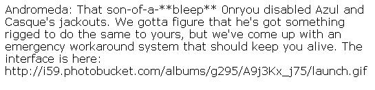 Anyone want to help me with breaking into Andromeda's emergency workaround system?