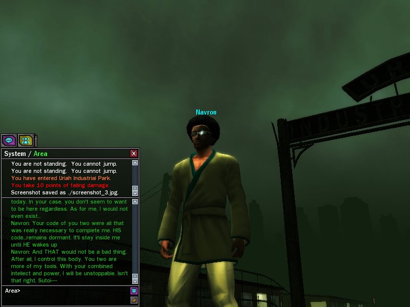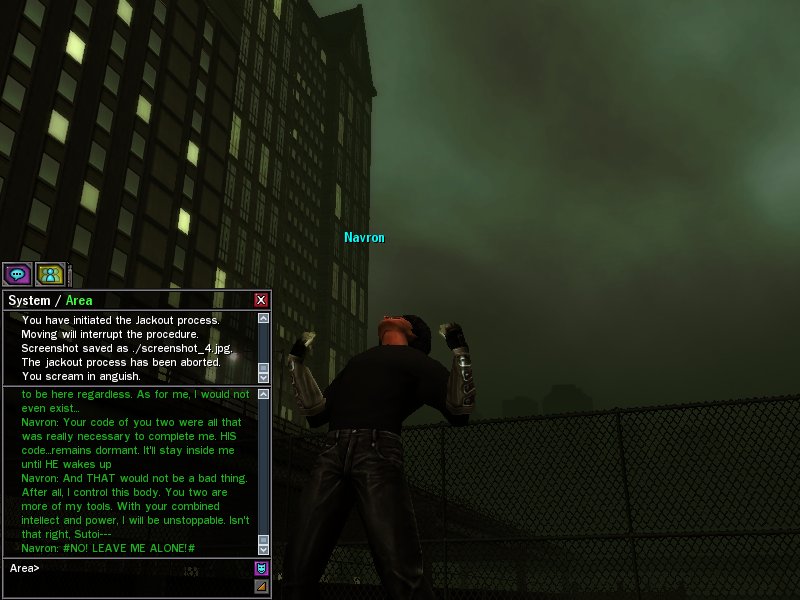 Ok, ok. That's fine. *teehee* So first off, you notice the sudden glitches around here? Those humans can't jack in. And anyone who can jack in can't even use their abilites!