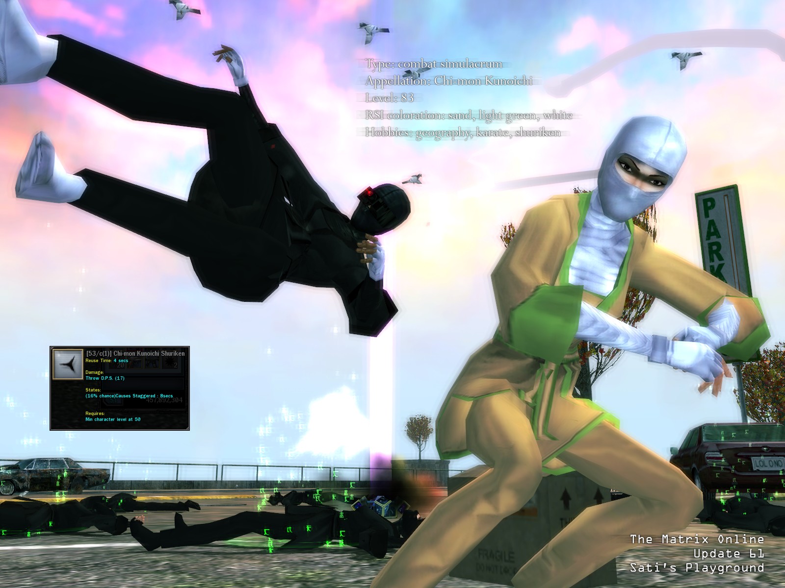 Villemar_MxO wrote: Its funny you posted those pics from that event with Seraph, Morpheus Sim and Lo. I meant to ask about that. I gathered from that event (and some concurrent mentions in a crit...something The Oracle alluded to perhaps?) that there was to be kind of a Free Exile movement...programs that no longer wanted to be under the Merv's jurisdiction. I read that event as egged on by Seraph, and for which the Morpheus Sim might have been the eventual leader. Perhaps even shedding his Morpheus "shell" and forging his own seperate identity). Reason being I figured the Merv was way overdue for another insurrection...aside from little dumb ones like Desayd the Nighmare, nothing really since the Invalesco thing waay back when. But with this resulting in a full sub org of its own....bringing them into parity with Mechs and Zions with EPN / Cyphs. Just wondering, had you considered anything along those lines?