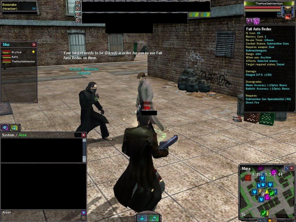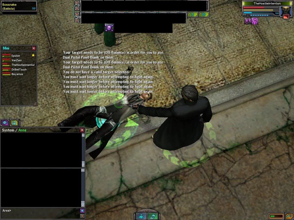 In-keeping with the nature of the FFA zone, I went into the Datamine solo recently, with no intention to mine, but to try catch other players as they farmed. Now, /who tells me there are 8 players in there, other than myself. 7 of them are Master Shadows. This isn't such a problem for me because I'm currently a hacker, however if I were anything else it would be incredibly difficult to kill a Master Shadow on my own. Sniper/Assassin/MKT excluded. The fact that they don't want to fight and have those two escape methods and an Evade Shield makes it rather hard. So then you're faced with no option but to team with people to help. Nulling the purpose of the zone, I've *had* to team up, OR change to a different build or else there is just no chance of getting someone before MS is activated or they jump away.