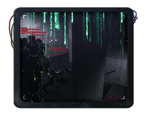 It was a normal evening City. Well, as normal as you would expect of the Matrix. Deffdog stands at the window overlooking Yeung Park, contemplating on the day, as he looks over the horizon of the International District. Many blue pills were out on their walks around the park, on their usual routines. He suddenly sees a silhouette of a person standing near the Dawei Sculpture. It was obviously a red pill, due the trench coat that could be distinguished from the silhouette. It was too far to determine who it was, but he dismisses it as an operative shaking down the gang, which is not uncommon. Deffdog starts to move away from the window, when he suddenly hears sound of glass breaking, and then blacks out. Deffdog's eyes jerk open, to see the cold steel ceiling of the command deck. He was shot and killed in Matrix, most likely by a sniper. His EJP must have activated. He raises his head, and looks around to see his operator, Jazz, she's working at her console, not noticing Deffdog's impromptu exit from the matrix. Deffdog taps a console near his right hand. The noise startles her, when she saw he was awake she hurried over and pulled out his jack. "What happened?" she asked. "I am not sure; I think it was a sniper." Deffdog gets up out of his broadcast chair and stretches. "Nothing stranger than usual," he added. Deffdog looks over to the other 3 crew members in their broadcast chairs. Jazz sits down back at the Operator console, back to loading the new training programs, to our newest member. A light begins to blink at the console, as the Deffdog begins to leave the room. "Captain, were getting a message for you," says Jazz. Deffdog reenters the broadcast room. She begins to decrypt the message and loads it up on one of the monitors. "Deffdog, your time has ended. I will find you and put an end to your treachery." "What the hell? Who sent this?" Deffdog asks. "Unknown," Jazz responds, "But they also sent a code capture along with the transmission. Give me a minute to decrypt it. There also seems to be a encrypted message embedded in the image."
