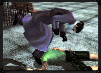 Caption entry ends Thursday 11th. Congratulations to last weeks winners, and good luck this week!:This week: :Last weeks winners: 1st place: "Shinpseudo: Hey Twin, you ok man? You don't look so... OW!" ~ ArchDuke2nd place: "Fan Faire 2009 reward - "Psuedo Shindals" " ~ Coro3rd place: "Alley-..oops." ~ Void-----------------------------------------And this weeks Editors Choice award: "Coming Soon - Step Up 3: Big Trouble in Mega City!"~ Korthex------------------------------------------------ This weeks image was stolen from Rarebit.Got a screen shot you want featured in the CCC ? PM me with a link to the image and it might end up as next weeks image.^_^
