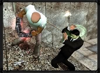 Caption entry ends Friday 26th. Congratulations to last weeks winners, and good luck this week!:This week: :Last weeks winners: 1st place: "Anome demonstrates how successful his studies of the Haka have been, meanwhile in the foreground an Agent who was trying to beat Anomes efforts, fails amazingly at a cartwheel." ~ Brommerz772nd place:"Turns out Anome didn't need cheats to kill an agent with his '6-layer Bean Burrito' attack." ~ Lt0Brien 3rd place: "Agent: Not sure what smells worse...the guy who's dripping flies or the one Anome just ripped...Dear God." ~ Travi-----------------------------------------And this weeks Editors Choice award: "None of them had bothered to read the signs across the street, which clearly showed that people would be falling to the right."~ Void------------------------------------------------ This weeks image was submited by ObliGoblin.Got a screen shot you want featured in the CCC ? PM me with a link to the image and it might end up as next weeks image.^_^