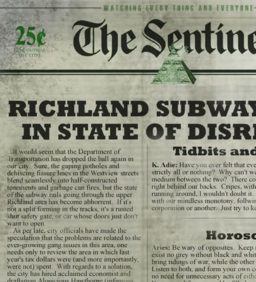 "I'll tell y'everything I know." The words trickled from her dumbfounded grin, dried blood from her nose painting it in dark burgundy. The girl closed her eyes, exhaling melodramatically between eggshell teeth. "Twelve hours ago," there was omnipotence in her voice, "you were contacted by a Faust Cunningham, alias Dante." The woman's hair was raven black, in a strained bun, pulling her pale face too tight. Her head was thrown back gently, and because of the angle of her oval glasses to the light, her eyes had been replaced by two blank discs. She licked at the front of her teeth and produced a pen that had been perched on her ear. "That's right." Fara glanced at herself in the mirror cut into the room's wall, wondering if there was anyone on the other side, wondering if there was another side. "He'd foun' himself at th'*CENSORED* end of Westview whif' 'alf a dozen pistols at'is forehead." Dante's smile broadened, and he stuffed a bite of cheeseburger into it. Staring through the car's windshield, he watched two ivory sedans slow to a stop in front of a stinking fish market in Chinatown. The first packed a handful of toughs with shaved heads and unkempt collars; from the second stepped a short, thin man dressed to the nines and yelling into his cellular phone. "You're late, Adrian," he chuckled to himself. "Can you identify this man?" queried the woman needlessly, tapping her pen on the cold, steel desk. The tink tink kept a perfect rhythm as she pulled a photograph of a small man in a seersucker three-piece suit from a folder and slid it toward the girl. Fara knew who it was without looking at the picture. "Yeah, that's Adrian Noble. He was some crime lord wannabe whif' a Napoleon complex." "Was?" Fara trained her gaze lazily on the woman's lips and countered with a Cheshire grin. The man closed his phone with a snarl and stepped into an alley, the bald men followed. A few minutes passed, enough time to let some pretty tramp in a red cocktail dress and a fur coat to step out of the sex shop down the street and hail a taxi. Dante opened his car door and stretched, leaning upward. A shiver caught him off-guard as the season's biting wind slapped at his leathery face. The driver's thin black suit leaned over before Dante closed the door behind him. "Try to exercise a little more caution this time, yes?" Lethe grinned knowingly, and the expression mirrored itself on Dante's face as he checked the clip in his overzealous magnum, and replaced it in his coat. The door shut with a decided click, and a shining crimson coat seeped into a crowd of charcoal suits and cobalt ties. Lethe was twirling a knife around its handle as the shots reverberated through the cluttered chasm of a street. He glanced upward with a yawn and watched the crowd scatter, a clean hole through each car's driver-side window. Aboard the Equinox, there was an uncharacteristic air of serenity. Jouzu's massive form was crooked over itself, asleep on a single-form table with his face in a pile of small devices he had been fiddling with. Domino was on the floor next to him, curled up comfortably under a large sweater. The two newer men had decided to remain at New Antigone while a windstorm passed through. No doubt, they had met women. Systemic's tanned body had finally collapsed onto the bolt launcher she had been reassembling for a marathon eighteen hours. Ooidal had lost a bet that she could make it to twenty without blinking. His massive tumor of a frame oozed over the operator's chair as he silently clacked away at a keyboard, rerouting a hard drop that had been patched downtown. Two of his monitors were still strewn akimbo from the melee with Dante after he had kidnapped the brat. Fara was lying on her stomach, the corrugated steel of the bed-slash-table digging cold, red pockmarks into her cheek. Violent images of war flashed through her vision each time she closed her eyes: guillotined preteens and fires that would never burn out. Those thoughts turned to ash, and were replaced with vague, out-of-focus memories. She was with the terrorist – Pyraci – with rocks sharpened to knives at one another's throats, one making their way through Zero One as blackmail for the other. Jagged structures ripped into the blackened sky, and impossible machines drifted around the two, infinitely patient for a moment of vulnerability. Then, she was stripped of her upper hand, and her consciousness. She was pulled through an endless black tunnel that seemed only and exactly large enough to fit her body by a torturous cramp that fastened itself snugly around the small of her neck; it cradled her head and vaulted a sharpened spike into the back of her head, lapsing her connection with reality, and causing her ears to cough blood. The rest was too hazy – a null, distant stinging every now and then, but more than anything, a feeling like her brain was bloated and full. She did not need to remember it though; the patchwork scars and poorly healed stitches that painted her body told the story themselves. "How did you know Mister Cunningham?" Absently, a few notes scribbled themselves onto the woman's open notebook. She reached for a glass of water, and remembered that the pitcher had been left on the other side of the mirror, where the tape recorders had been set up. "He'd tried t'kill me." The girl patted down her pockets, and found a rumpled pack of cigarettes she had pilfered from Dante's jacket. She did not smoke, but placed one precariously on her lips anyway. "Why d'y'ask?" His magnum unloading shot after shot at the hairless yeti, Dante swam through a whir of SMG fire. He lunged at the man, and they toppled through a splintered door, met by the surprised stares of a double-handful of trigger-happy thickset thugs. Frenetically, he bounced limbs across the first part of each that he could reach, and managed to subdue three of the men before being halted by a lead penetration in his left shoulder, and a shattered collarbone. "Faust Cunnin'