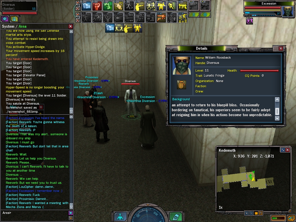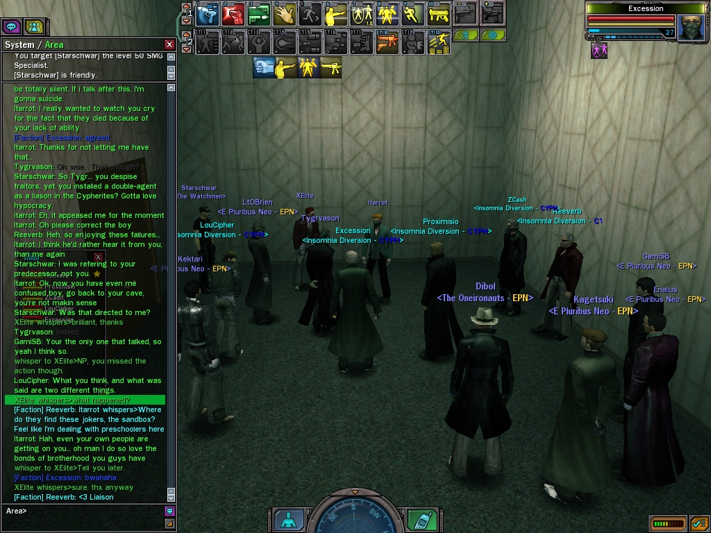 Garu wrote: Stack wrote: This one really bugged me, and I made sure I let Rarebit know. Even as an EPN player on my main, I've always thought the Cypherites were one of the best parts of the story, and while removing reinsertion as a viable option did have the useful effect of making them even more pissed off than they already were, I thought it went too far in pissing them off for real as players. People had already incorporated reinsertion into some of their backstories, and I saw it as just one more stupid restriction that limited what people could do with their characters. The big issue I had with it was that Rarebit was basing his decision predominantly on what he picked up on from the first film, that the agents never had any intention of reinserting Cypher at all, and that the "continue as planned, deploy the sentinels" line indicated that they had planned on destroying the Neb even if Cypher was still alive inside. I also had issues with an in-game mission or two that I believe involved reinsertion. Rare pointed out that there was still no indication that the machines planned to go through with it, and that the apprehension of the bluepill involved only further confirmed that he would probably just be killed, rather than reinserted, and that such was more befitting of the machine M.O.