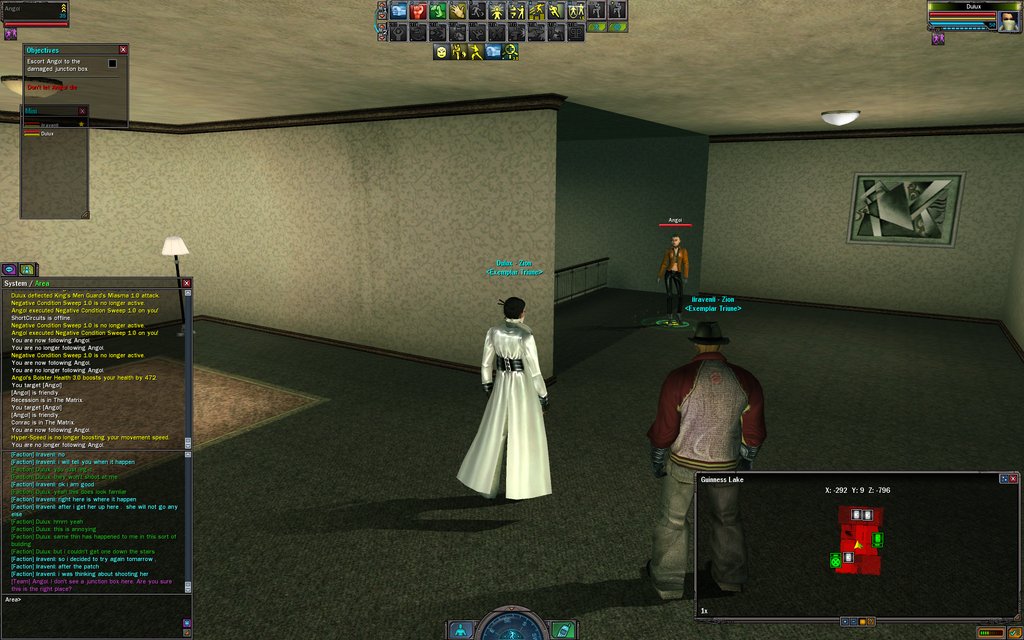 Exactly what it says on the tin! Thought it'd be nice to start a thread for day to day goings on in the Matrix so everyone can see what everyone else gets up to (Idea stolen slightly from Vector's pvp log...but don't tell) So feel free to post screenies of any old thing going on, be it pvp/events/or even just a load of people hanging around together so we can see that there is more going on in the Matrix than just standing around Mara C all day  New Years Day: 01/01/09 - Farming Captain Raeder to get Vesuveus his SSR Glasses.