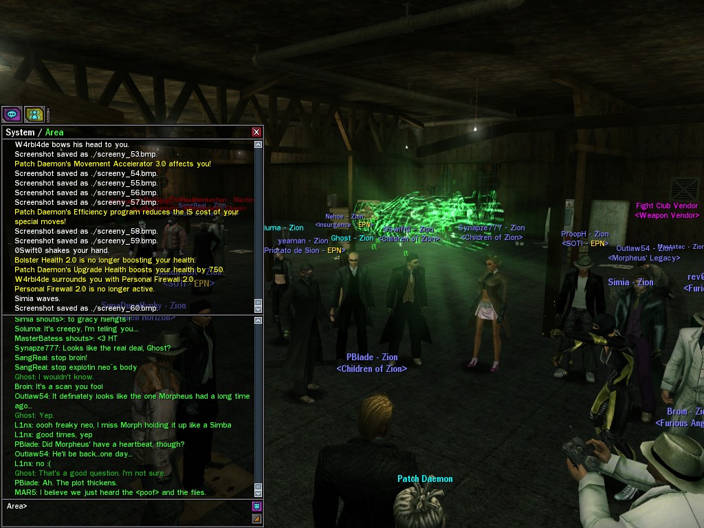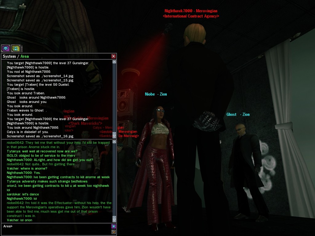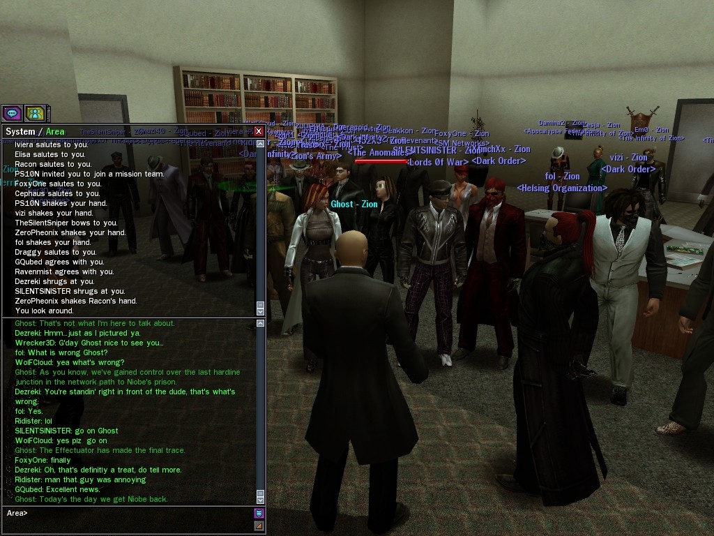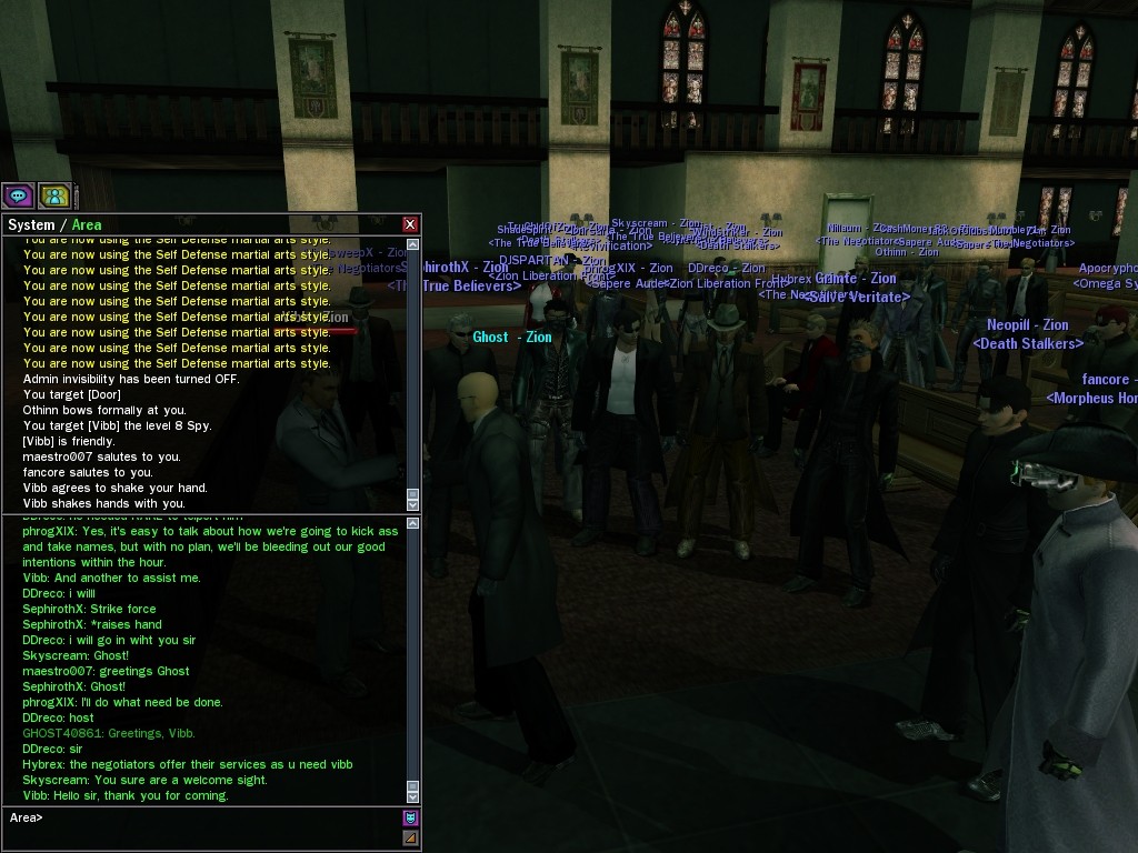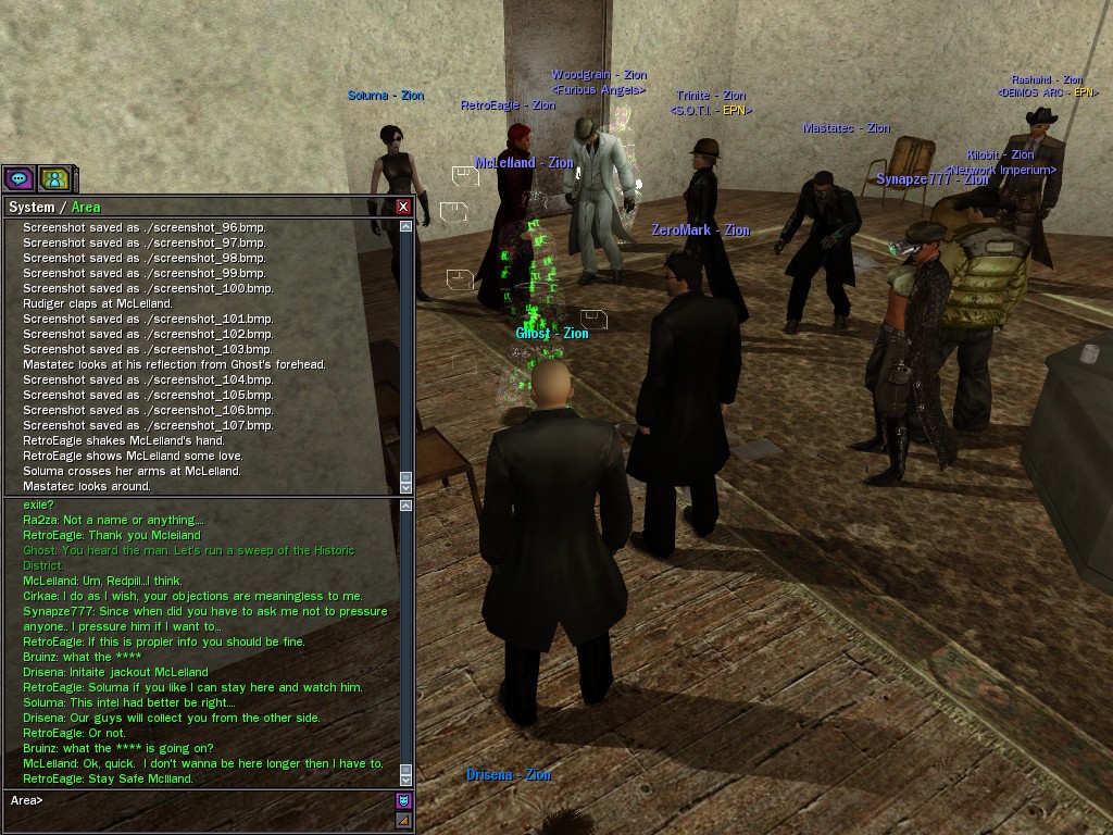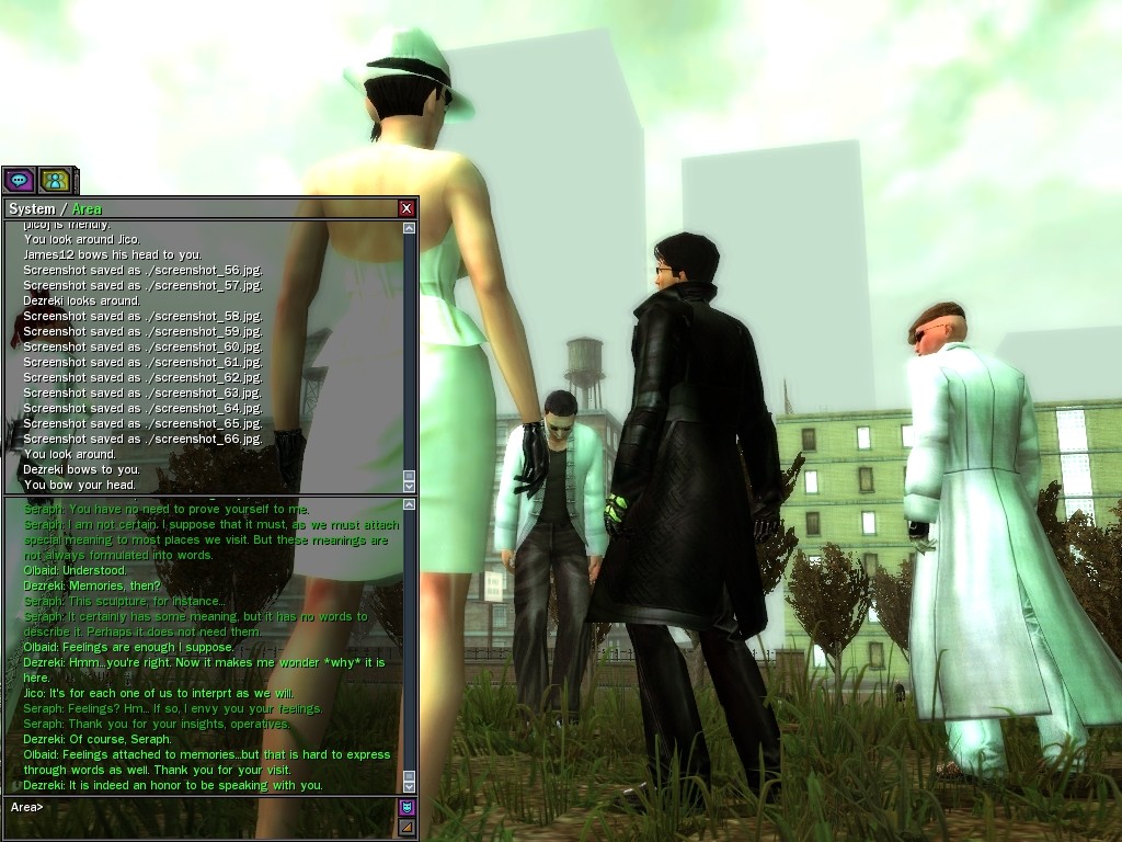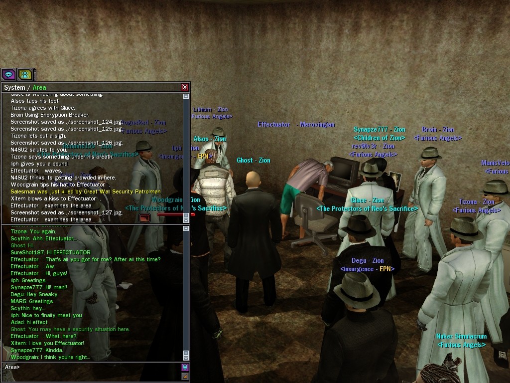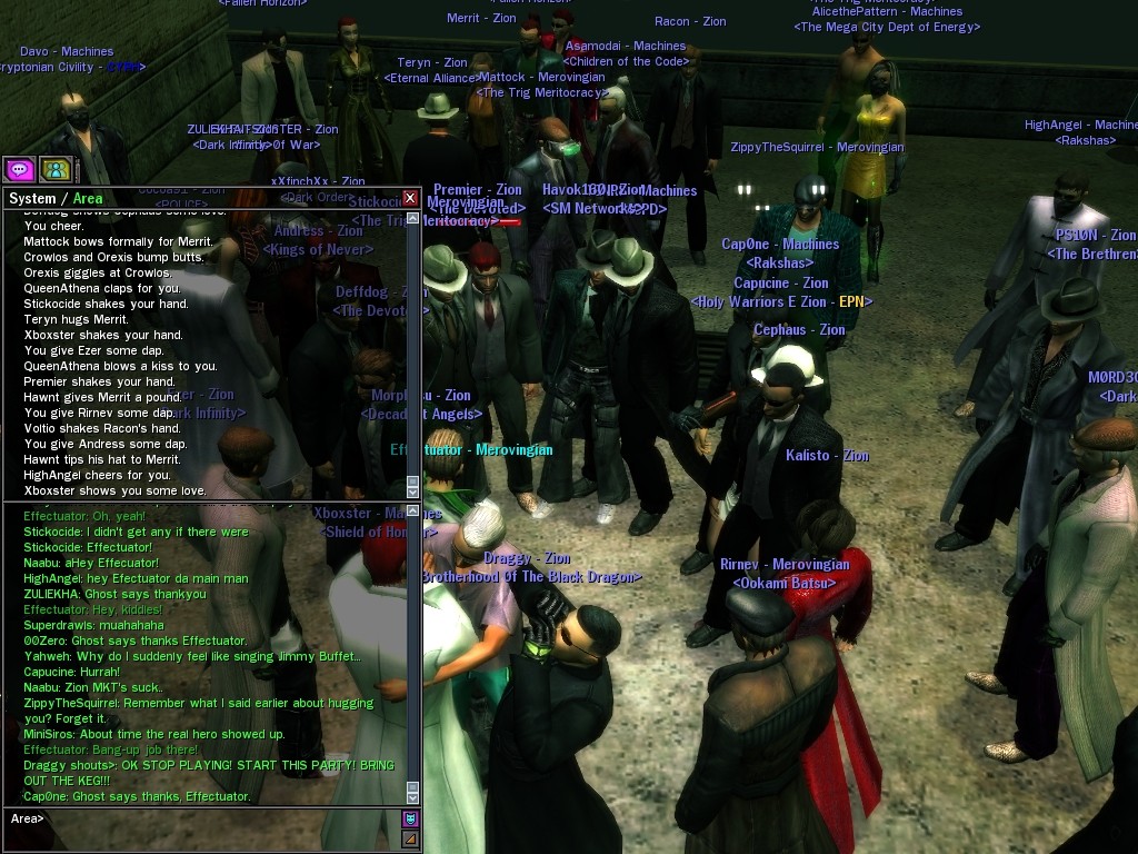 Niobe is back in Zion. It took a lot of hard work over these past weeks from our operatives, and from operatives working for the Merovingian, who decided to help us for reasons of his own. His man, the Effectuator, while sometimes maddeningly irritating, nevertheless was able to track down the construct in which Anome had imprisoned Niobe, after operatives aided him by tracking down network junctions, and clearing Anome's people out of the way. On Friday, with the final network trace made, and Niobe's location pinned down, we stormed Bishop Imports--the site of Anome's treachery, and her disappearance--to pull her back into our simulation. Anome's men had sealed off the upper floors, requiring teams of operatives to free specific hardlines from his control in Bathary Row and Chelsea, so that the Effectuator could gain the necessary network access to disable these blockades. Still, with teams working simultaneously in Bathary, Chelsea, and Ueno, we were able to overcome Anome's forces, and finally, near the top of Bishop Imports, pull Niobe out of her prison. She was desperately weak from her wounds and long imprisonment, and even her body in Zion had suffered due to its extended period of inactivity. But with the help of those around her, she somehow found the strength to stand, get to the rooftop, and jack out once the doctors had cleared her. She hasn't said much since she's been back. She's still weak, but resting, and getting stronger day by day. I think this ordeal has worked some changes on her--for better or for worse, I don't know. People who say "what doesn't kill you only makes you stronger" have never been in a war. But if anyone can come back stronger than ever after something like this, it's Niobe. The doctors aren't sure what lasting effect, if any, the cheat code she drank will have on her. They say it kept her alive, but it didn't prevent her from jacking out, as it has Anome's lieutenants. It didn't give her any obvious powers, either. There's a theory going around, I think started by Machine operatives, that the cheat codes mutated after Anome got his hands on them, or that he changed them himself, somehow. I don't know about any of that. I do know that with the captain back, Anome's days are numbered. If I know Niobe, she's going to want a little payback for what he did to her, and what he's done to the Matrix. I've spoken to some operatives who wished they'd been able to participate in the Ueno operation. I tell them not to worry; there's going to be more than enough action for everyone before this is over.