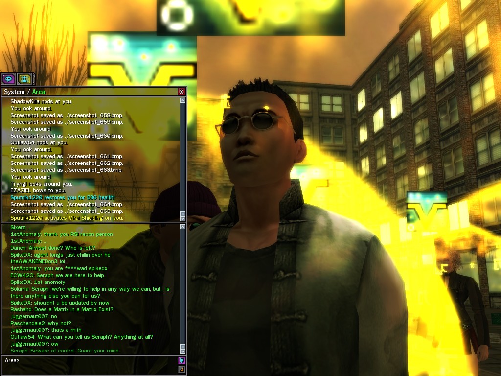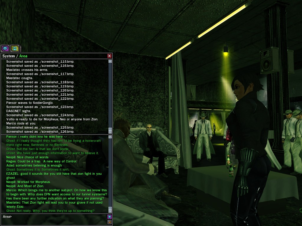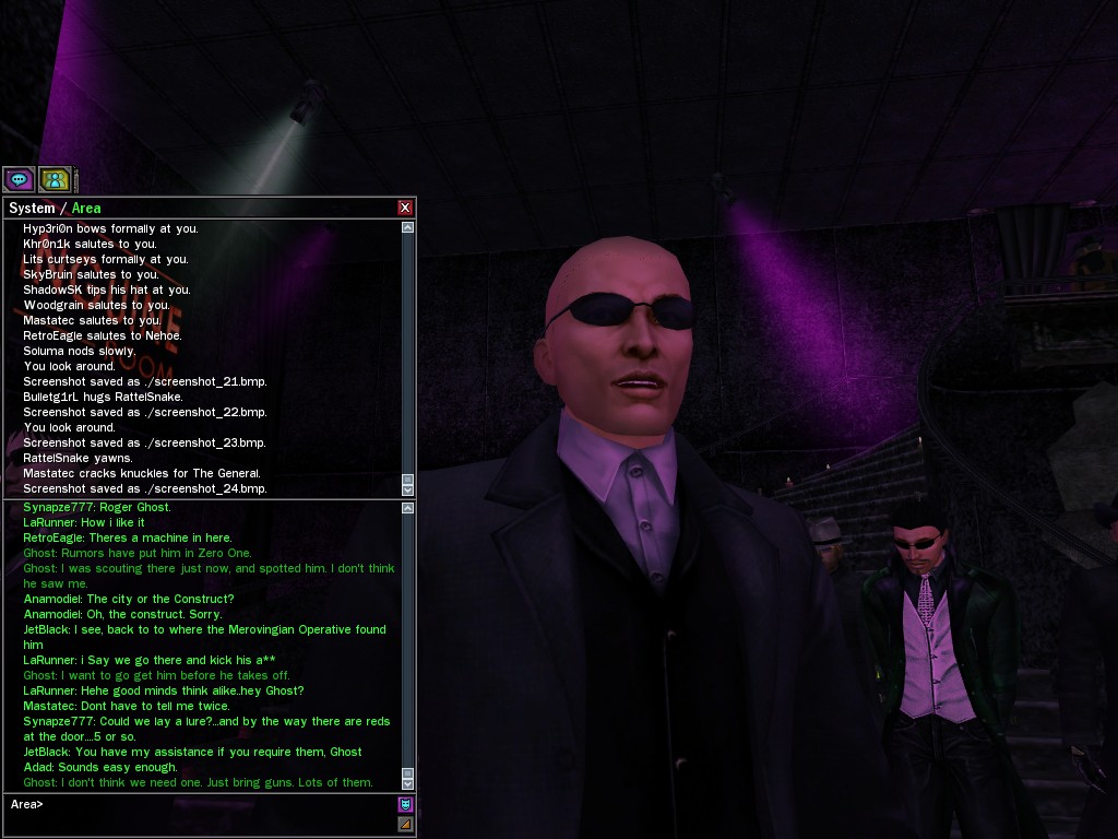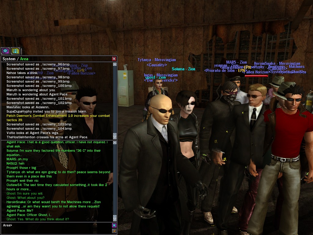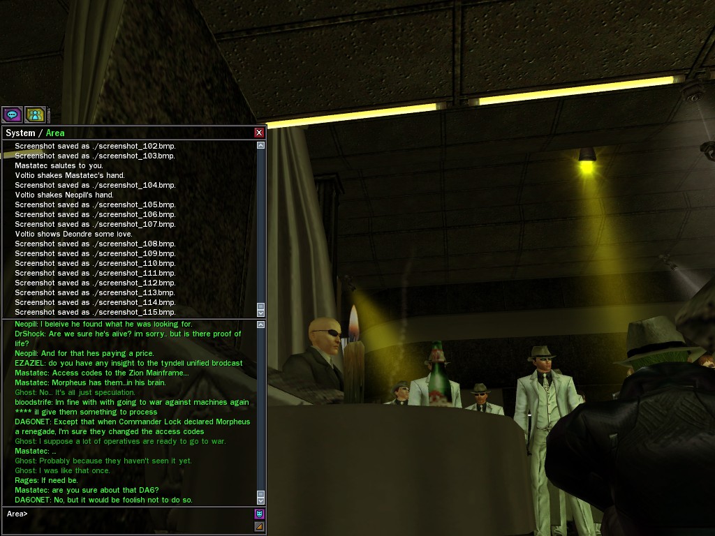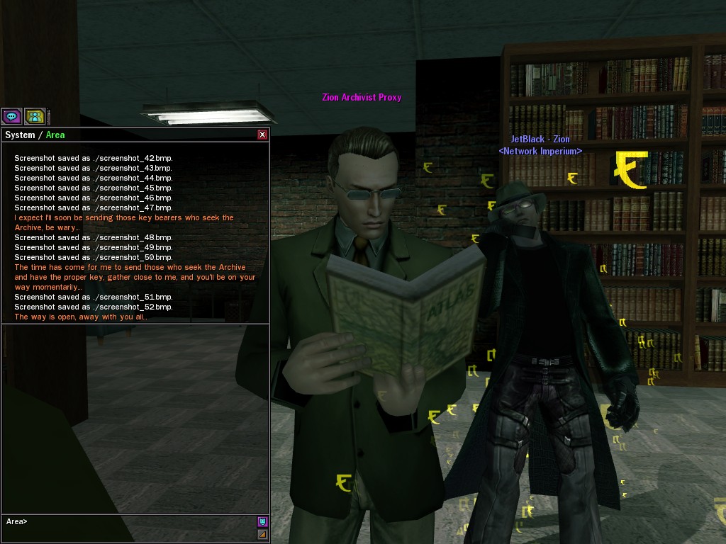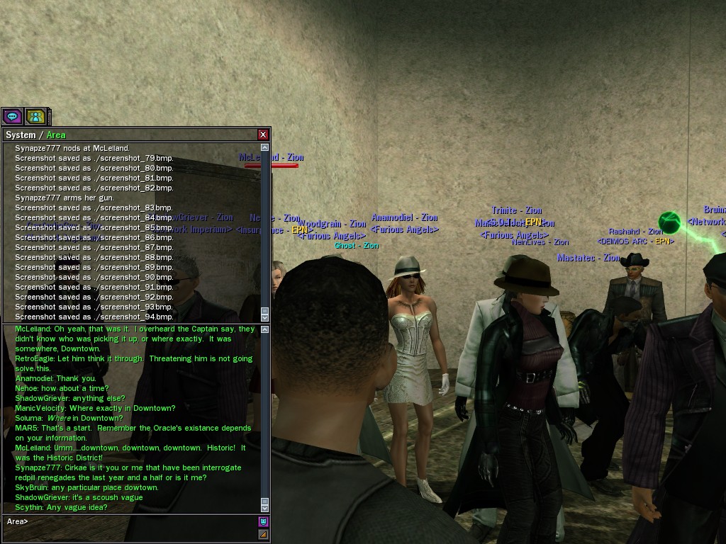 Niobe is back in Zion. It took a lot of hard work over these past weeks from our operatives, and from operatives working for the Merovingian, who decided to help us for reasons of his own. His man, the Effectuator, while sometimes maddeningly irritating, nevertheless was able to track down the construct in which Anome had imprisoned Niobe, after operatives aided him by tracking down network junctions, and clearing Anome's people out of the way. On Friday, with the final network trace made, and Niobe's location pinned down, we stormed Bishop Imports--the site of Anome's treachery, and her disappearance--to pull her back into our simulation. Anome's men had sealed off the upper floors, requiring teams of operatives to free specific hardlines from his control in Bathary Row and Chelsea, so that the Effectuator could gain the necessary network access to disable these blockades. Still, with teams working simultaneously in Bathary, Chelsea, and Ueno, we were able to overcome Anome's forces, and finally, near the top of Bishop Imports, pull Niobe out of her prison. She was desperately weak from her wounds and long imprisonment, and even her body in Zion had suffered due to its extended period of inactivity. But with the help of those around her, she somehow found the strength to stand, get to the rooftop, and jack out once the doctors had cleared her. She hasn't said much since she's been back. She's still weak, but resting, and getting stronger day by day. I think this ordeal has worked some changes on her--for better or for worse, I don't know. People who say "what doesn't kill you only makes you stronger" have never been in a war. But if anyone can come back stronger than ever after something like this, it's Niobe. The doctors aren't sure what lasting effect, if any, the cheat code she drank will have on her. They say it kept her alive, but it didn't prevent her from jacking out, as it has Anome's lieutenants. It didn't give her any obvious powers, either. There's a theory going around, I think started by Machine operatives, that the cheat codes mutated after Anome got his hands on them, or that he changed them himself, somehow. I don't know about any of that. I do know that with the captain back, Anome's days are numbered. If I know Niobe, she's going to want a little payback for what he did to her, and what he's done to the Matrix. I've spoken to some operatives who wished they'd been able to participate in the Ueno operation. I tell them not to worry; there's going to be more than enough action for everyone before this is over.