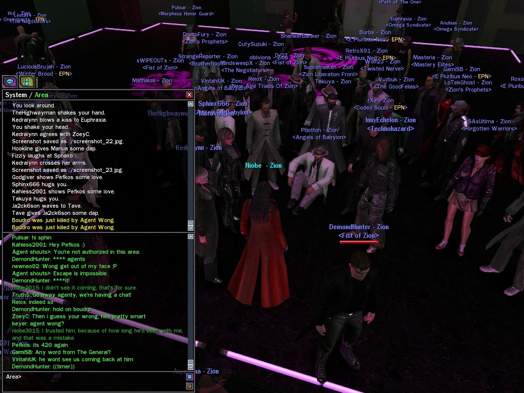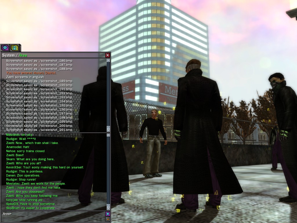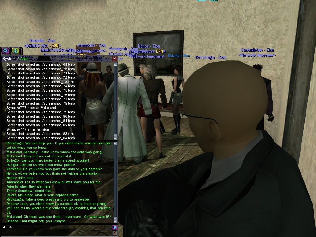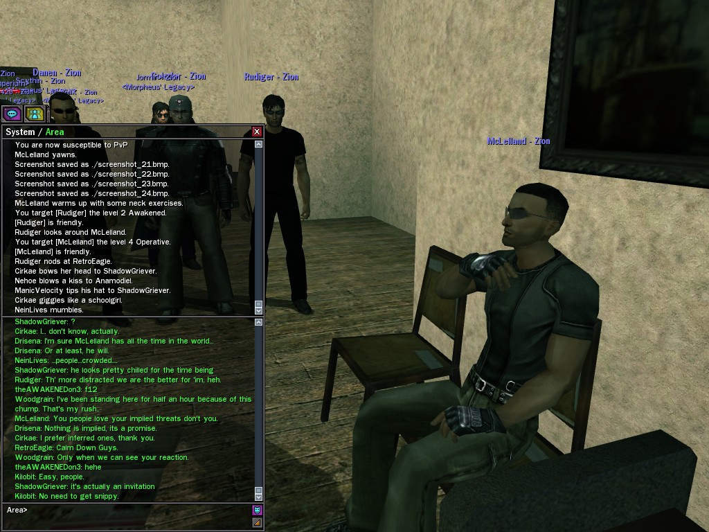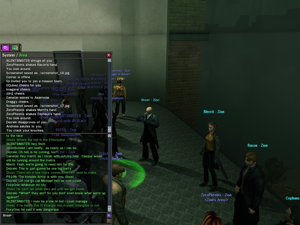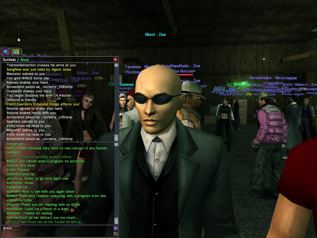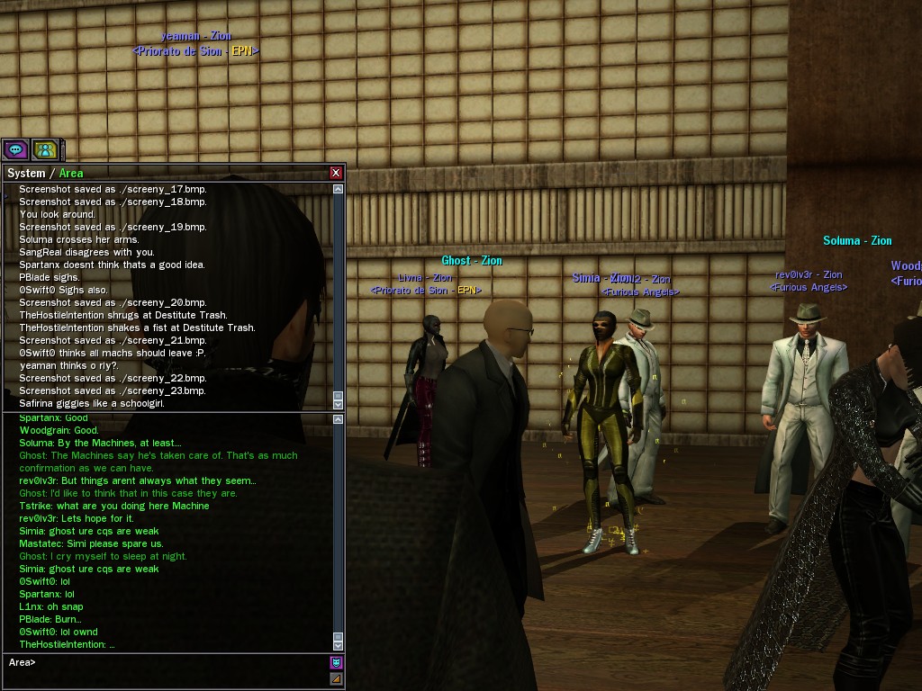 Niobe is back in Zion. It took a lot of hard work over these past weeks from our operatives, and from operatives working for the Merovingian, who decided to help us for reasons of his own. His man, the Effectuator, while sometimes maddeningly irritating, nevertheless was able to track down the construct in which Anome had imprisoned Niobe, after operatives aided him by tracking down network junctions, and clearing Anome's people out of the way. On Friday, with the final network trace made, and Niobe's location pinned down, we stormed Bishop Imports--the site of Anome's treachery, and her disappearance--to pull her back into our simulation. Anome's men had sealed off the upper floors, requiring teams of operatives to free specific hardlines from his control in Bathary Row and Chelsea, so that the Effectuator could gain the necessary network access to disable these blockades. Still, with teams working simultaneously in Bathary, Chelsea, and Ueno, we were able to overcome Anome's forces, and finally, near the top of Bishop Imports, pull Niobe out of her prison. She was desperately weak from her wounds and long imprisonment, and even her body in Zion had suffered due to its extended period of inactivity. But with the help of those around her, she somehow found the strength to stand, get to the rooftop, and jack out once the doctors had cleared her. She hasn't said much since she's been back. She's still weak, but resting, and getting stronger day by day. I think this ordeal has worked some changes on her--for better or for worse, I don't know. People who say "what doesn't kill you only makes you stronger" have never been in a war. But if anyone can come back stronger than ever after something like this, it's Niobe. The doctors aren't sure what lasting effect, if any, the cheat code she drank will have on her. They say it kept her alive, but it didn't prevent her from jacking out, as it has Anome's lieutenants. It didn't give her any obvious powers, either. There's a theory going around, I think started by Machine operatives, that the cheat codes mutated after Anome got his hands on them, or that he changed them himself, somehow. I don't know about any of that. I do know that with the captain back, Anome's days are numbered. If I know Niobe, she's going to want a little payback for what he did to her, and what he's done to the Matrix. I've spoken to some operatives who wished they'd been able to participate in the Ueno operation. I tell them not to worry; there's going to be more than enough action for everyone before this is over.