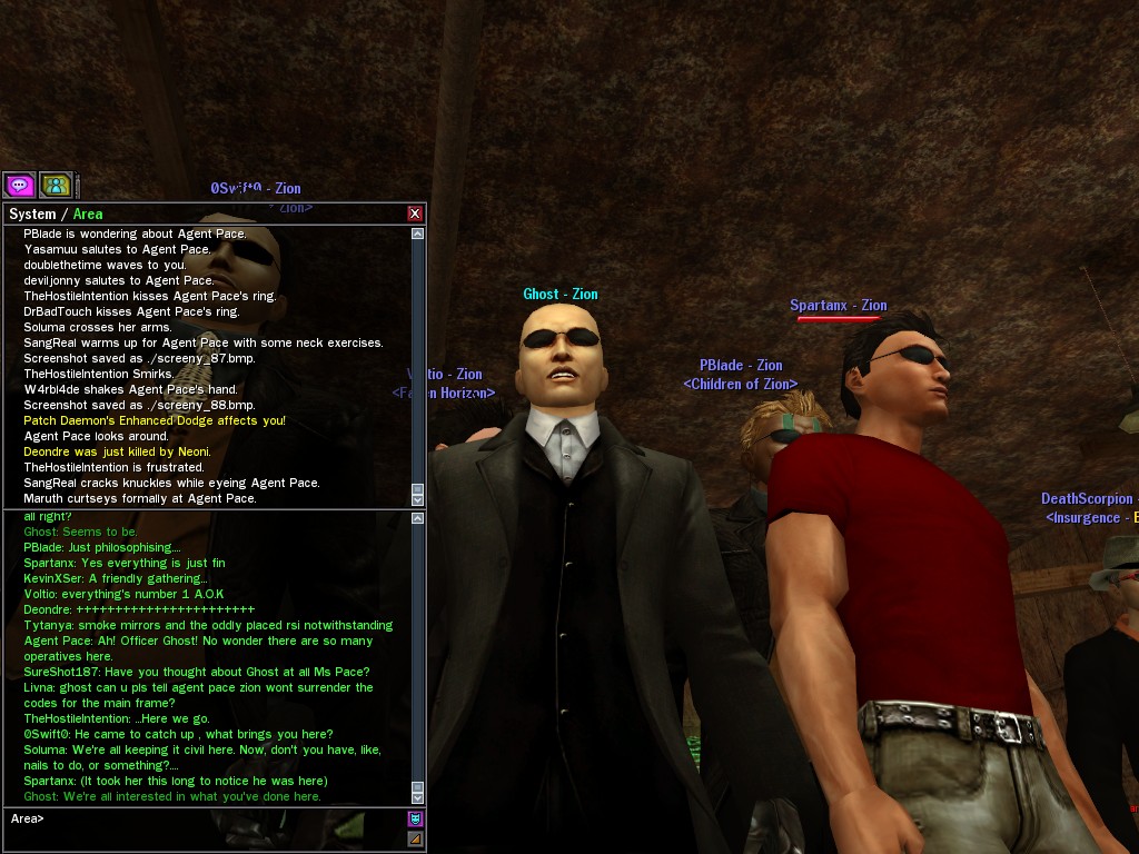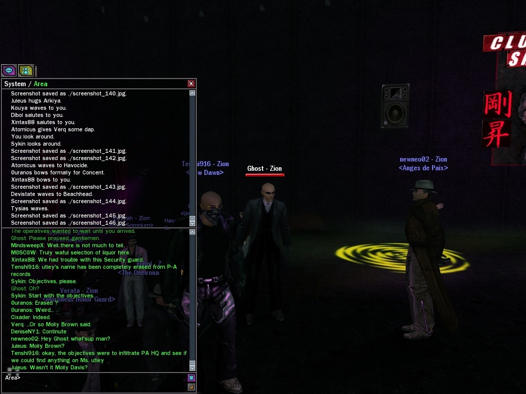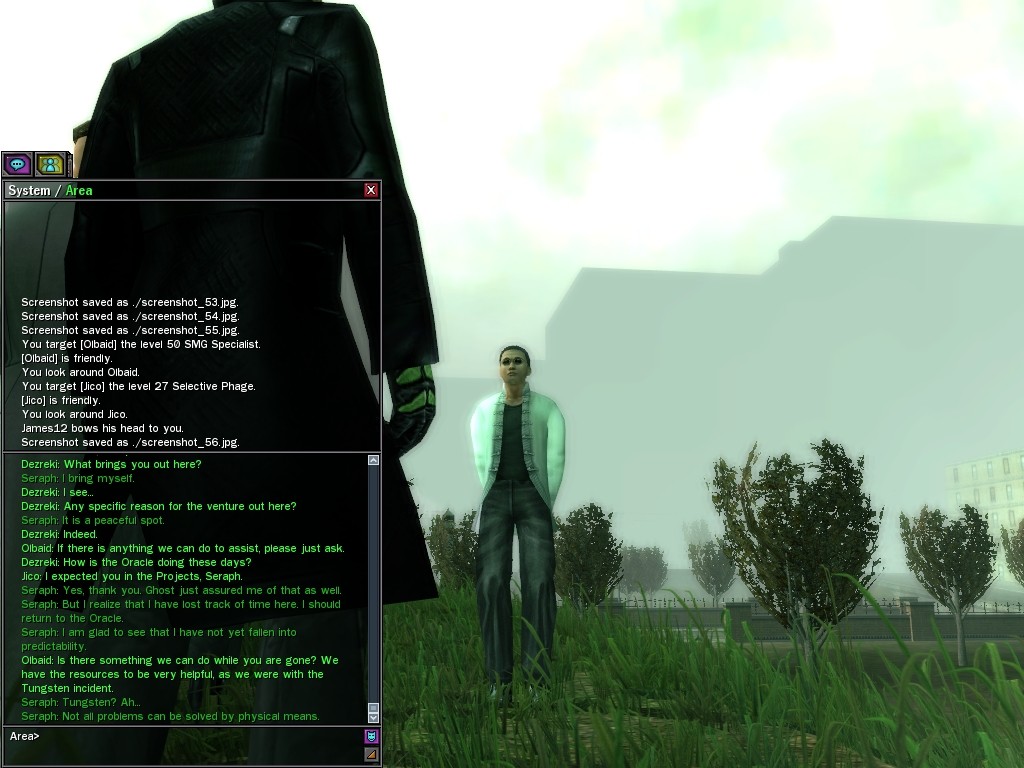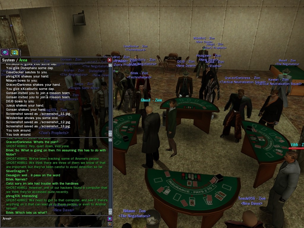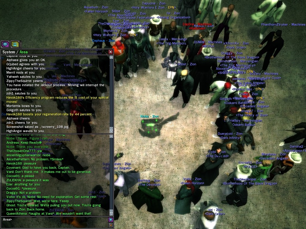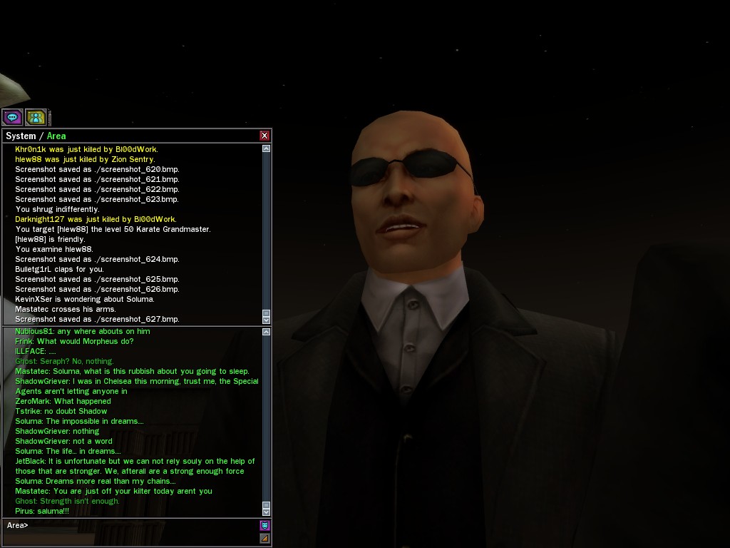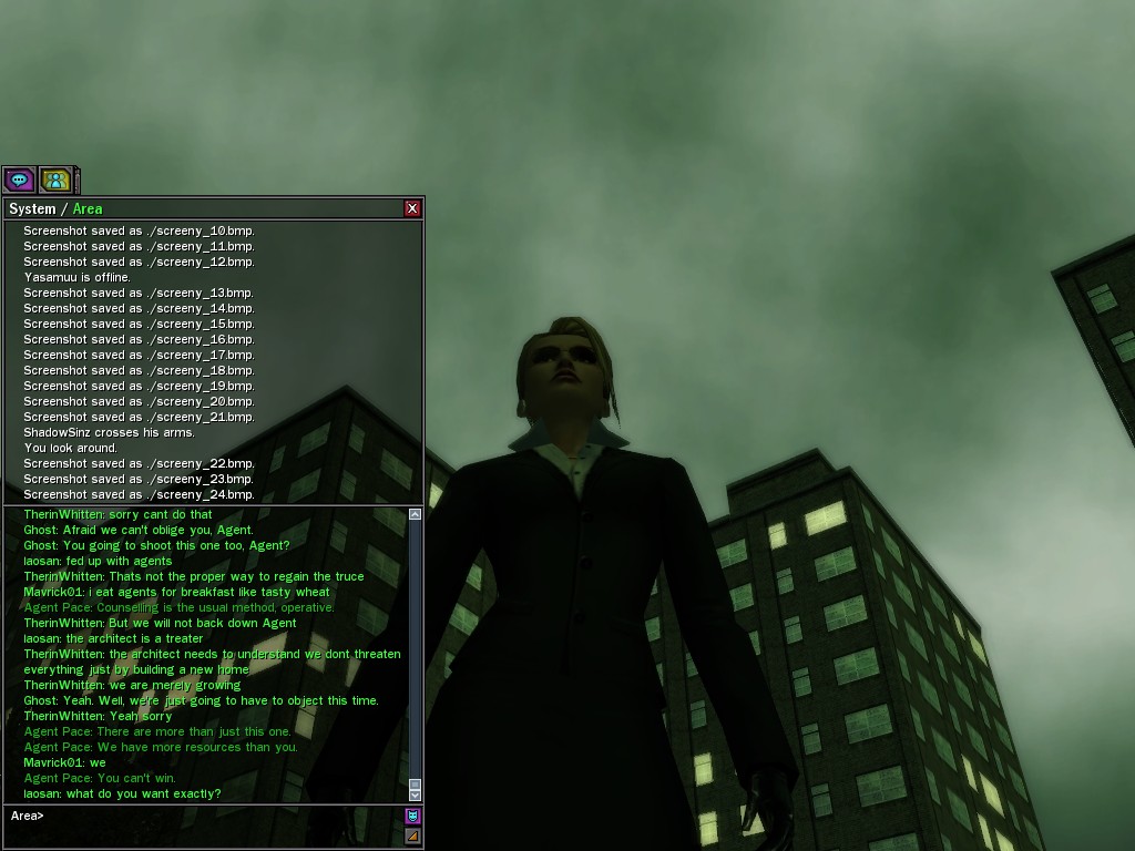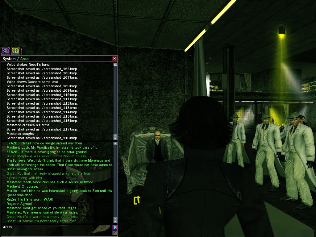 Niobe is back in Zion. It took a lot of hard work over these past weeks from our operatives, and from operatives working for the Merovingian, who decided to help us for reasons of his own. His man, the Effectuator, while sometimes maddeningly irritating, nevertheless was able to track down the construct in which Anome had imprisoned Niobe, after operatives aided him by tracking down network junctions, and clearing Anome's people out of the way. On Friday, with the final network trace made, and Niobe's location pinned down, we stormed Bishop Imports--the site of Anome's treachery, and her disappearance--to pull her back into our simulation. Anome's men had sealed off the upper floors, requiring teams of operatives to free specific hardlines from his control in Bathary Row and Chelsea, so that the Effectuator could gain the necessary network access to disable these blockades. Still, with teams working simultaneously in Bathary, Chelsea, and Ueno, we were able to overcome Anome's forces, and finally, near the top of Bishop Imports, pull Niobe out of her prison. She was desperately weak from her wounds and long imprisonment, and even her body in Zion had suffered due to its extended period of inactivity. But with the help of those around her, she somehow found the strength to stand, get to the rooftop, and jack out once the doctors had cleared her. She hasn't said much since she's been back. She's still weak, but resting, and getting stronger day by day. I think this ordeal has worked some changes on her--for better or for worse, I don't know. People who say "what doesn't kill you only makes you stronger" have never been in a war. But if anyone can come back stronger than ever after something like this, it's Niobe. The doctors aren't sure what lasting effect, if any, the cheat code she drank will have on her. They say it kept her alive, but it didn't prevent her from jacking out, as it has Anome's lieutenants. It didn't give her any obvious powers, either. There's a theory going around, I think started by Machine operatives, that the cheat codes mutated after Anome got his hands on them, or that he changed them himself, somehow. I don't know about any of that. I do know that with the captain back, Anome's days are numbered. If I know Niobe, she's going to want a little payback for what he did to her, and what he's done to the Matrix. I've spoken to some operatives who wished they'd been able to participate in the Ueno operation. I tell them not to worry; there's going to be more than enough action for everyone before this is over.