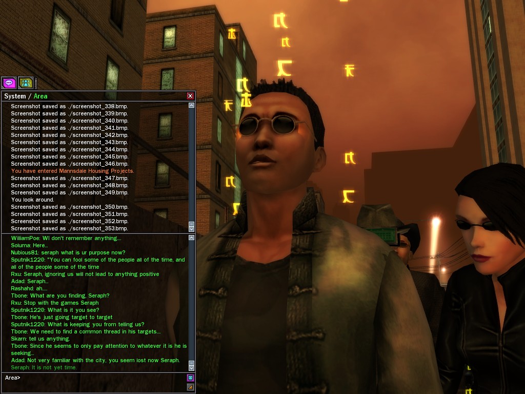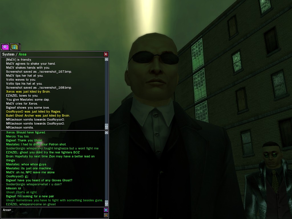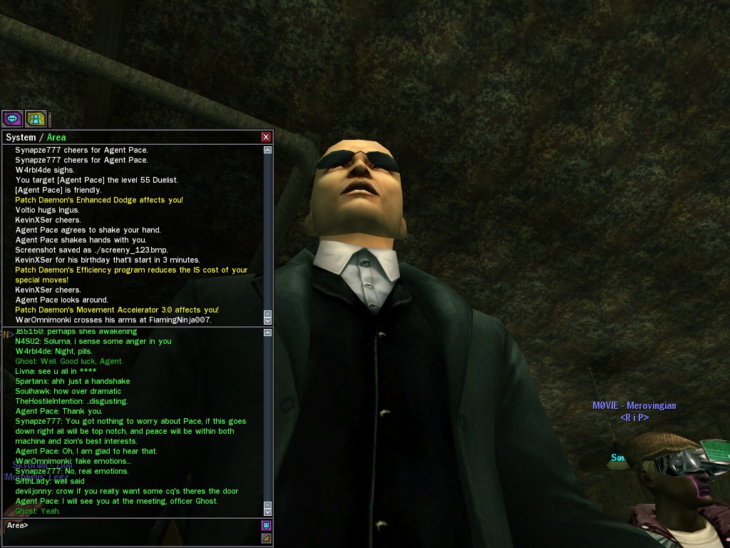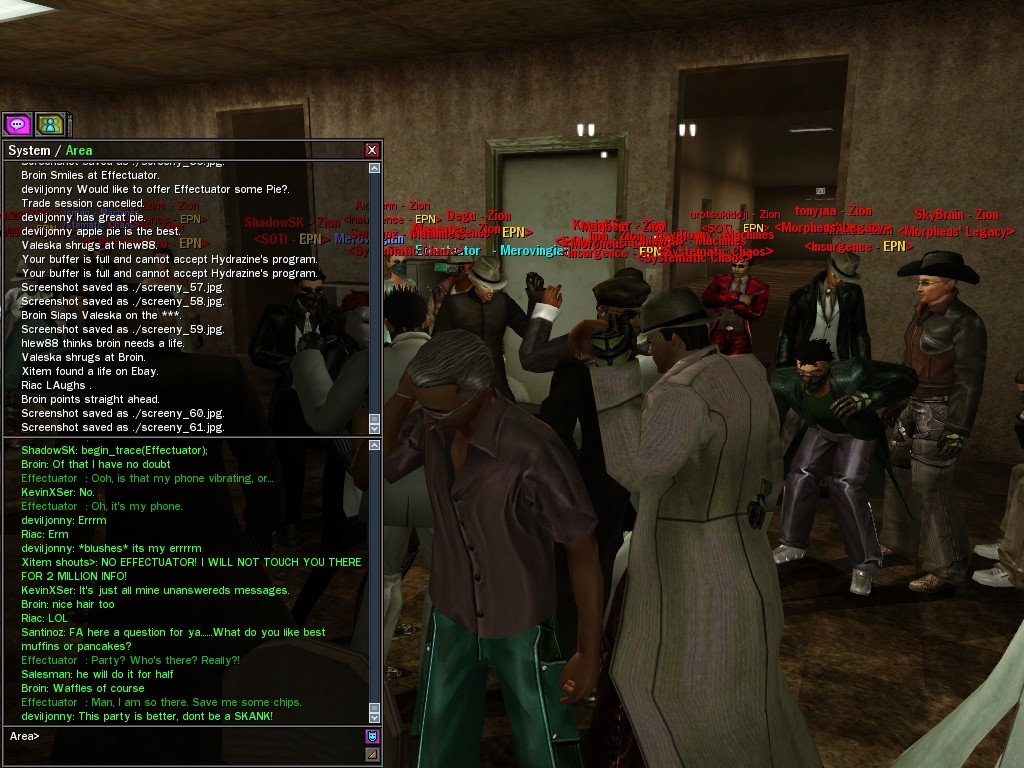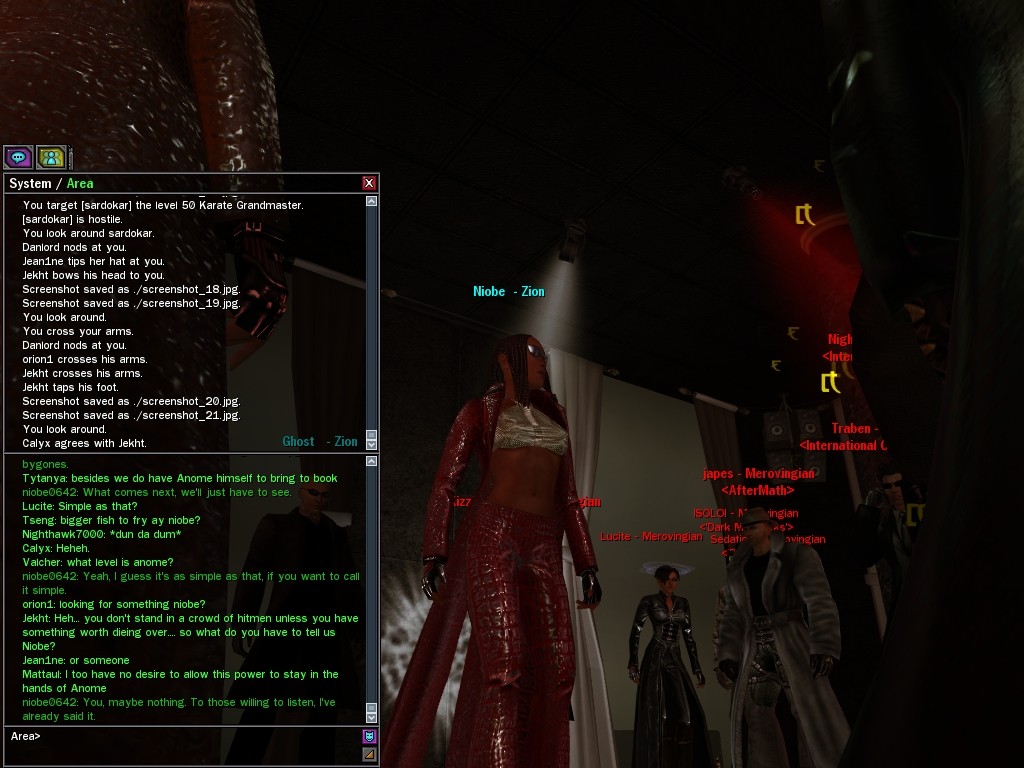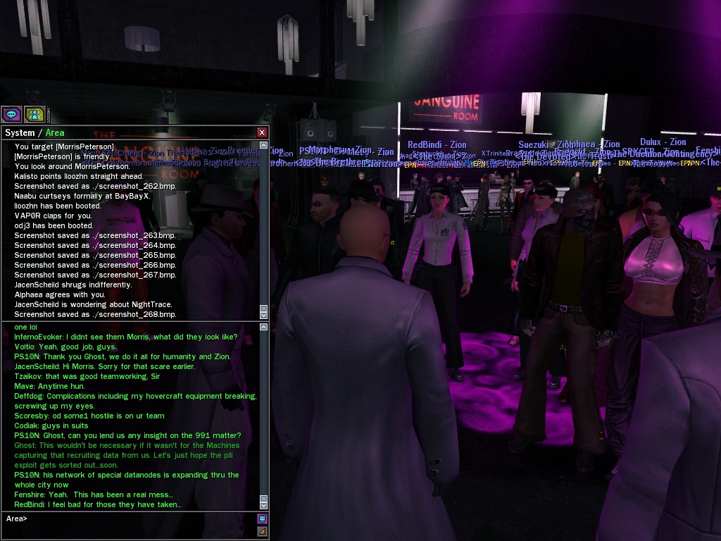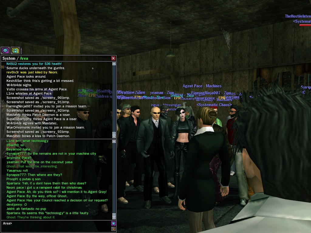 Niobe is back in Zion. It took a lot of hard work over these past weeks from our operatives, and from operatives working for the Merovingian, who decided to help us for reasons of his own. His man, the Effectuator, while sometimes maddeningly irritating, nevertheless was able to track down the construct in which Anome had imprisoned Niobe, after operatives aided him by tracking down network junctions, and clearing Anome's people out of the way. On Friday, with the final network trace made, and Niobe's location pinned down, we stormed Bishop Imports--the site of Anome's treachery, and her disappearance--to pull her back into our simulation. Anome's men had sealed off the upper floors, requiring teams of operatives to free specific hardlines from his control in Bathary Row and Chelsea, so that the Effectuator could gain the necessary network access to disable these blockades. Still, with teams working simultaneously in Bathary, Chelsea, and Ueno, we were able to overcome Anome's forces, and finally, near the top of Bishop Imports, pull Niobe out of her prison. She was desperately weak from her wounds and long imprisonment, and even her body in Zion had suffered due to its extended period of inactivity. But with the help of those around her, she somehow found the strength to stand, get to the rooftop, and jack out once the doctors had cleared her. She hasn't said much since she's been back. She's still weak, but resting, and getting stronger day by day. I think this ordeal has worked some changes on her--for better or for worse, I don't know. People who say "what doesn't kill you only makes you stronger" have never been in a war. But if anyone can come back stronger than ever after something like this, it's Niobe. The doctors aren't sure what lasting effect, if any, the cheat code she drank will have on her. They say it kept her alive, but it didn't prevent her from jacking out, as it has Anome's lieutenants. It didn't give her any obvious powers, either. There's a theory going around, I think started by Machine operatives, that the cheat codes mutated after Anome got his hands on them, or that he changed them himself, somehow. I don't know about any of that. I do know that with the captain back, Anome's days are numbered. If I know Niobe, she's going to want a little payback for what he did to her, and what he's done to the Matrix. I've spoken to some operatives who wished they'd been able to participate in the Ueno operation. I tell them not to worry; there's going to be more than enough action for everyone before this is over.