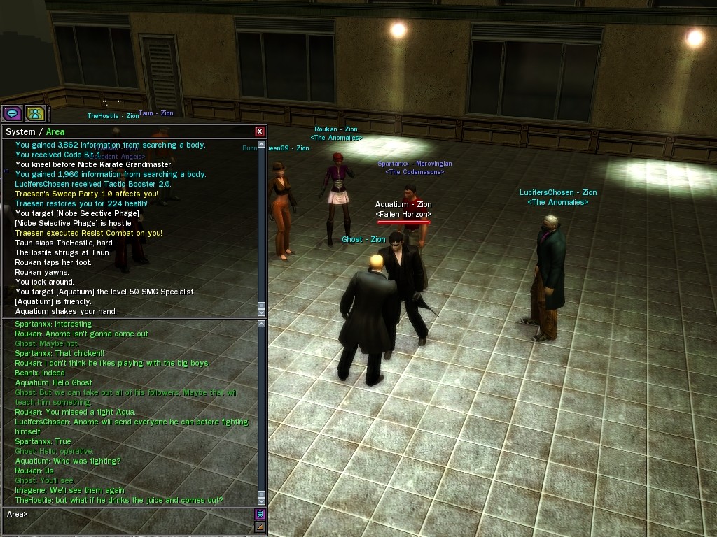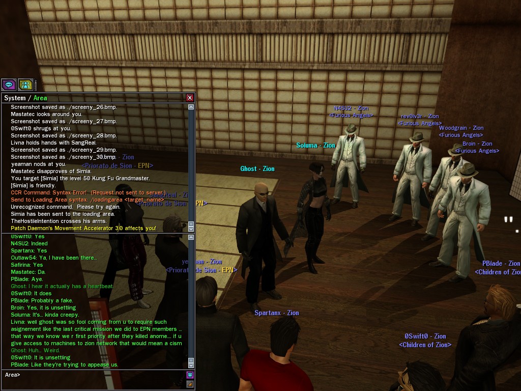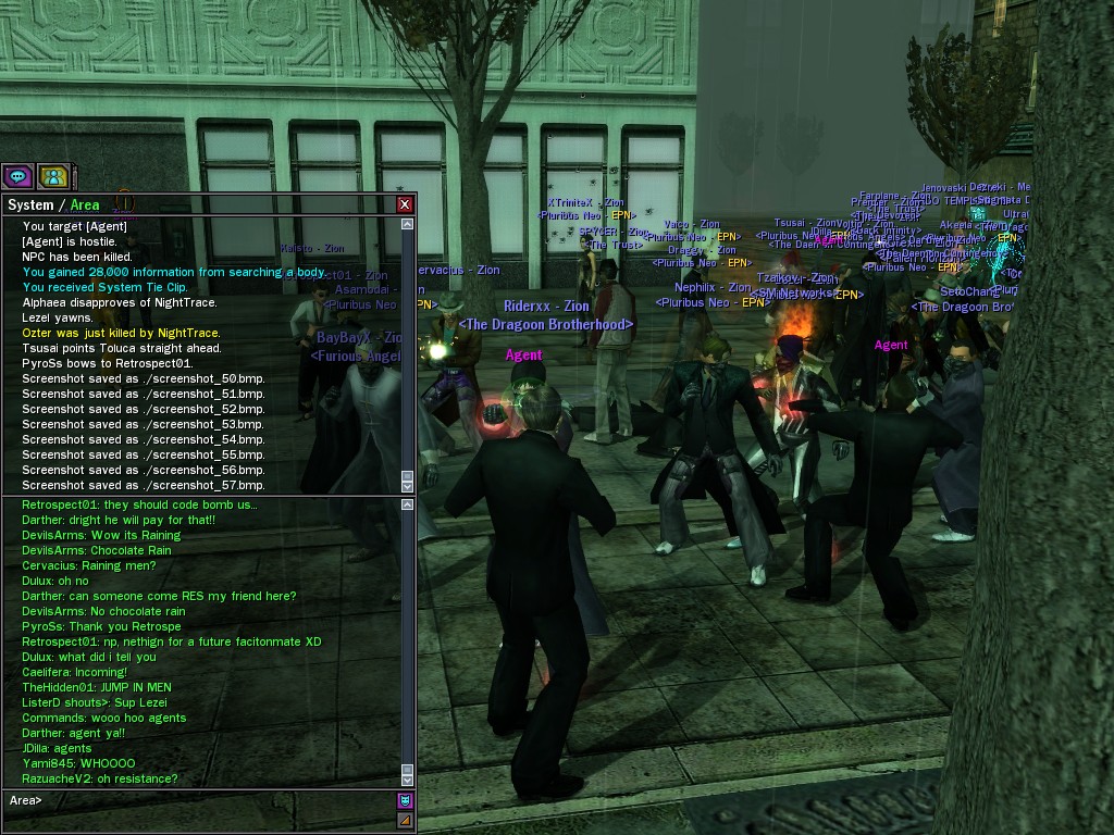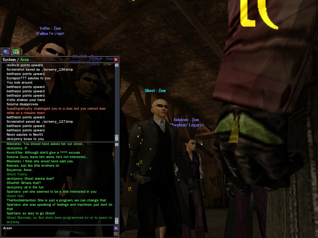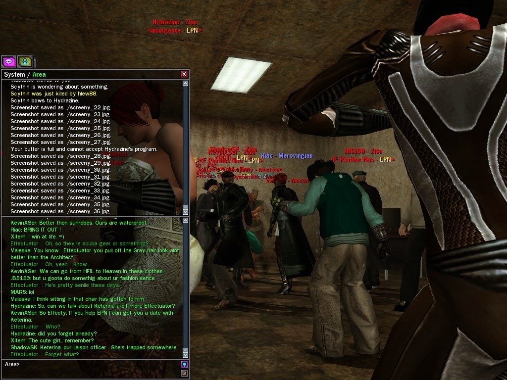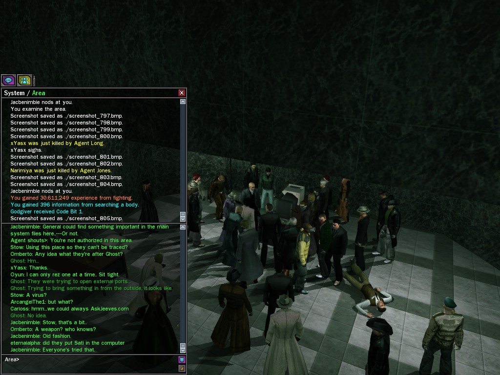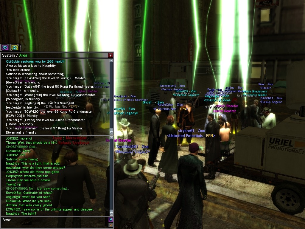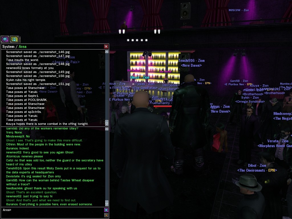 Niobe is back in Zion. It took a lot of hard work over these past weeks from our operatives, and from operatives working for the Merovingian, who decided to help us for reasons of his own. His man, the Effectuator, while sometimes maddeningly irritating, nevertheless was able to track down the construct in which Anome had imprisoned Niobe, after operatives aided him by tracking down network junctions, and clearing Anome's people out of the way. On Friday, with the final network trace made, and Niobe's location pinned down, we stormed Bishop Imports--the site of Anome's treachery, and her disappearance--to pull her back into our simulation. Anome's men had sealed off the upper floors, requiring teams of operatives to free specific hardlines from his control in Bathary Row and Chelsea, so that the Effectuator could gain the necessary network access to disable these blockades. Still, with teams working simultaneously in Bathary, Chelsea, and Ueno, we were able to overcome Anome's forces, and finally, near the top of Bishop Imports, pull Niobe out of her prison. She was desperately weak from her wounds and long imprisonment, and even her body in Zion had suffered due to its extended period of inactivity. But with the help of those around her, she somehow found the strength to stand, get to the rooftop, and jack out once the doctors had cleared her. She hasn't said much since she's been back. She's still weak, but resting, and getting stronger day by day. I think this ordeal has worked some changes on her--for better or for worse, I don't know. People who say "what doesn't kill you only makes you stronger" have never been in a war. But if anyone can come back stronger than ever after something like this, it's Niobe. The doctors aren't sure what lasting effect, if any, the cheat code she drank will have on her. They say it kept her alive, but it didn't prevent her from jacking out, as it has Anome's lieutenants. It didn't give her any obvious powers, either. There's a theory going around, I think started by Machine operatives, that the cheat codes mutated after Anome got his hands on them, or that he changed them himself, somehow. I don't know about any of that. I do know that with the captain back, Anome's days are numbered. If I know Niobe, she's going to want a little payback for what he did to her, and what he's done to the Matrix. I've spoken to some operatives who wished they'd been able to participate in the Ueno operation. I tell them not to worry; there's going to be more than enough action for everyone before this is over.