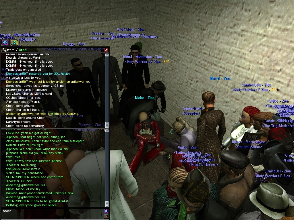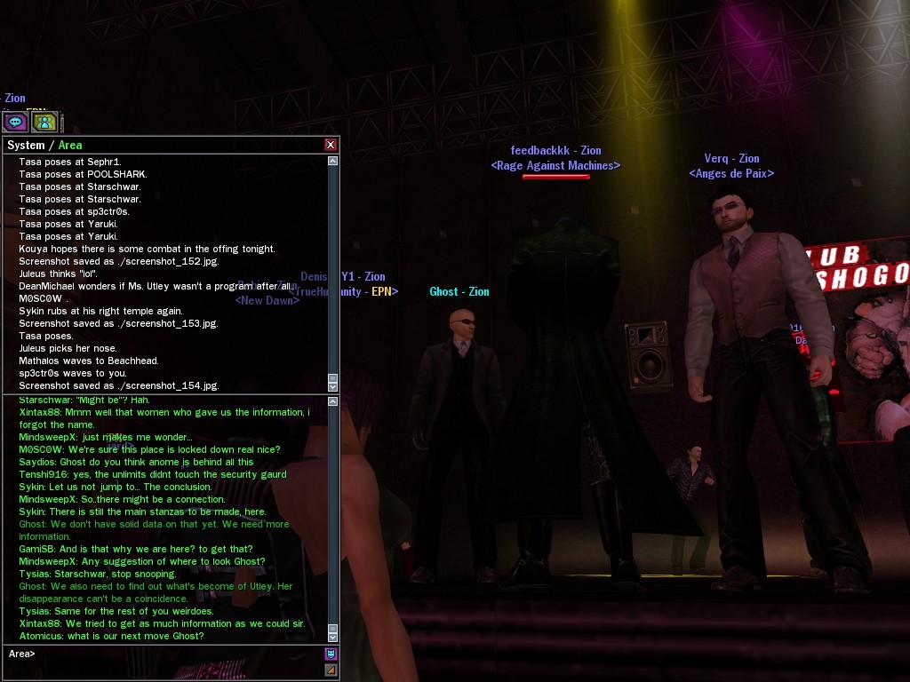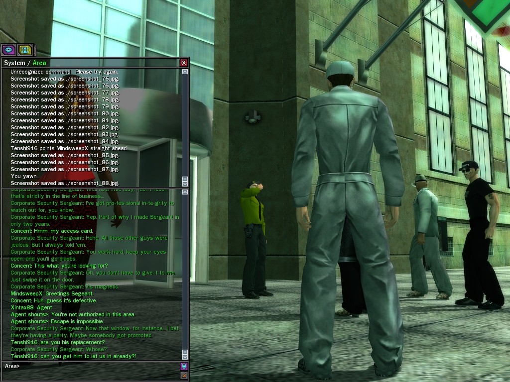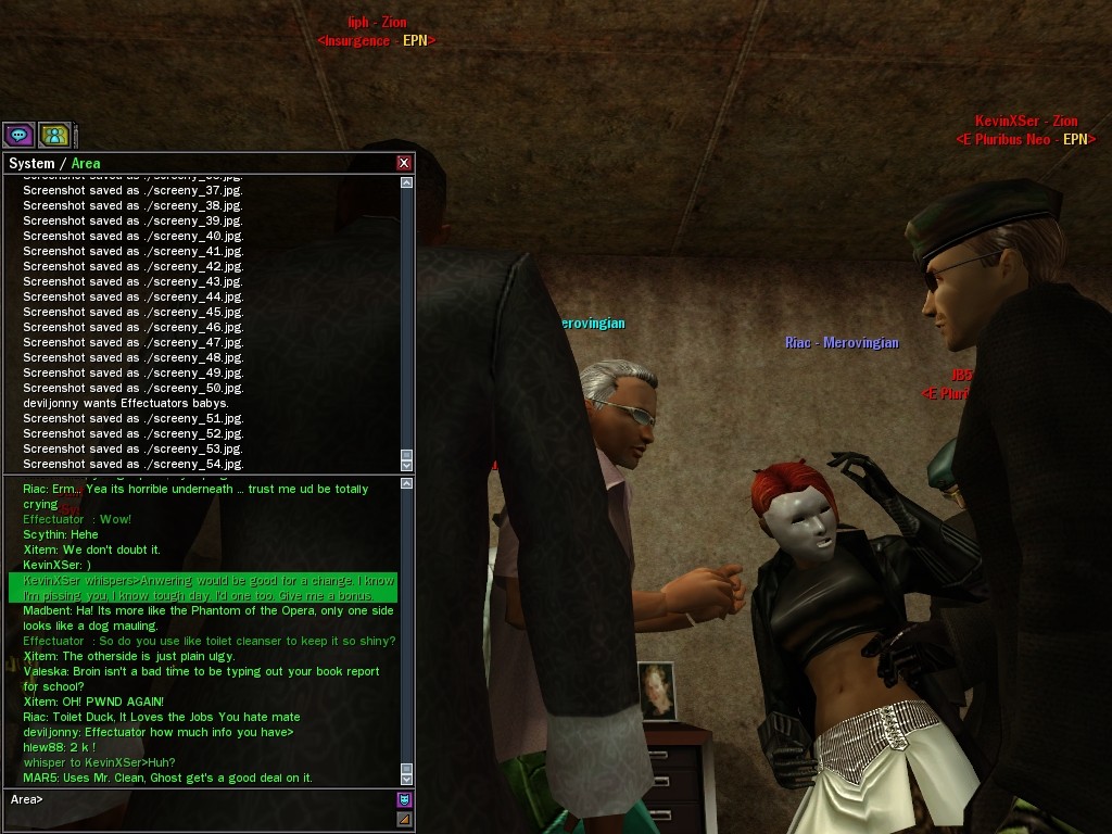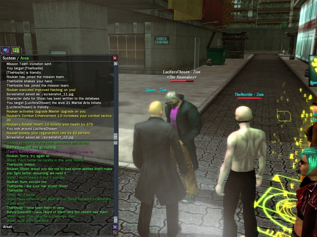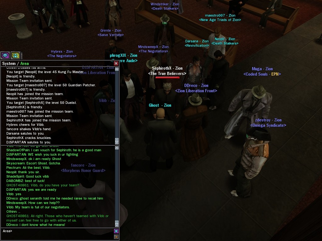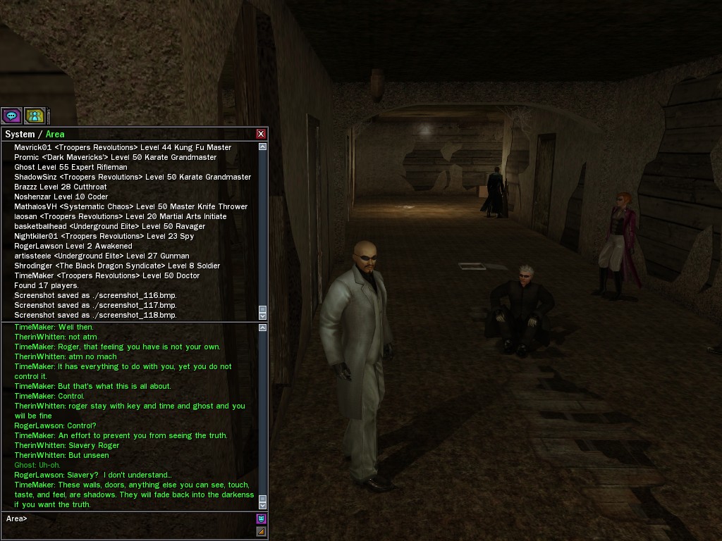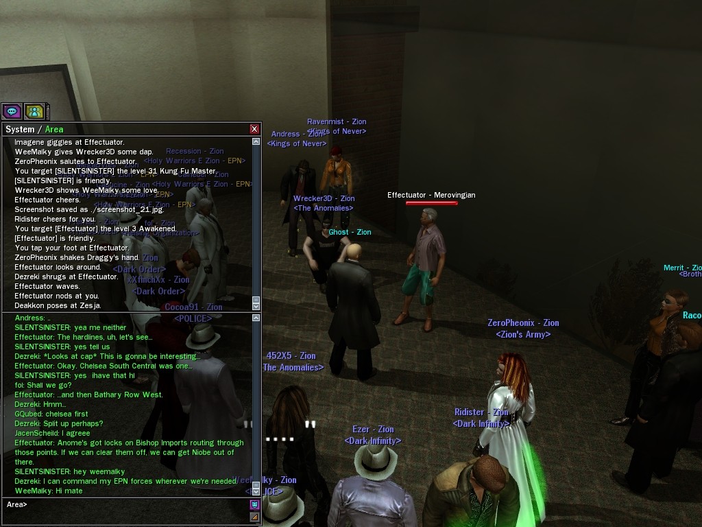 Niobe is back in Zion. It took a lot of hard work over these past weeks from our operatives, and from operatives working for the Merovingian, who decided to help us for reasons of his own. His man, the Effectuator, while sometimes maddeningly irritating, nevertheless was able to track down the construct in which Anome had imprisoned Niobe, after operatives aided him by tracking down network junctions, and clearing Anome's people out of the way. On Friday, with the final network trace made, and Niobe's location pinned down, we stormed Bishop Imports--the site of Anome's treachery, and her disappearance--to pull her back into our simulation. Anome's men had sealed off the upper floors, requiring teams of operatives to free specific hardlines from his control in Bathary Row and Chelsea, so that the Effectuator could gain the necessary network access to disable these blockades. Still, with teams working simultaneously in Bathary, Chelsea, and Ueno, we were able to overcome Anome's forces, and finally, near the top of Bishop Imports, pull Niobe out of her prison. She was desperately weak from her wounds and long imprisonment, and even her body in Zion had suffered due to its extended period of inactivity. But with the help of those around her, she somehow found the strength to stand, get to the rooftop, and jack out once the doctors had cleared her. She hasn't said much since she's been back. She's still weak, but resting, and getting stronger day by day. I think this ordeal has worked some changes on her--for better or for worse, I don't know. People who say "what doesn't kill you only makes you stronger" have never been in a war. But if anyone can come back stronger than ever after something like this, it's Niobe. The doctors aren't sure what lasting effect, if any, the cheat code she drank will have on her. They say it kept her alive, but it didn't prevent her from jacking out, as it has Anome's lieutenants. It didn't give her any obvious powers, either. There's a theory going around, I think started by Machine operatives, that the cheat codes mutated after Anome got his hands on them, or that he changed them himself, somehow. I don't know about any of that. I do know that with the captain back, Anome's days are numbered. If I know Niobe, she's going to want a little payback for what he did to her, and what he's done to the Matrix. I've spoken to some operatives who wished they'd been able to participate in the Ueno operation. I tell them not to worry; there's going to be more than enough action for everyone before this is over.