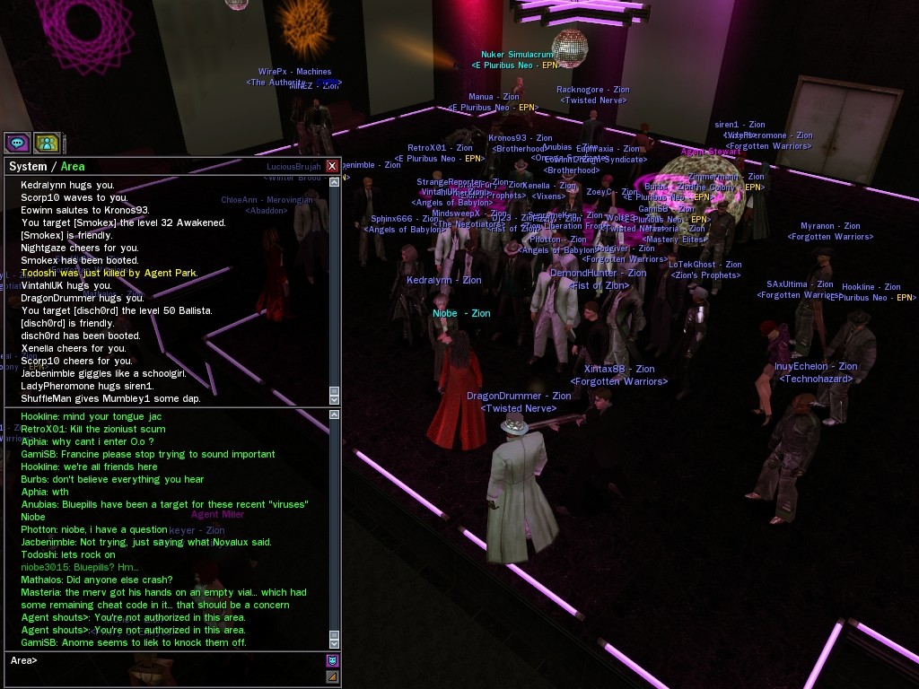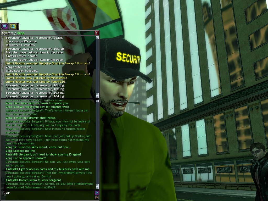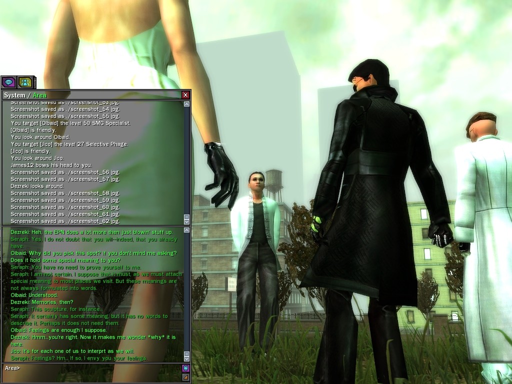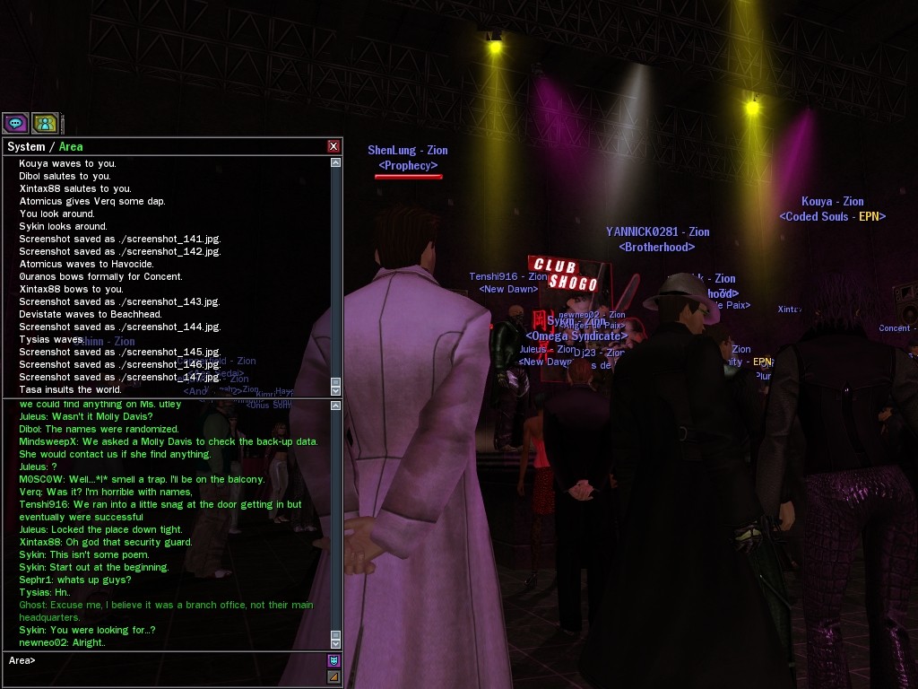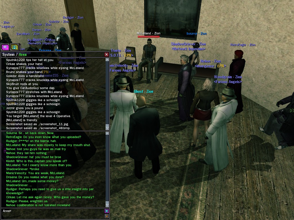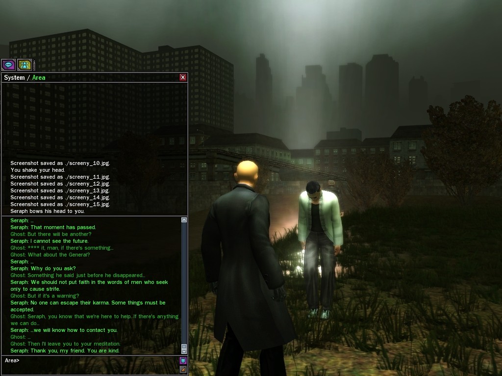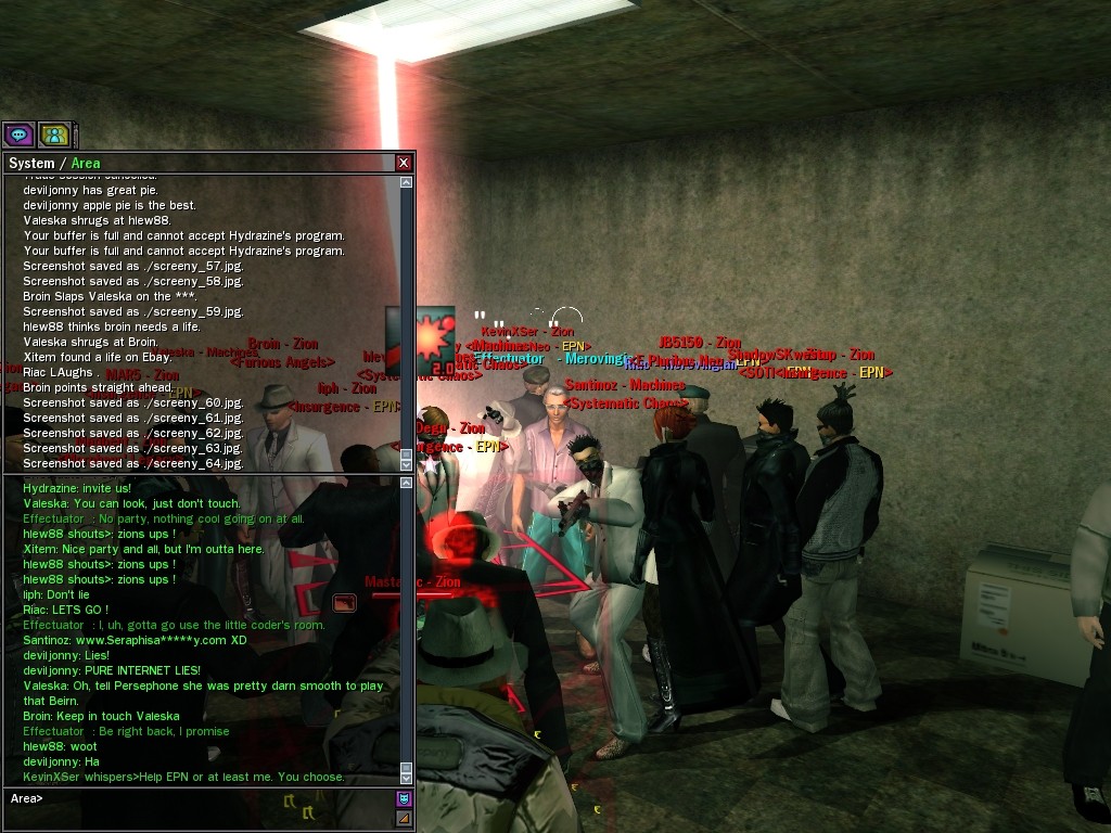 Niobe is back in Zion. It took a lot of hard work over these past weeks from our operatives, and from operatives working for the Merovingian, who decided to help us for reasons of his own. His man, the Effectuator, while sometimes maddeningly irritating, nevertheless was able to track down the construct in which Anome had imprisoned Niobe, after operatives aided him by tracking down network junctions, and clearing Anome's people out of the way. On Friday, with the final network trace made, and Niobe's location pinned down, we stormed Bishop Imports--the site of Anome's treachery, and her disappearance--to pull her back into our simulation. Anome's men had sealed off the upper floors, requiring teams of operatives to free specific hardlines from his control in Bathary Row and Chelsea, so that the Effectuator could gain the necessary network access to disable these blockades. Still, with teams working simultaneously in Bathary, Chelsea, and Ueno, we were able to overcome Anome's forces, and finally, near the top of Bishop Imports, pull Niobe out of her prison. She was desperately weak from her wounds and long imprisonment, and even her body in Zion had suffered due to its extended period of inactivity. But with the help of those around her, she somehow found the strength to stand, get to the rooftop, and jack out once the doctors had cleared her. She hasn't said much since she's been back. She's still weak, but resting, and getting stronger day by day. I think this ordeal has worked some changes on her--for better or for worse, I don't know. People who say "what doesn't kill you only makes you stronger" have never been in a war. But if anyone can come back stronger than ever after something like this, it's Niobe. The doctors aren't sure what lasting effect, if any, the cheat code she drank will have on her. They say it kept her alive, but it didn't prevent her from jacking out, as it has Anome's lieutenants. It didn't give her any obvious powers, either. There's a theory going around, I think started by Machine operatives, that the cheat codes mutated after Anome got his hands on them, or that he changed them himself, somehow. I don't know about any of that. I do know that with the captain back, Anome's days are numbered. If I know Niobe, she's going to want a little payback for what he did to her, and what he's done to the Matrix. I've spoken to some operatives who wished they'd been able to participate in the Ueno operation. I tell them not to worry; there's going to be more than enough action for everyone before this is over.