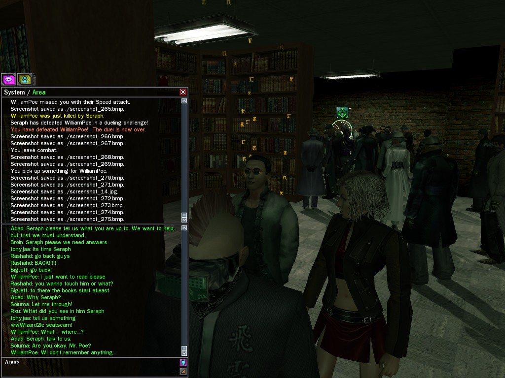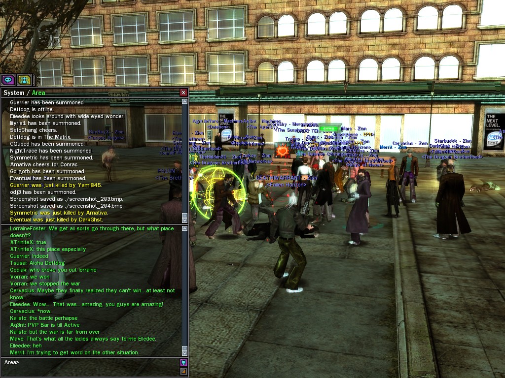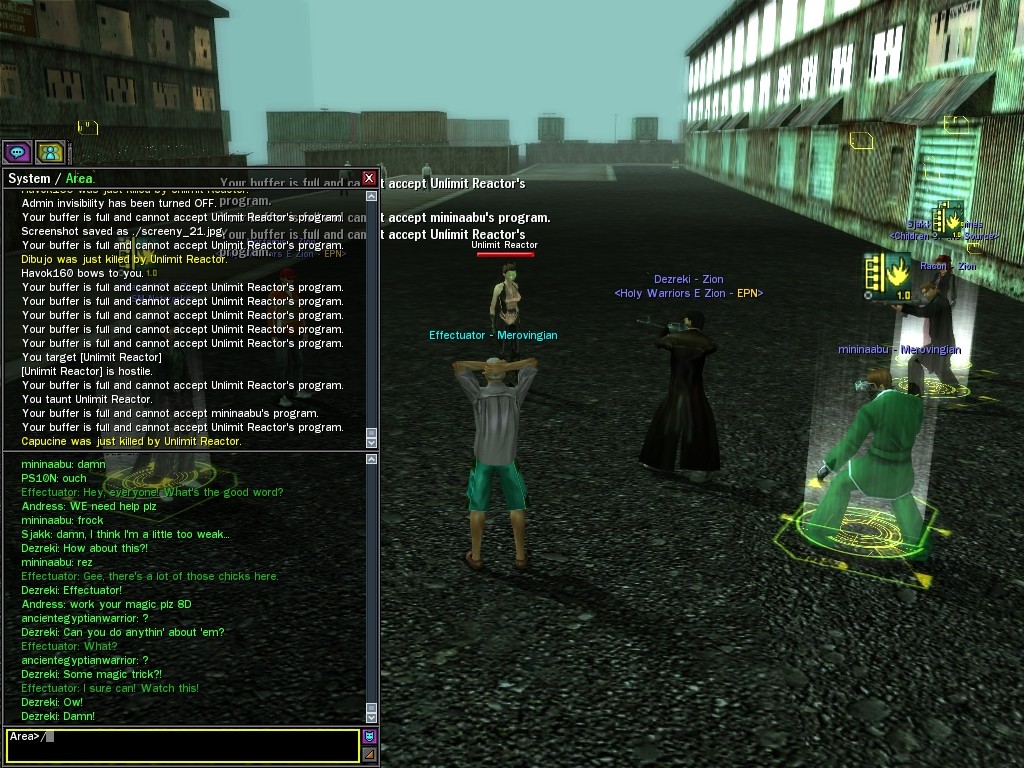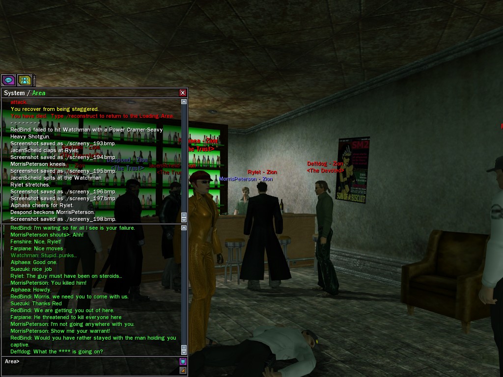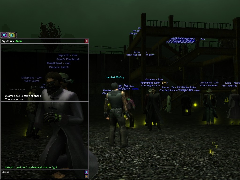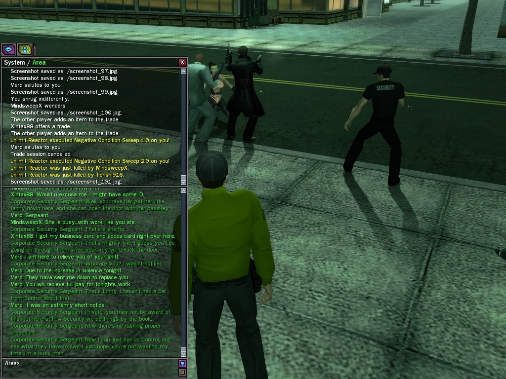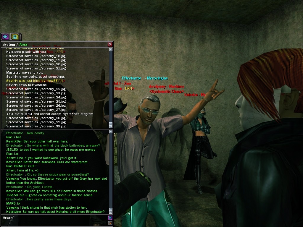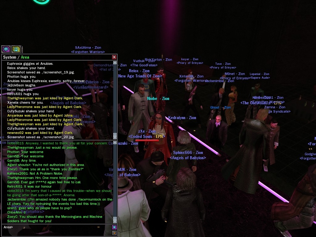 Niobe is back in Zion. It took a lot of hard work over these past weeks from our operatives, and from operatives working for the Merovingian, who decided to help us for reasons of his own. His man, the Effectuator, while sometimes maddeningly irritating, nevertheless was able to track down the construct in which Anome had imprisoned Niobe, after operatives aided him by tracking down network junctions, and clearing Anome's people out of the way. On Friday, with the final network trace made, and Niobe's location pinned down, we stormed Bishop Imports--the site of Anome's treachery, and her disappearance--to pull her back into our simulation. Anome's men had sealed off the upper floors, requiring teams of operatives to free specific hardlines from his control in Bathary Row and Chelsea, so that the Effectuator could gain the necessary network access to disable these blockades. Still, with teams working simultaneously in Bathary, Chelsea, and Ueno, we were able to overcome Anome's forces, and finally, near the top of Bishop Imports, pull Niobe out of her prison. She was desperately weak from her wounds and long imprisonment, and even her body in Zion had suffered due to its extended period of inactivity. But with the help of those around her, she somehow found the strength to stand, get to the rooftop, and jack out once the doctors had cleared her. She hasn't said much since she's been back. She's still weak, but resting, and getting stronger day by day. I think this ordeal has worked some changes on her--for better or for worse, I don't know. People who say "what doesn't kill you only makes you stronger" have never been in a war. But if anyone can come back stronger than ever after something like this, it's Niobe. The doctors aren't sure what lasting effect, if any, the cheat code she drank will have on her. They say it kept her alive, but it didn't prevent her from jacking out, as it has Anome's lieutenants. It didn't give her any obvious powers, either. There's a theory going around, I think started by Machine operatives, that the cheat codes mutated after Anome got his hands on them, or that he changed them himself, somehow. I don't know about any of that. I do know that with the captain back, Anome's days are numbered. If I know Niobe, she's going to want a little payback for what he did to her, and what he's done to the Matrix. I've spoken to some operatives who wished they'd been able to participate in the Ueno operation. I tell them not to worry; there's going to be more than enough action for everyone before this is over.