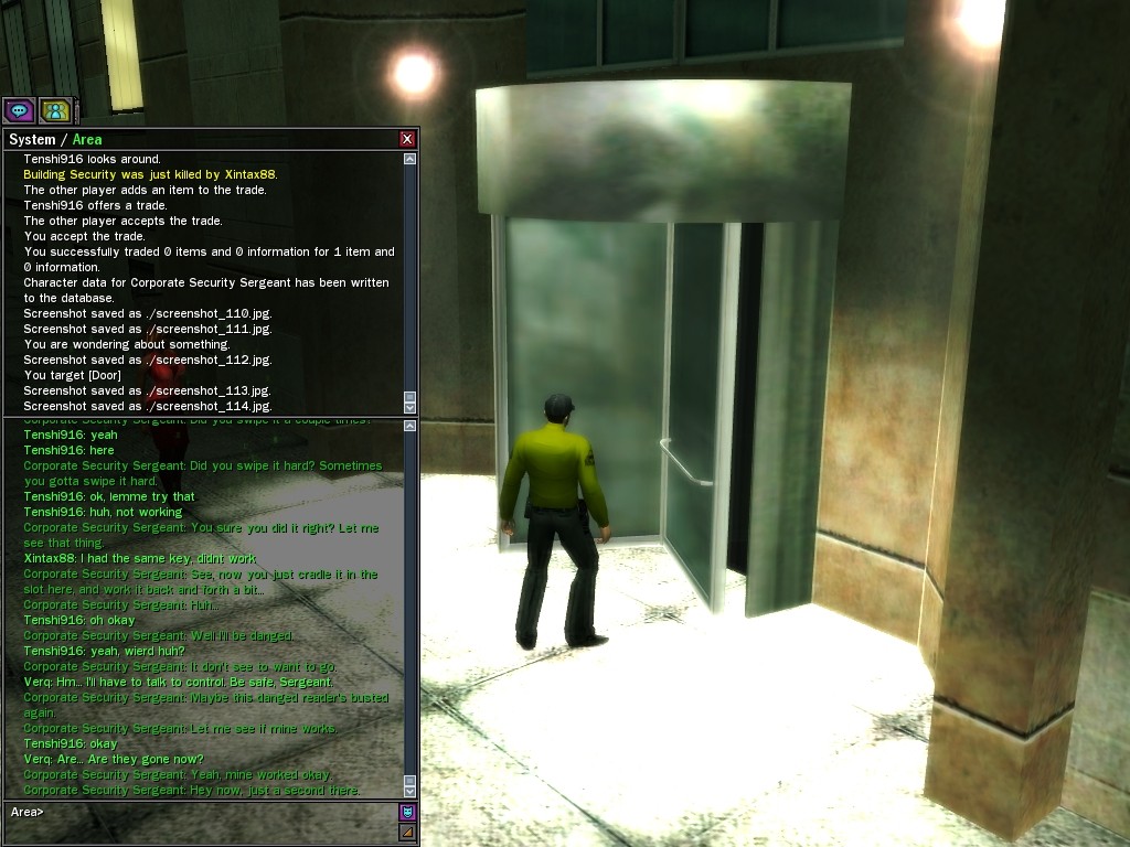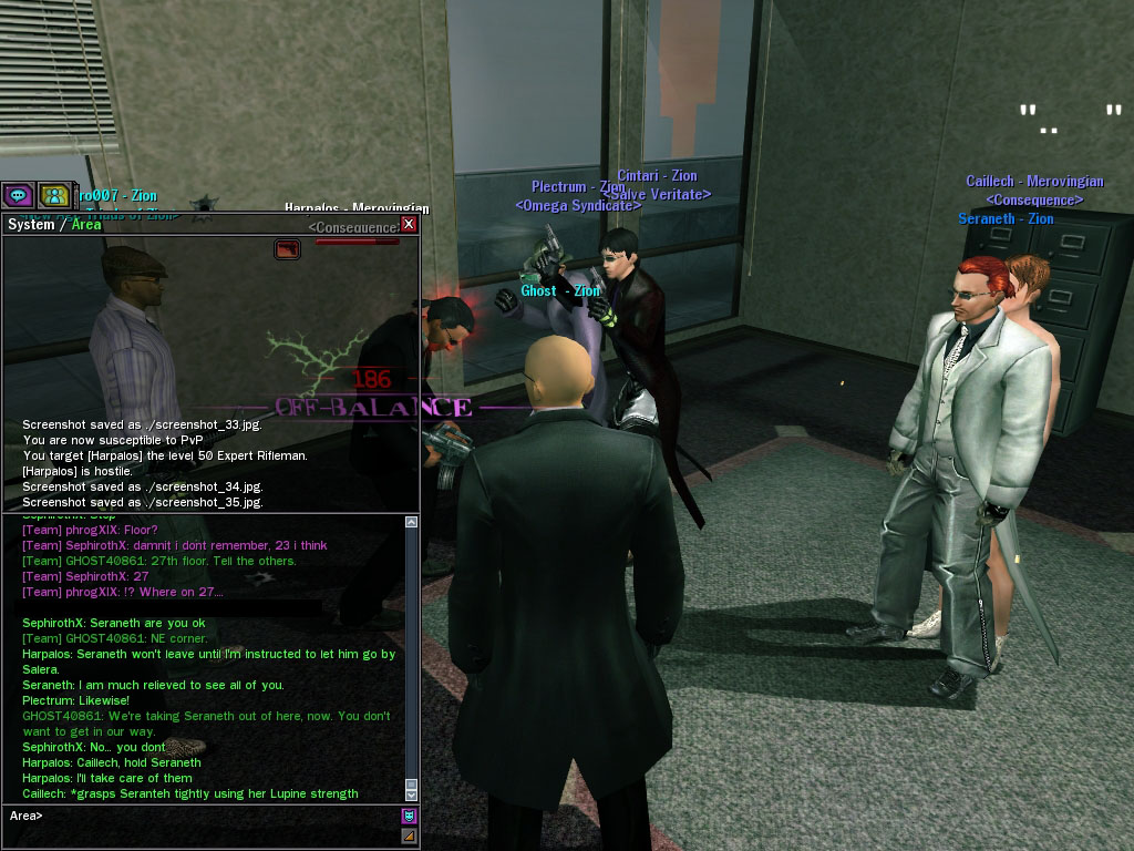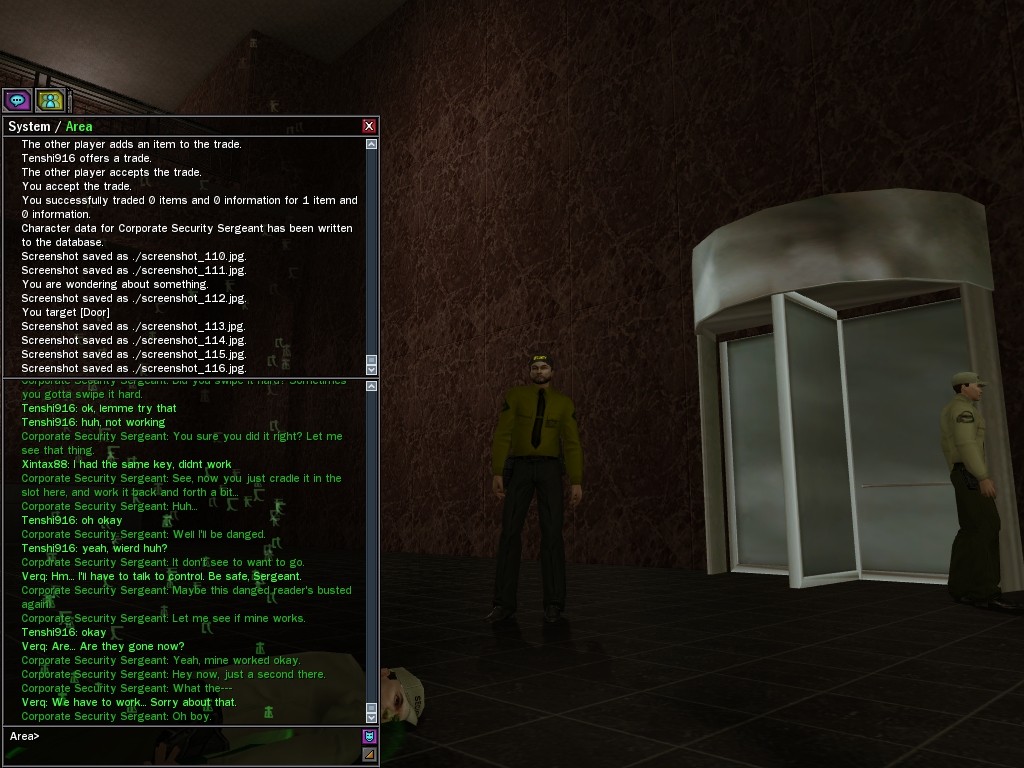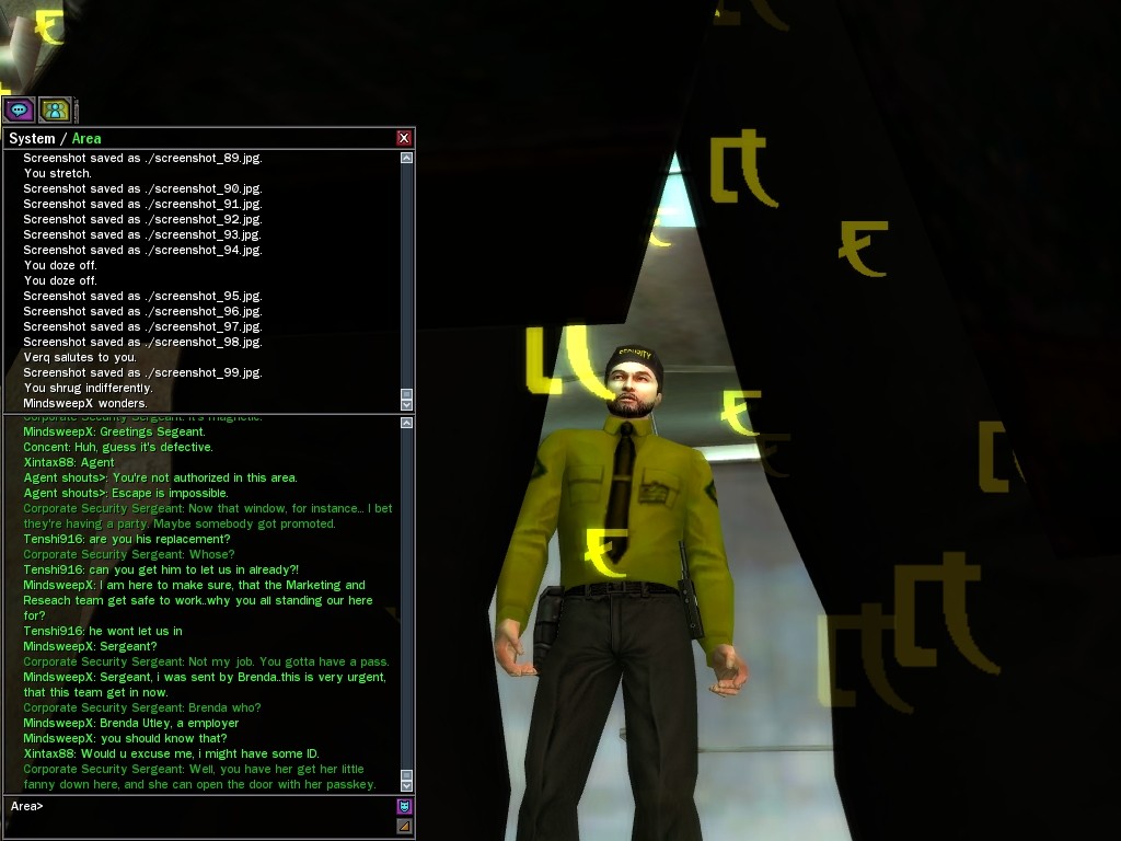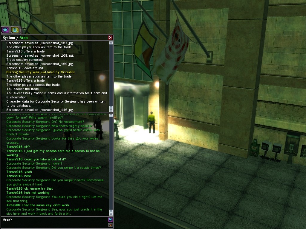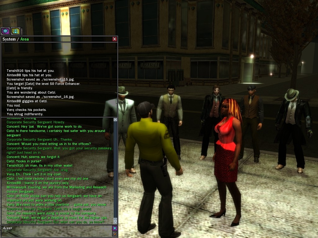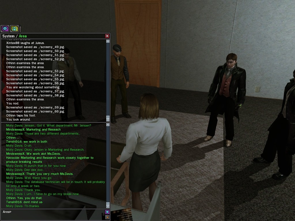 Liaison officer Concent led operatives Catzi, Verq, MindsweepX, Xintax88, and Tenshi916 to the Pendhurst-Amaranth head branch office on a mission to get information regarding Brenda Utley's disappearance. We learned recently that some kind of orders regarding Utley came from that office. The team went there to see what they could find. After talking their way past security, they found a records office, where a new Pendhurst-Amaranth clerk helped them search the employee database for Utley's records. None were found. Someone at Pendhurst-Amaranth is doing their best to make Utley nothing more than a memory. Unfortunately for them, we have a long memory. We're going to find out who's been tampering with her files, and why.